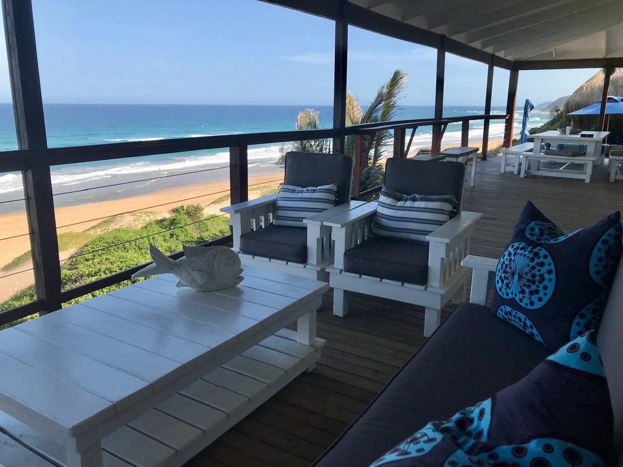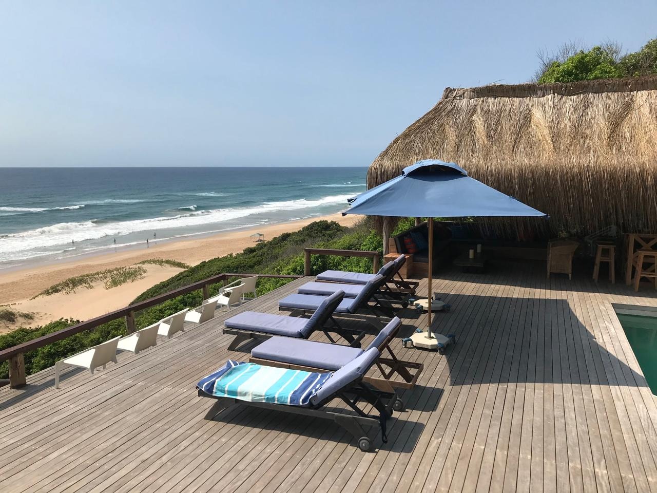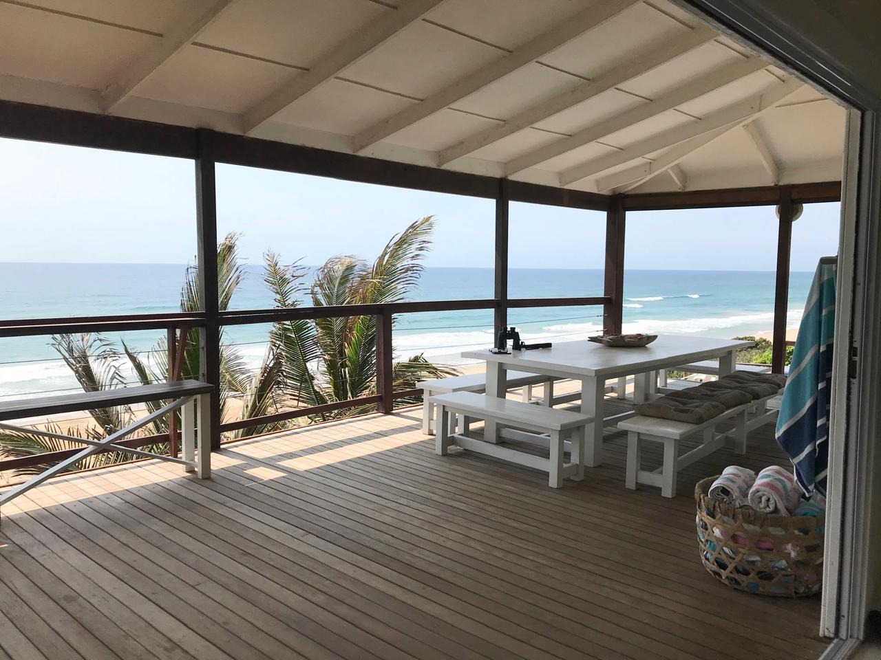 Step outside and prepare to be amazed by the outdoor areas. There’s a fantastic pool with stunning ocean sunset views, surrounded by a spacious wooden deck with loads of lounge seating and a cool thatched cabana. You’ll also find multiple covered patios and balconies, perfect for outdoor dining or just chilling out while soaking in those breathtaking sea views. Direct beach access means endless fun in the sun!