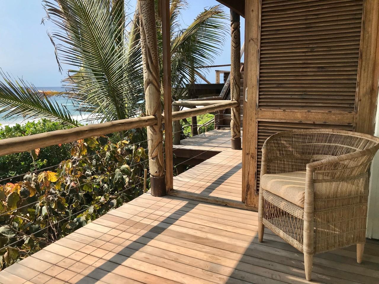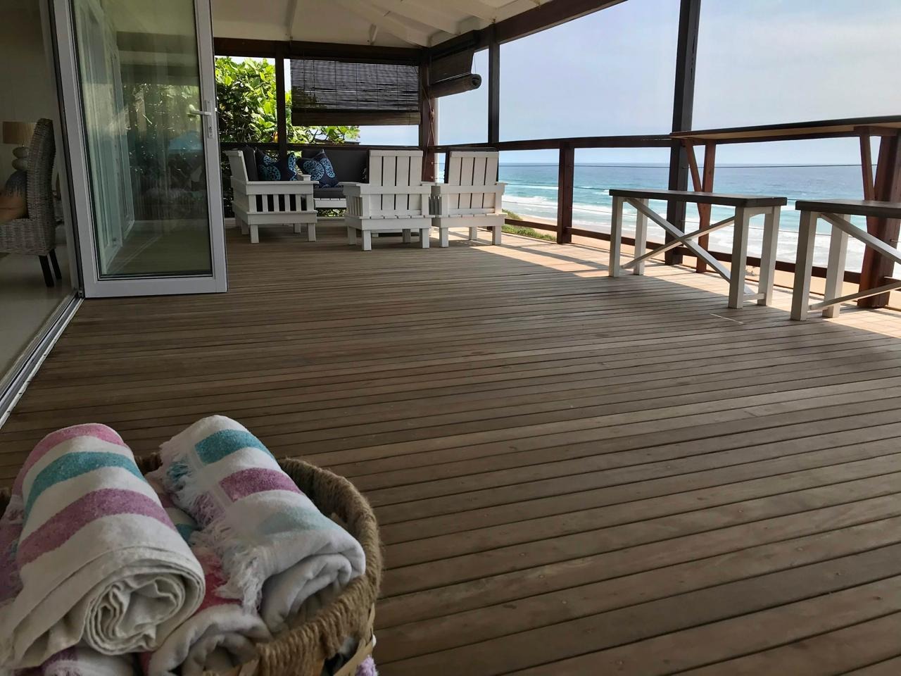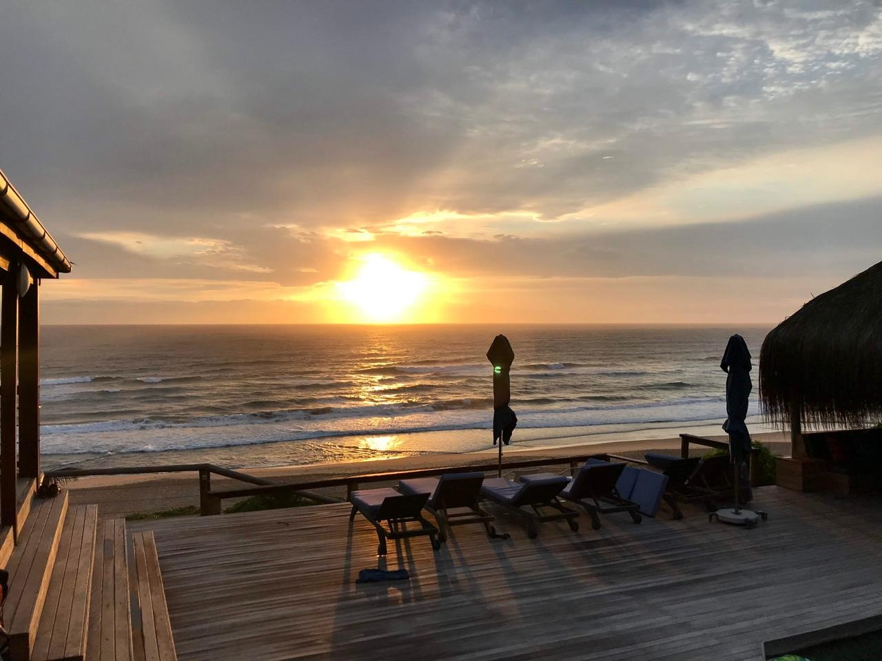 Step outside and prepare to be amazed by the outdoor areas. There’s a fantastic pool with stunning ocean sunset views, surrounded by a spacious wooden deck with loads of lounge seating and a cool thatched cabana. You’ll also find multiple covered patios and balconies, perfect for outdoor dining or just chilling out while soaking in those breathtaking sea views. Direct beach access means endless fun in the sun!
