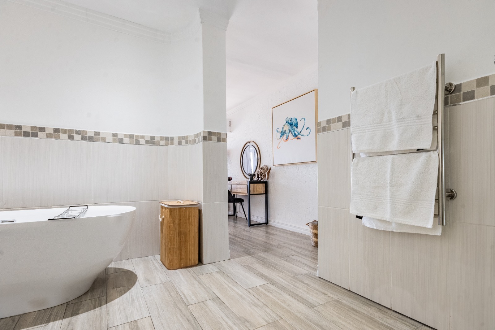 But the real magic happens outside. Imagine sipping your morning coffee on the balcony or hosting a braai on the patio with your very own built-in braai. And guess what? There’s even a jacuzzi for those evenings when you just want to unwind and soak away the day. The scenic and sea views from here are just incredible – you’ll feel like you’re on holiday every single day.