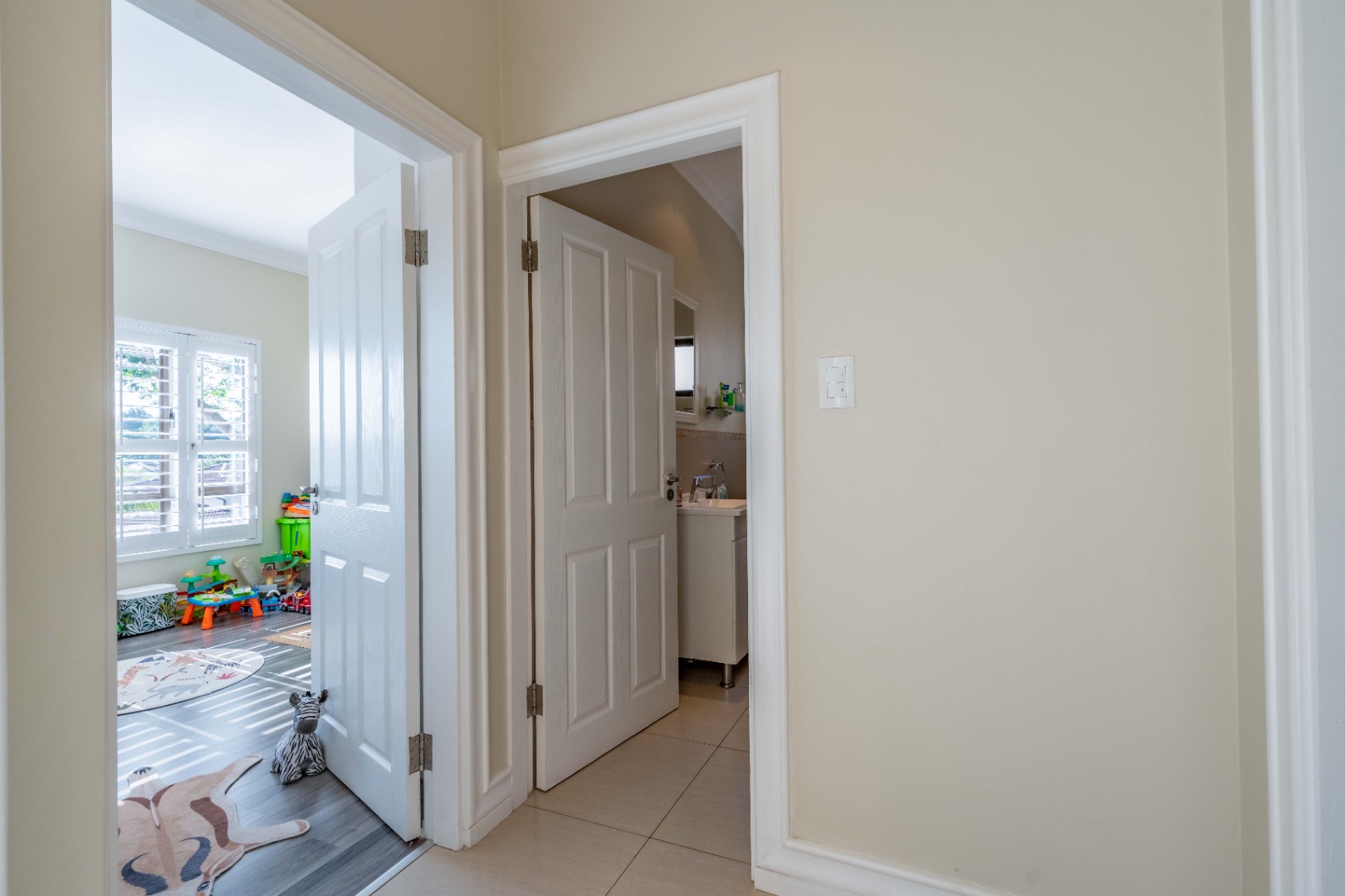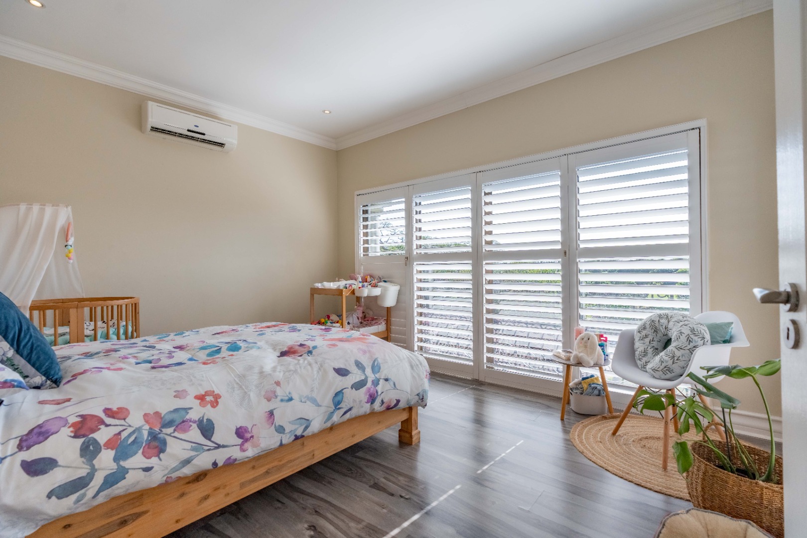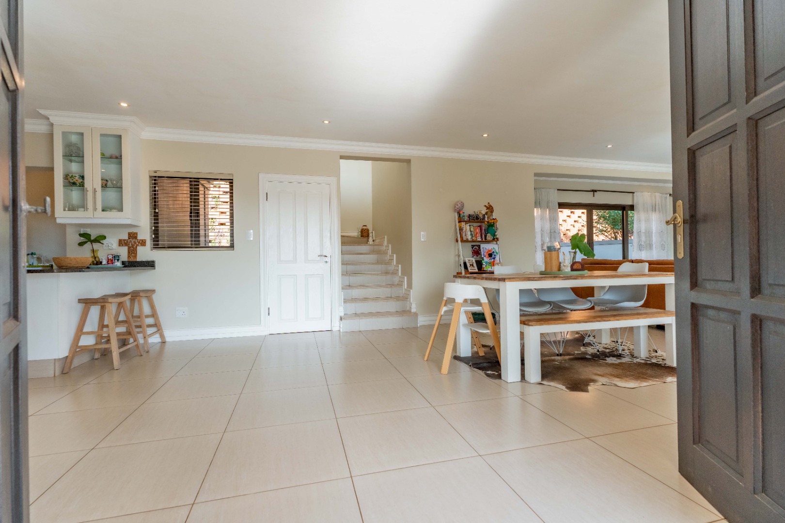 Upstairs, the pyjama lounge opens onto a private balcony with beautiful views – a peaceful retreat between three well-sized, air-conditioned bedrooms. The main suite boasts generous cupboard space and a full en-suite bathroom, while the other two bedrooms feature built-in cupboards and share a well-appointed family bathroom.