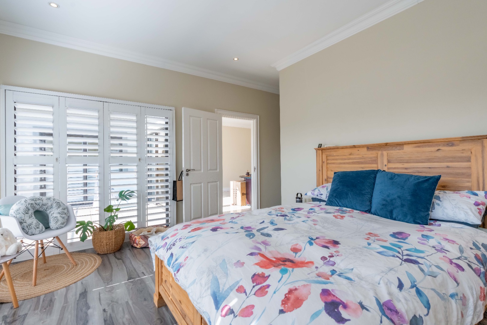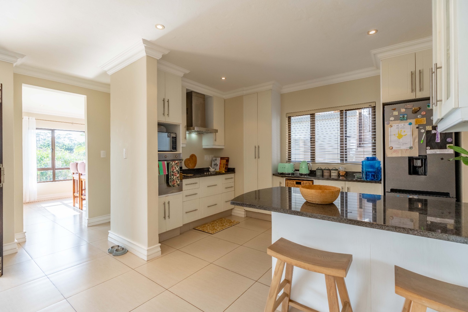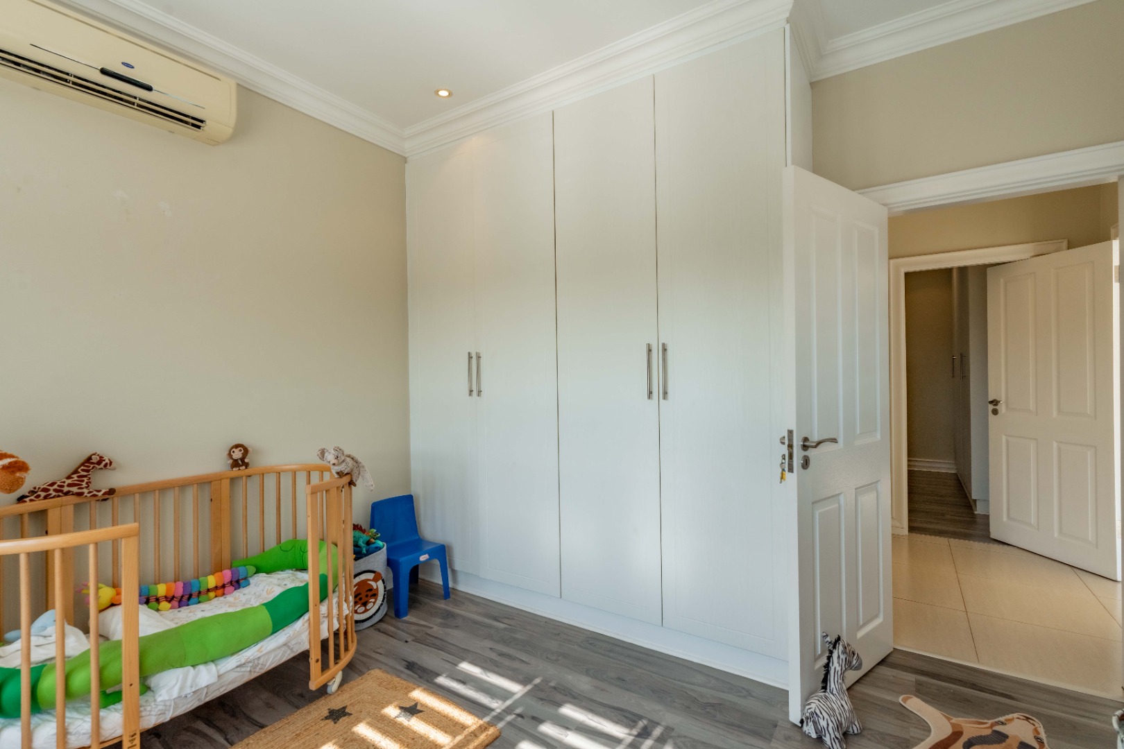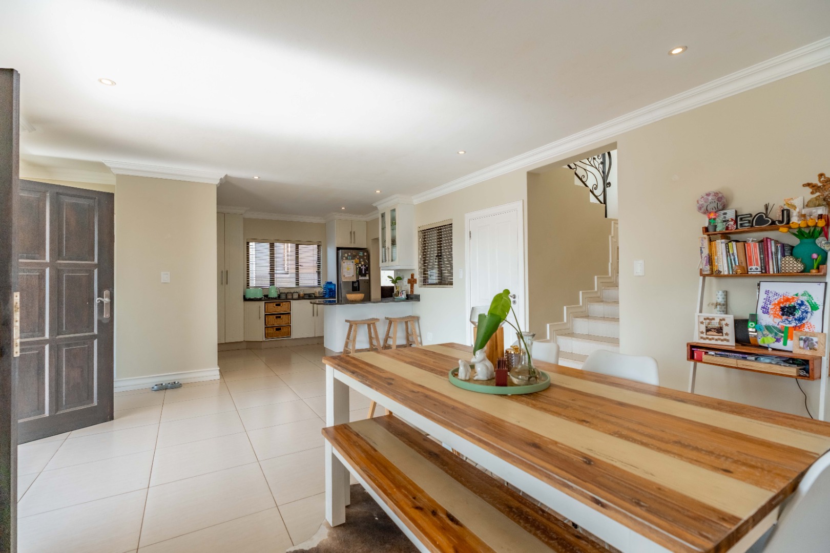 Upstairs, the pyjama lounge opens onto a private balcony with beautiful views – a peaceful retreat between three well-sized, air-conditioned bedrooms. The main suite boasts generous cupboard space and a full en-suite bathroom, while the other two bedrooms feature built-in cupboards and share a well-appointed family bathroom.