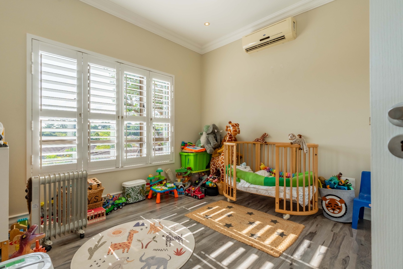 Guest toilet, convenient storage under the stairs. Modern finishes with tiles throughout the house, downlights and air conditioning add to the comfort and functionality of this space. The bar room can easily be converted into a fourth bedroom or home office if needed.