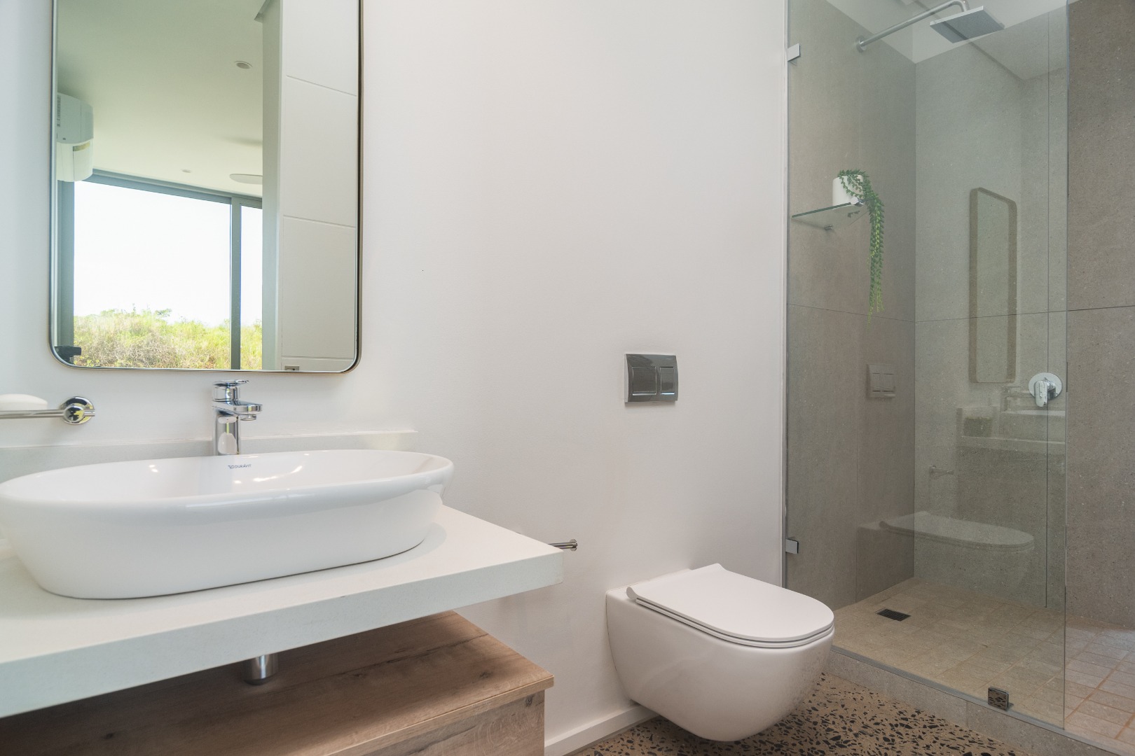 There are four en-suite bedrooms, with fans and air-conditioners as well as a guest toilet. The open plan kitchen, dining room and lounge, flow onto a