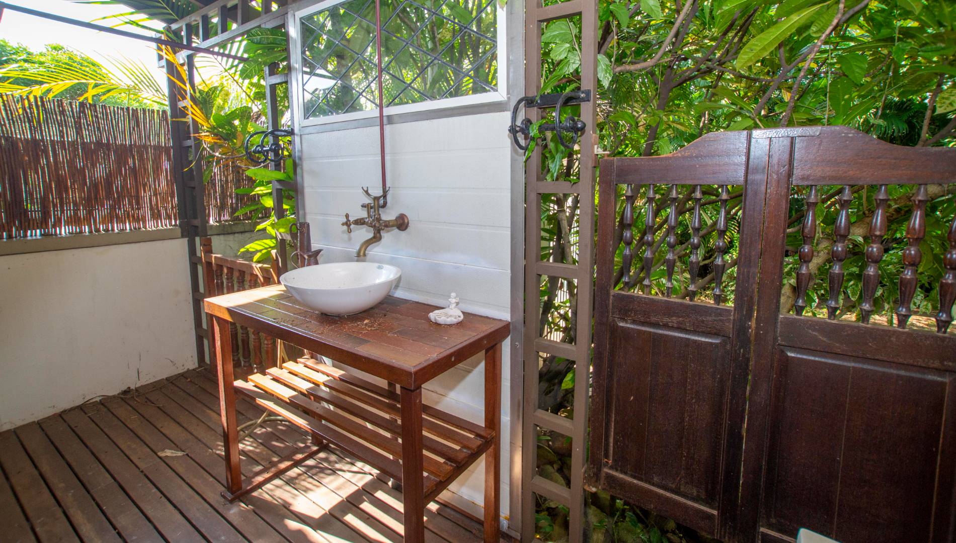 The main bedroom is en-suite with access to the garden, another bedrooms has its own shower and basin.