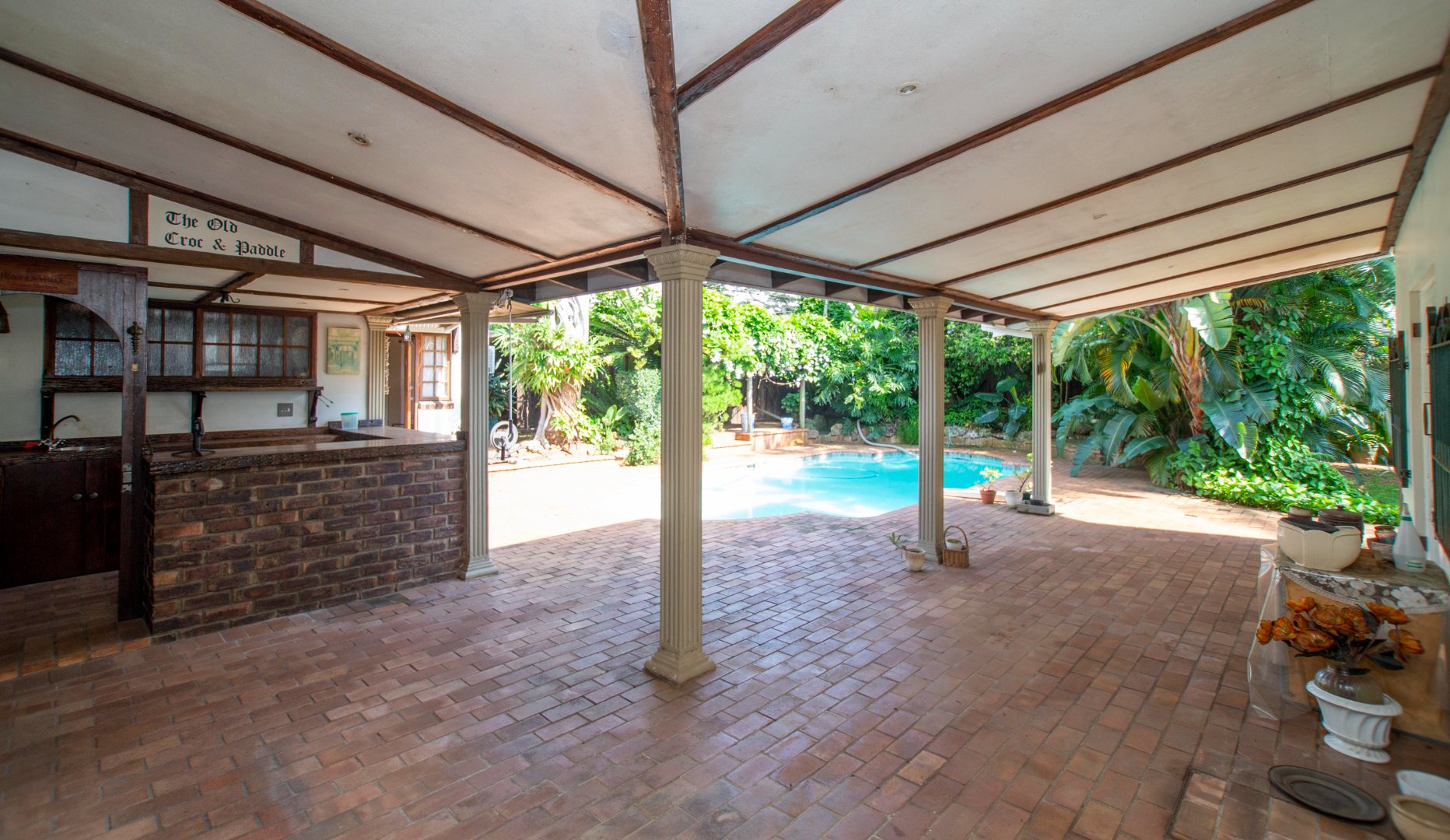 The spacious living area leads on to a covered patio with built-in bar overlooking the swimming pool and a private garden ideal for relaxation or hosting friends and family.