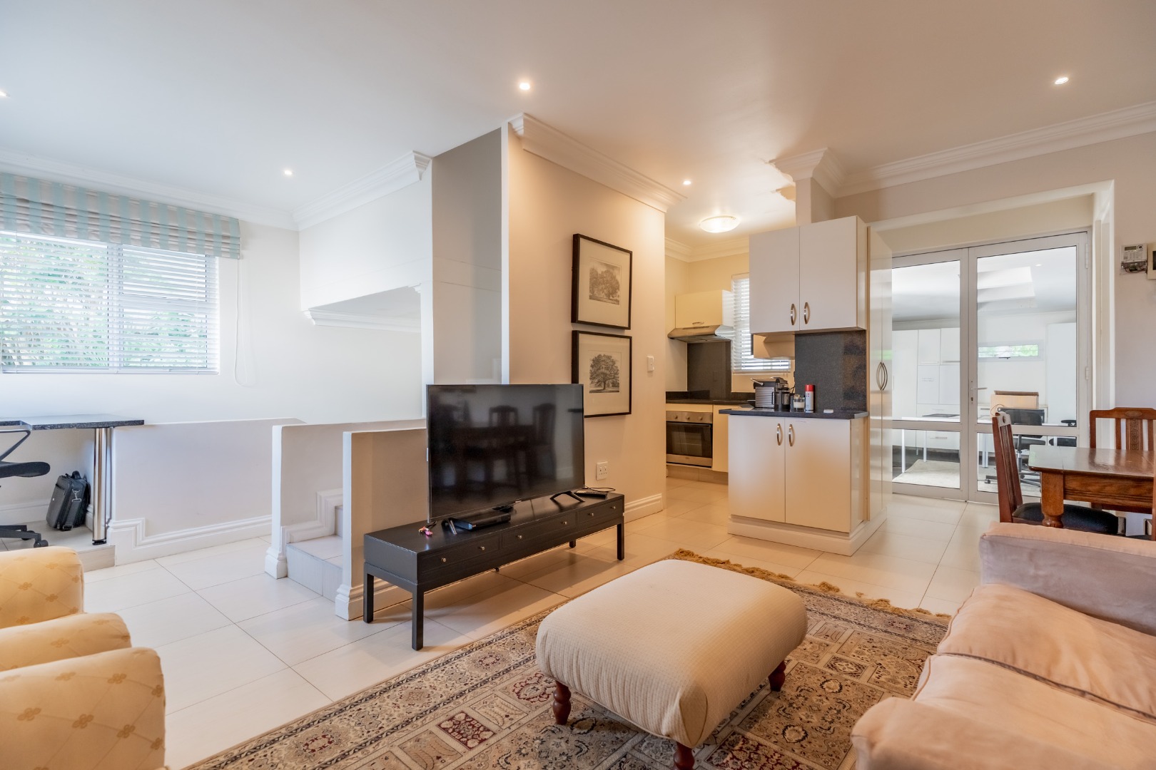 The second flatlet is fully independent and incorporates a large tandem garage with an adjoining storeroom. Open-plan living accommodates lounge, dining, and kitchen spaces, together with a bedroom and en-suite bathroom, making it ideally suited to extended family living or rental purposes.