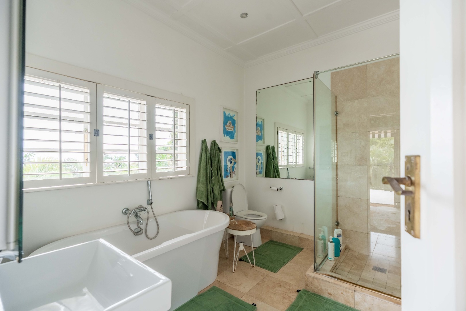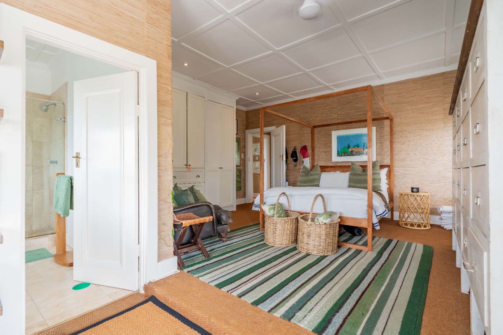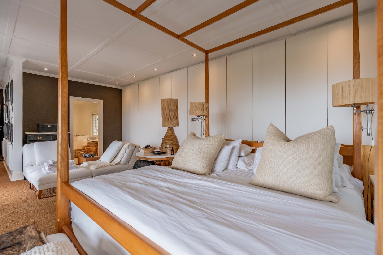 Upstairs, four beautifully appointed bedrooms offer peace and privacy, two featuring en suite bathrooms. The main suite impresses with its own lounge, dressing area, and a private terrace that captures morning light and soft sea breezes.