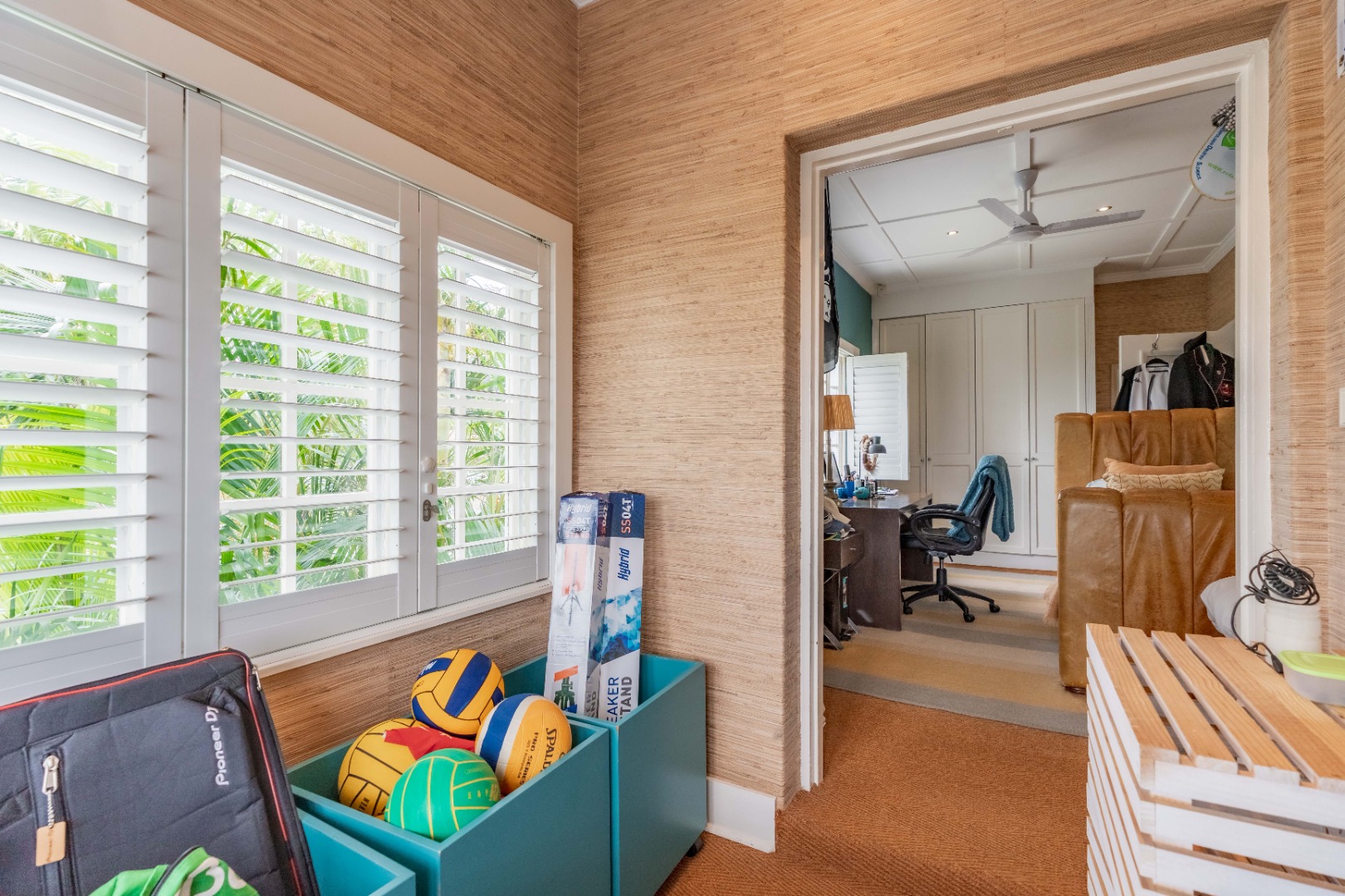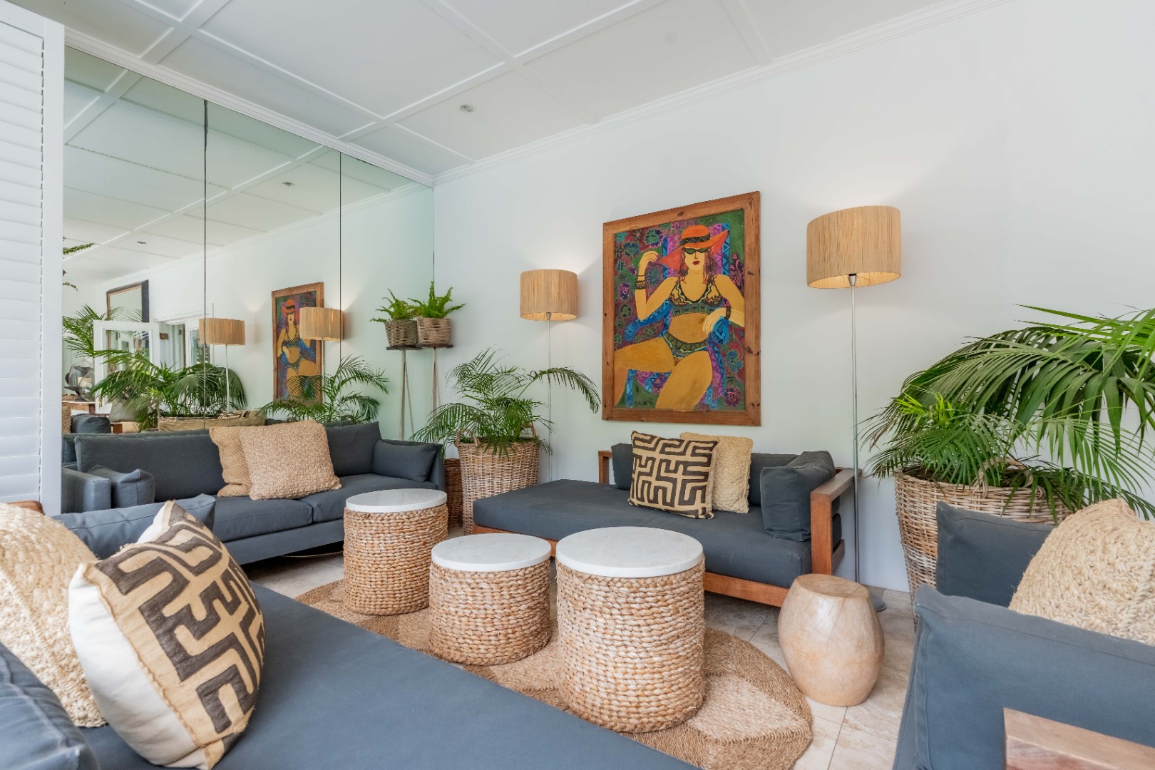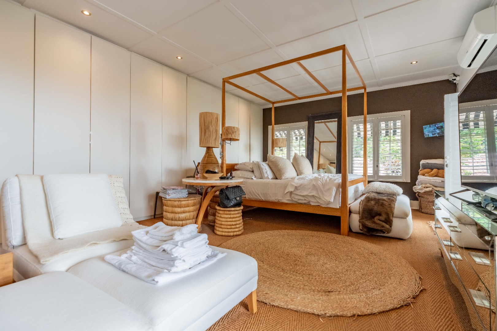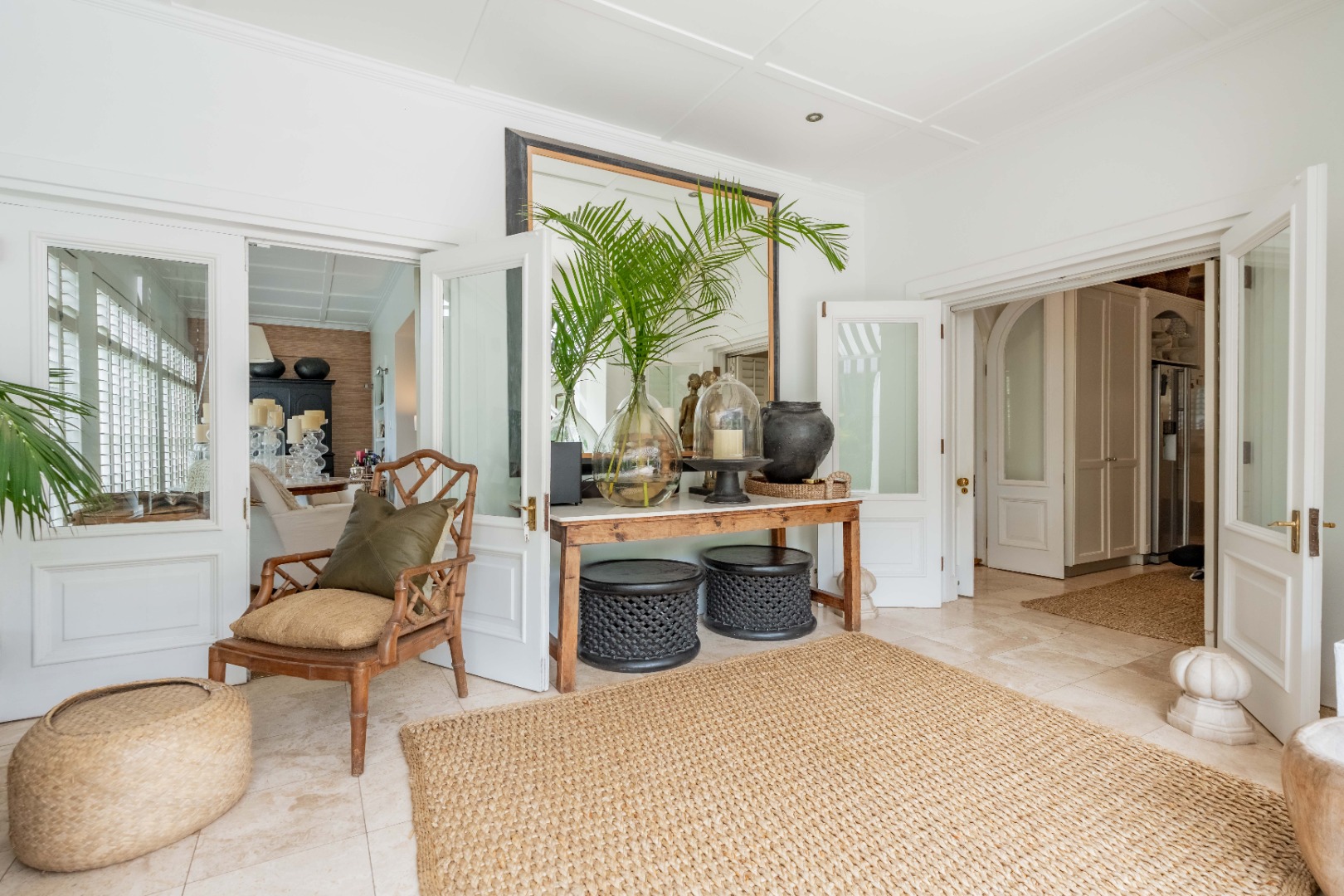 Upstairs, four beautifully appointed bedrooms offer peace and privacy, two featuring en suite bathrooms. The main suite impresses with its own lounge, dressing area, and a private terrace that captures morning light and soft sea breezes.