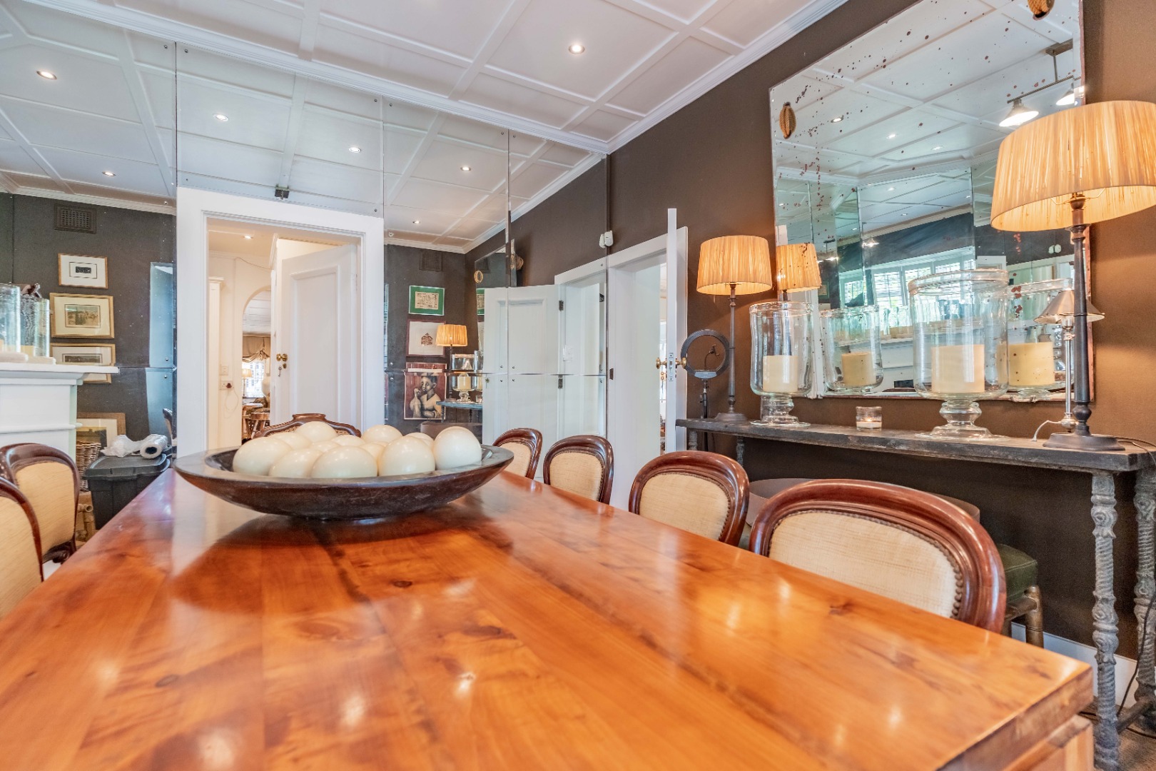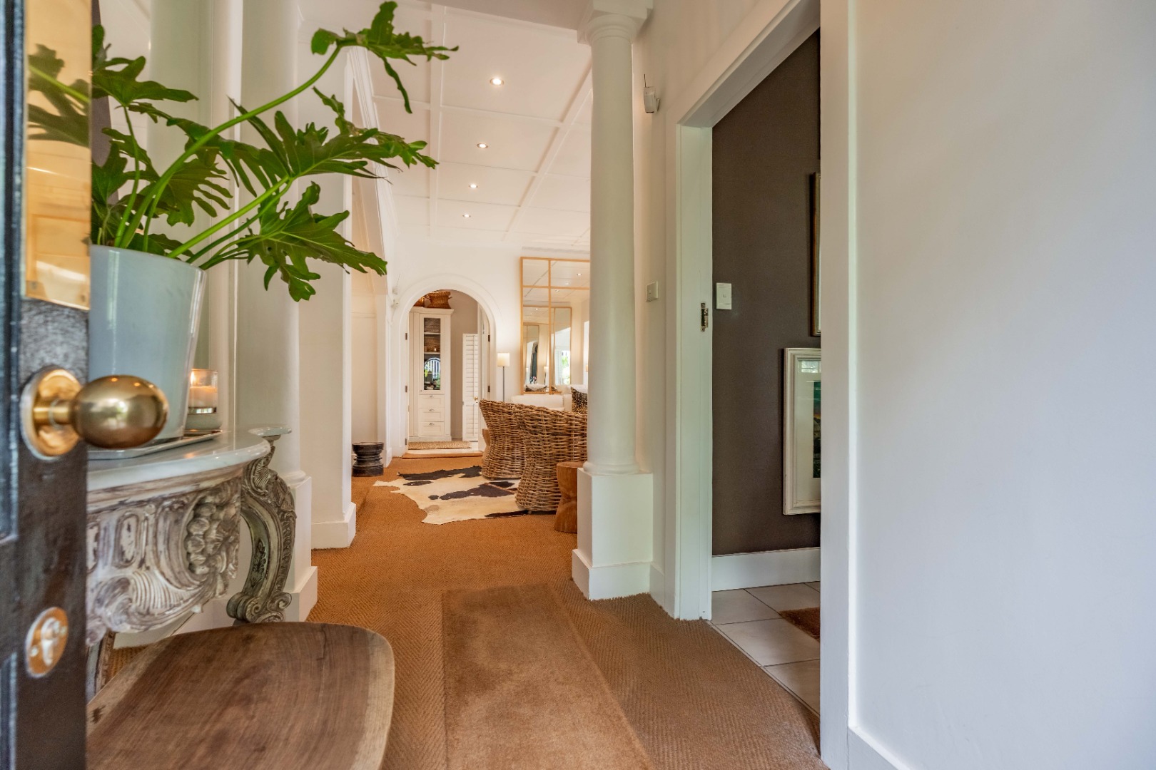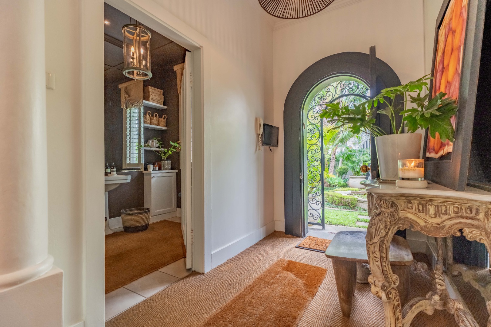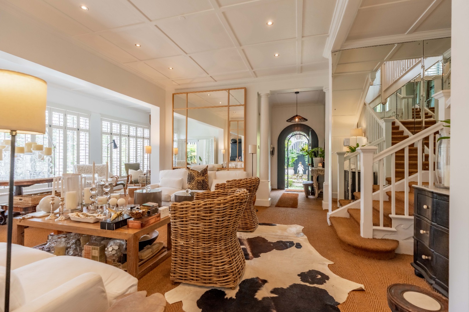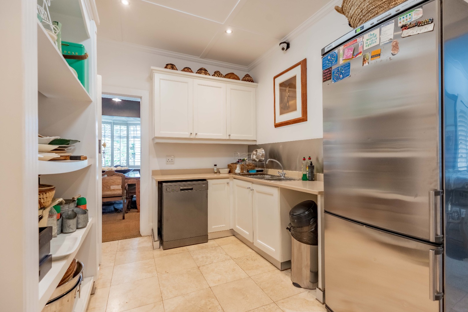 Privacy and security are paramount, set behind dual driveways lined with majestic palms, this stately home offers ample off-street parking and a sense of exclusivity rarely found in upper Durban North. The cobblestone driveway, ivy-clad façade, and manicured gardens immediately set the tone for sophistication and grandeur.