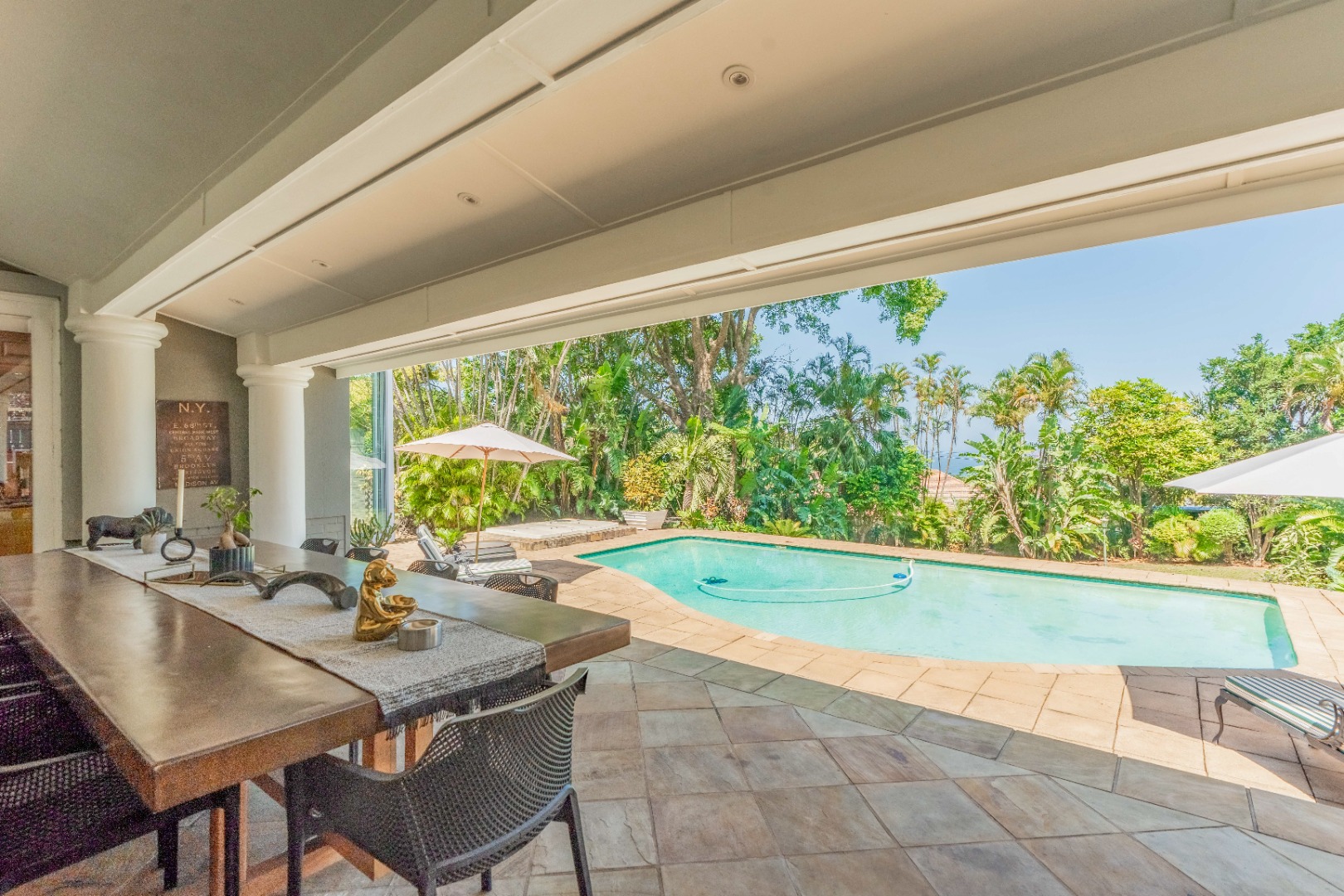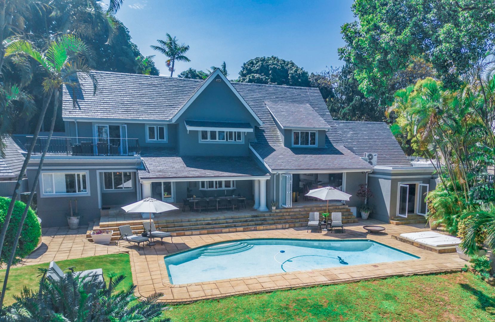 A contemporary home of scale, craftsmanship and refined materiality, offering exceptional indoor-outdoor living, beautifully curated gardens and elevated coastal touches in one of Durban North’s most sought-after addresses.