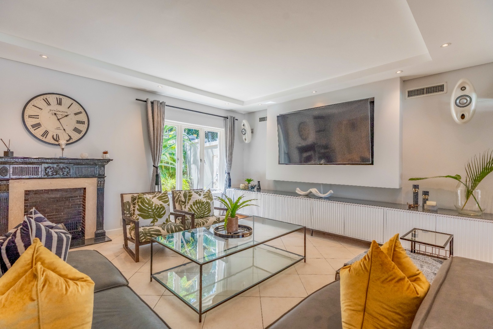 Expansive, curated open-plan living areas define this exceptional residence, where multiple lounges and refined reception spaces flow together with contemporary clarity and balance. The formal lounge introduces the home with a feature fireplace, elegant cabinetry and soft neutral tones, while the adjoining family lounge invites a relaxed ambience. Full glass stack backs blur the boundaries between inside and out, drawing in the beautiful garden views.