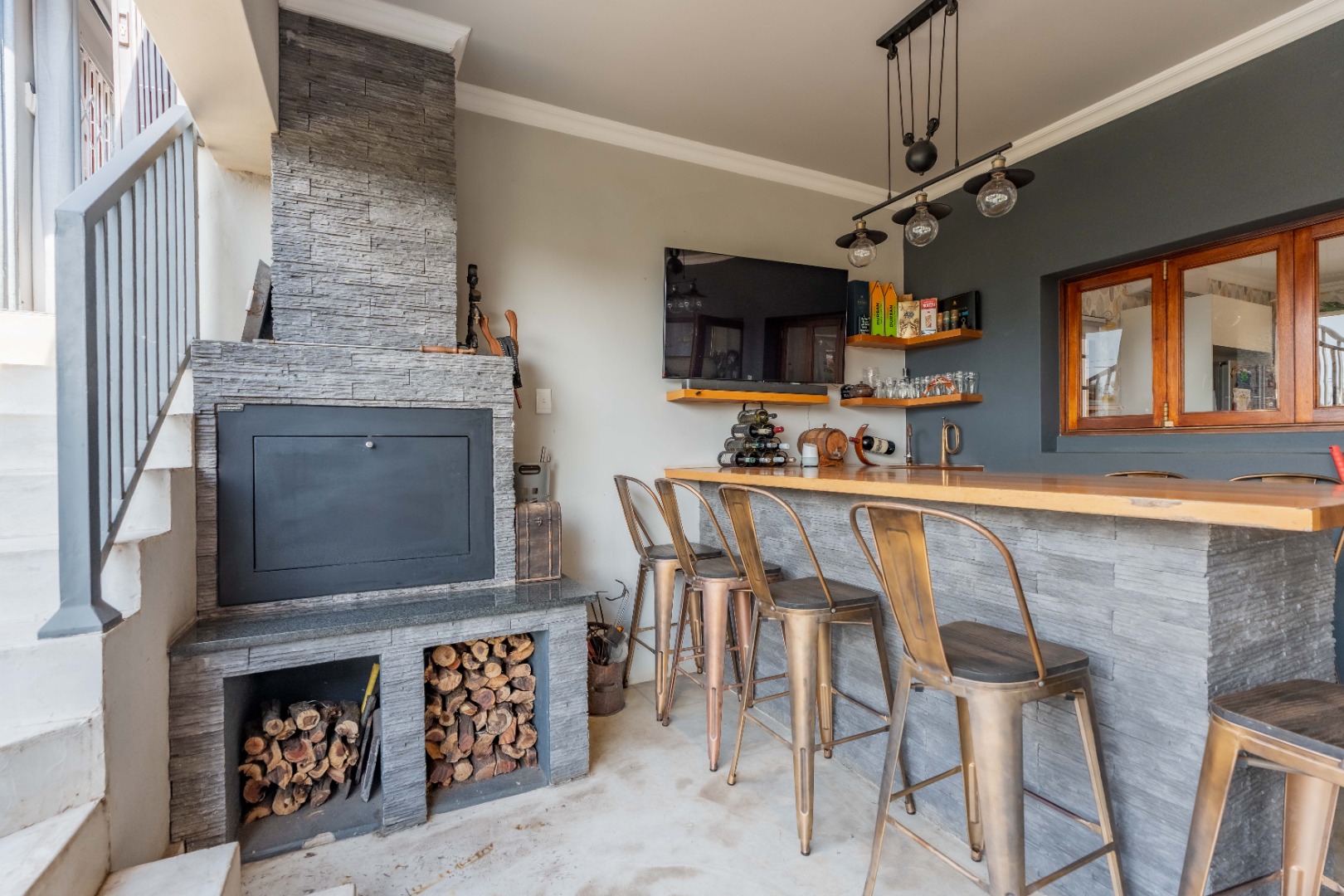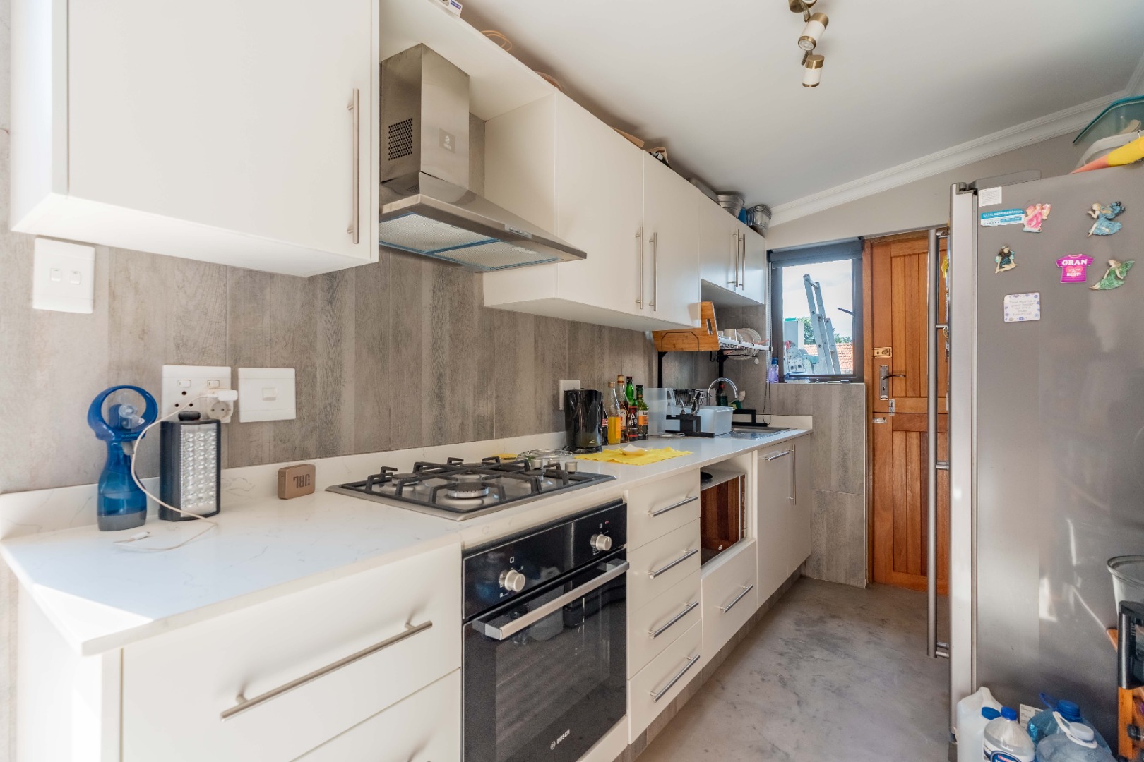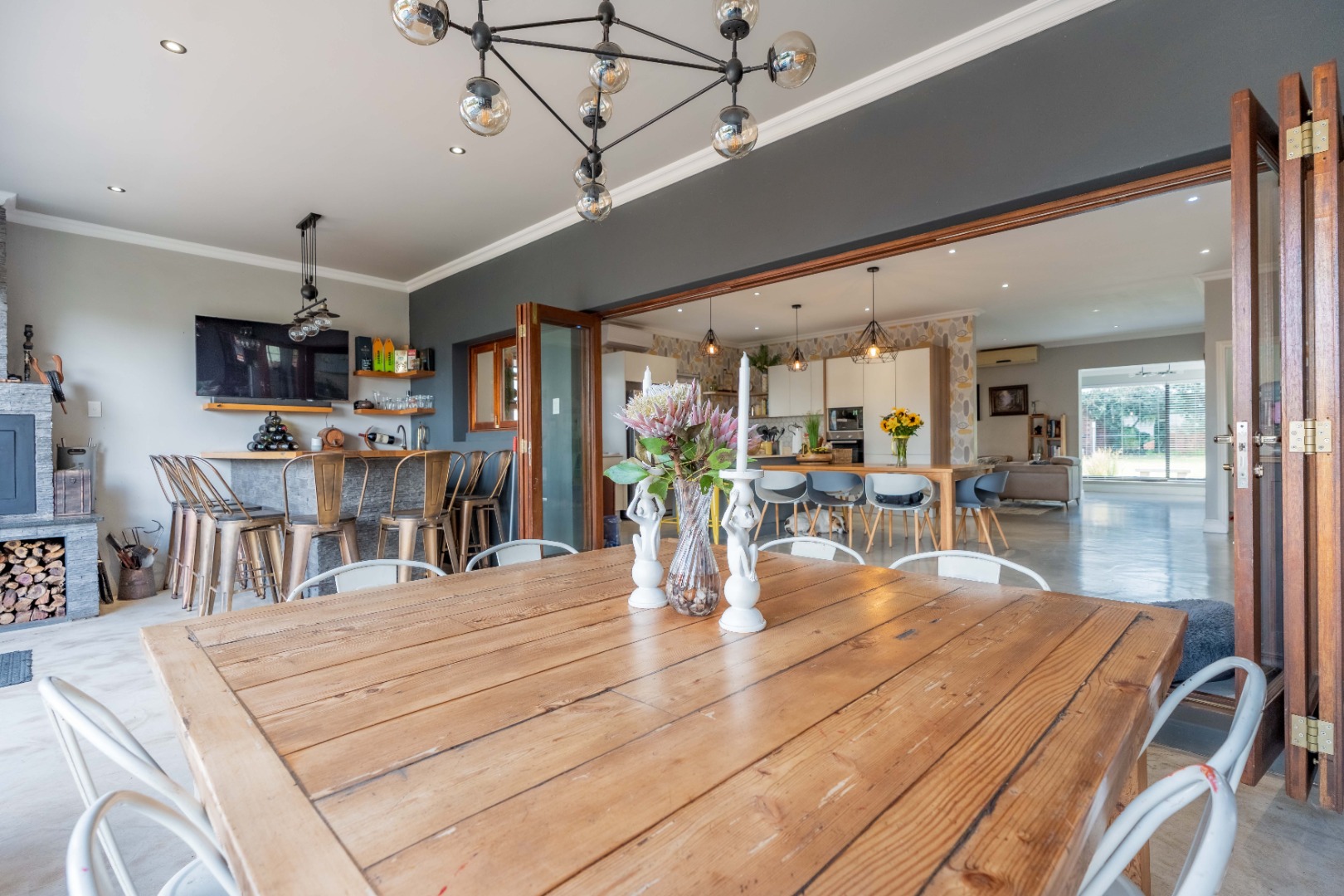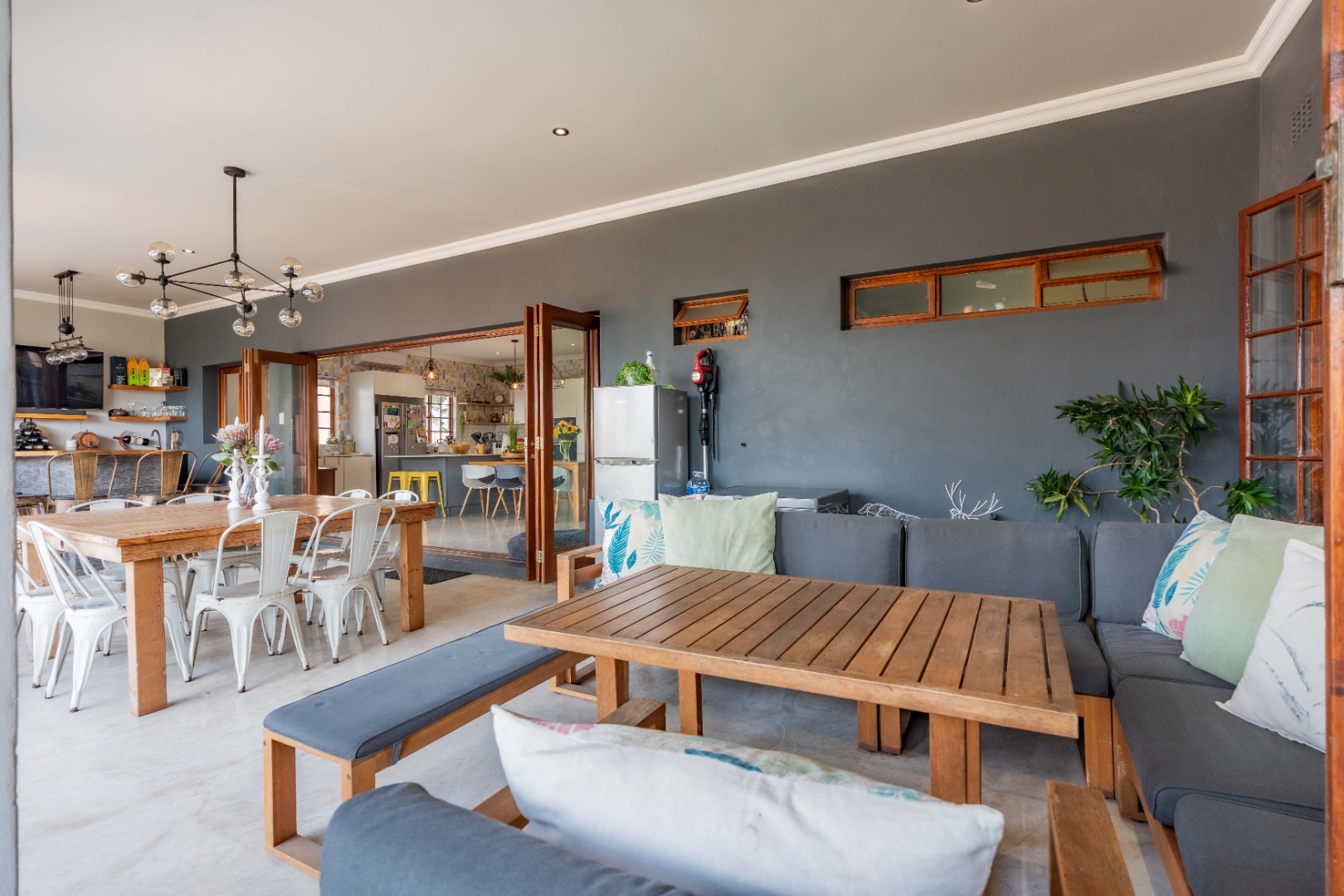 Full stack back doors open seamlessly to the expansive, covered, L-shaped verandah with a built-in braai, conversation counter, and ample space for alfresco dining and lounging. This space overlooks a sunlit, manicured ,level garden and a sparkling pool — the ultimate backdrop for entertaining and everyday relaxation.