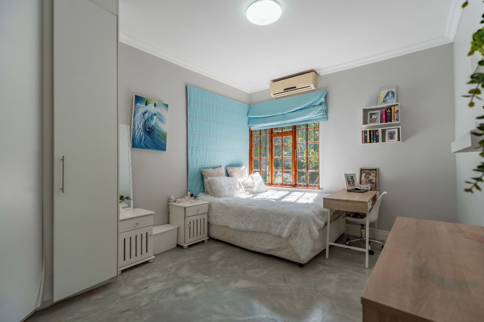 A staircase leads from the patio to a private, large, loft-style, finished in polished concrete with slight sea views, plus an en-suite bathroom. This versatile space functions beautifully as a second lounge, creative studio, teen hideout, or work-from-home zone.