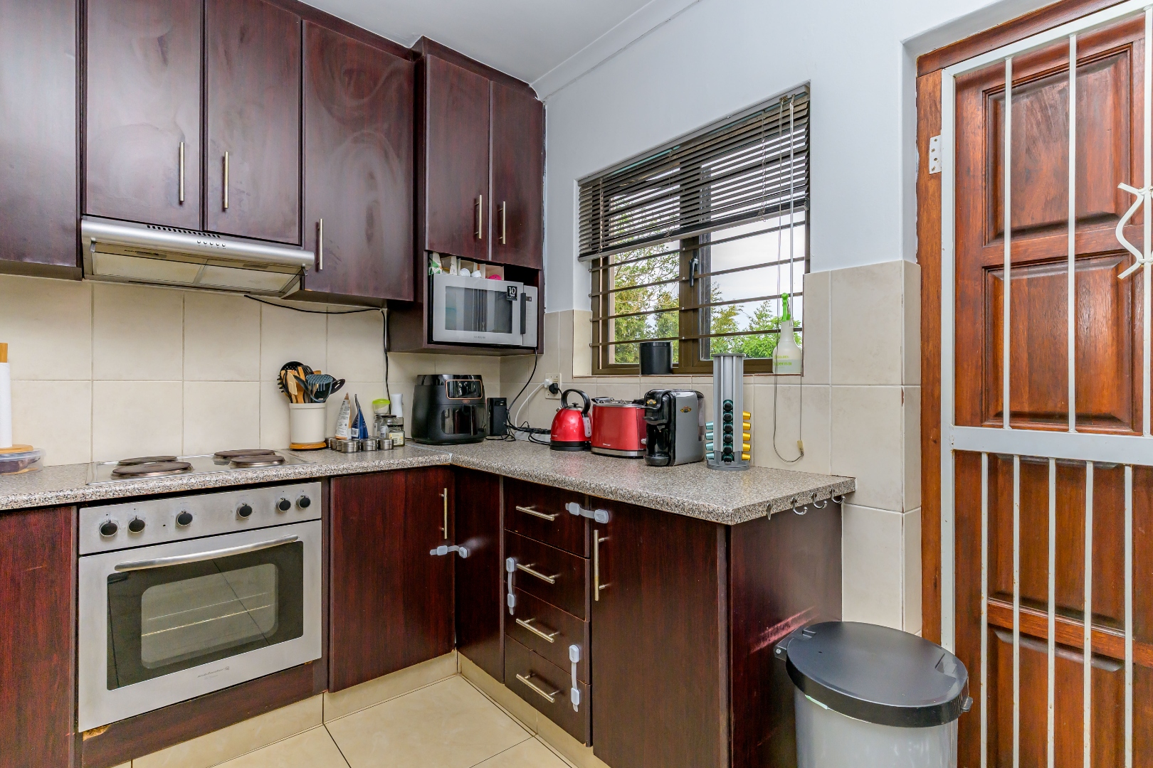 Step inside to discover an open-plan living and dining area, bathed in natural light and featuring tiled flooring throughout. The lounge has doors out to the garden providing seamless access.