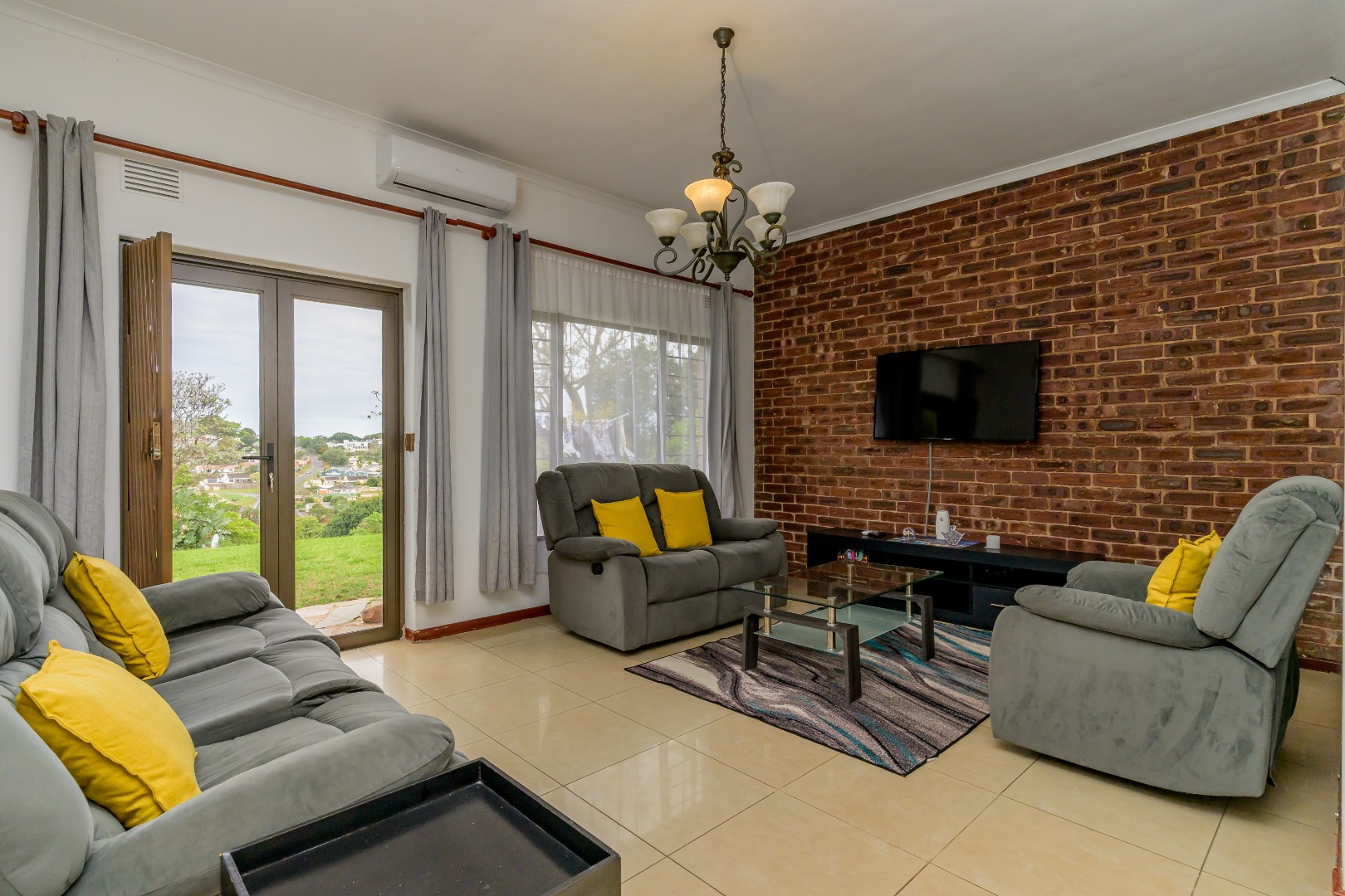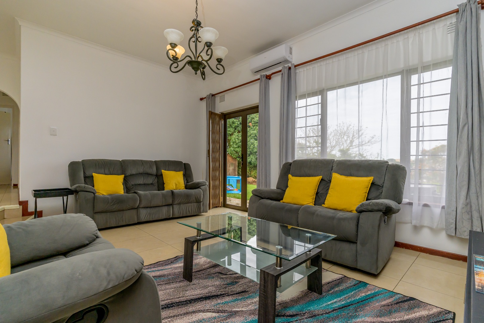 This charming single-story residence in Glen Anil presents an inviting curb appeal. The well-maintained lawn and mature palm trees create a welcoming tropical aesthetic.