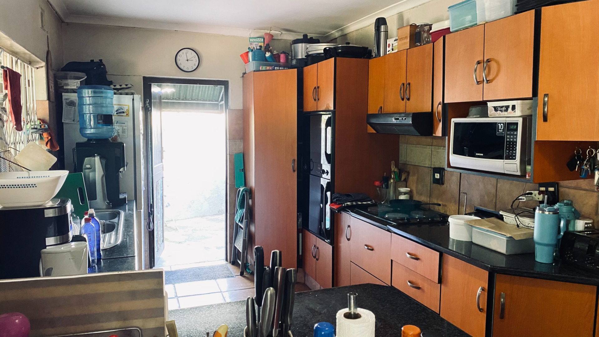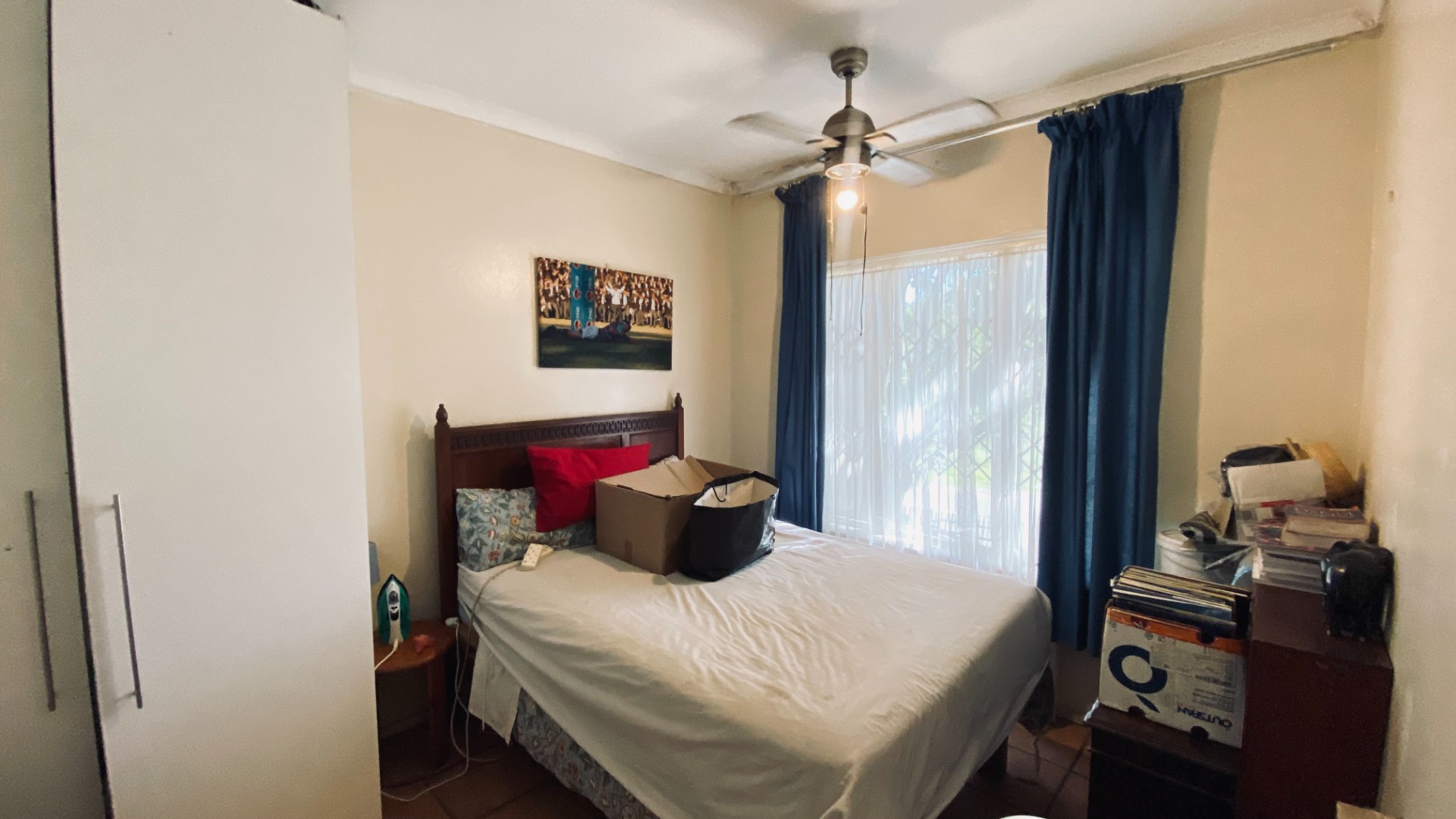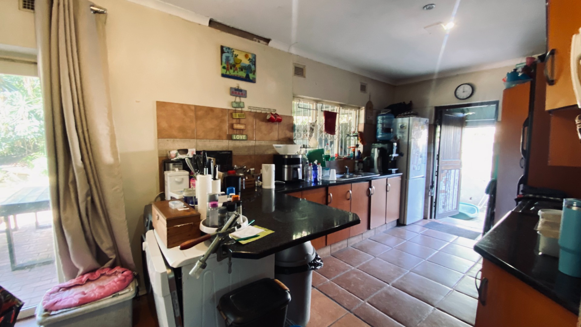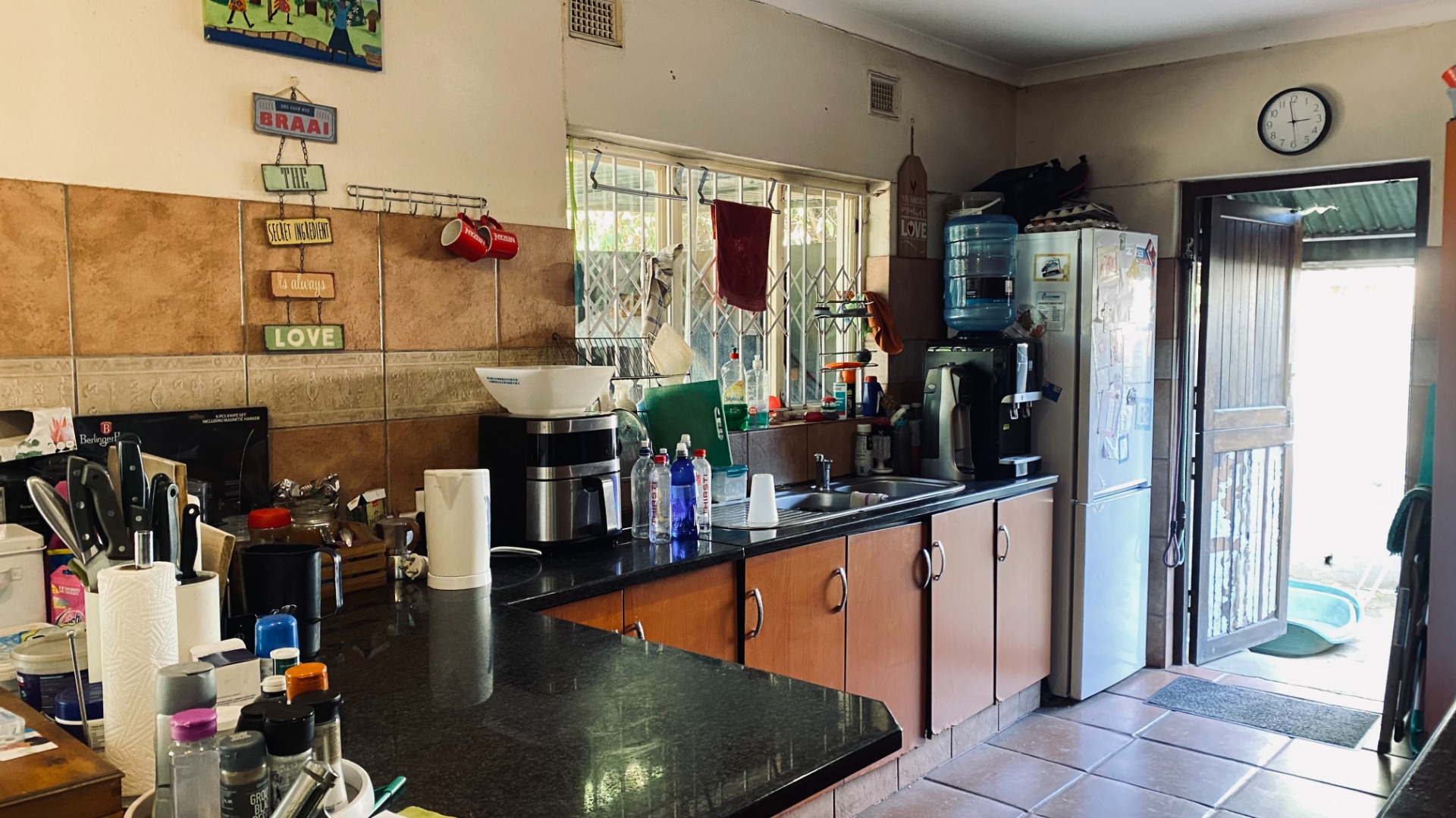 The house features a fitted kitchen, lounge, and dining room, along with a flatlet that can be used as an office or guest suite. The outdoor area includes a lovely garden, a swimming pool, and ample space for entertaining. Parking is available with a garage and additional off-road parking.