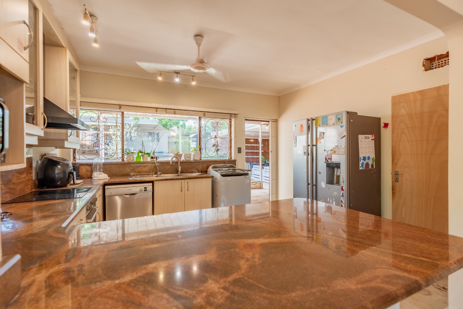 Mornings begin in the light-filled open plan living space, where the lounge, dining and kitchen flow effortlessly together. This entire open plan area truly forms the heart of the home, a place where conversations happen naturally, meals are shared, and family life unfolds with ease. The kitchen, finished with granite countertops, blends style and practicality perfectly into this inviting space.