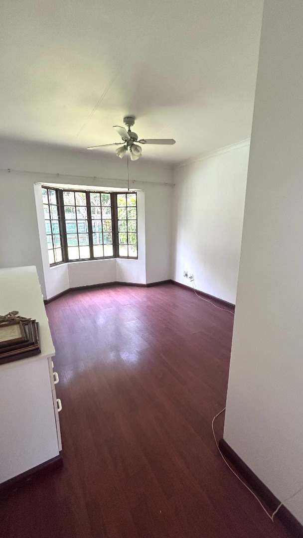 Three spacious bedrooms, one featuring a lovely bay window, all bedrooms feature laminate flooring. Security is well taken care of with an access gate, electric fencing, burglar bars, and 24-hour security, giving you peace of mind. There's also an intercom system for easy visitor access.