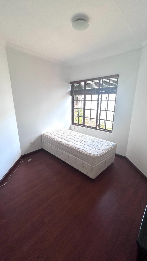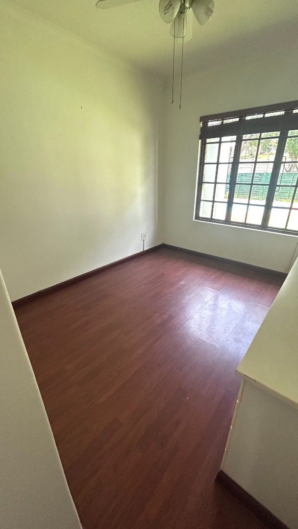 Three spacious bedrooms, one featuring a lovely bay window, all bedrooms feature laminate flooring. Security is well taken care of with an access gate, electric fencing, burglar bars, and 24-hour security, giving you peace of mind. There's also an intercom system for easy visitor access.