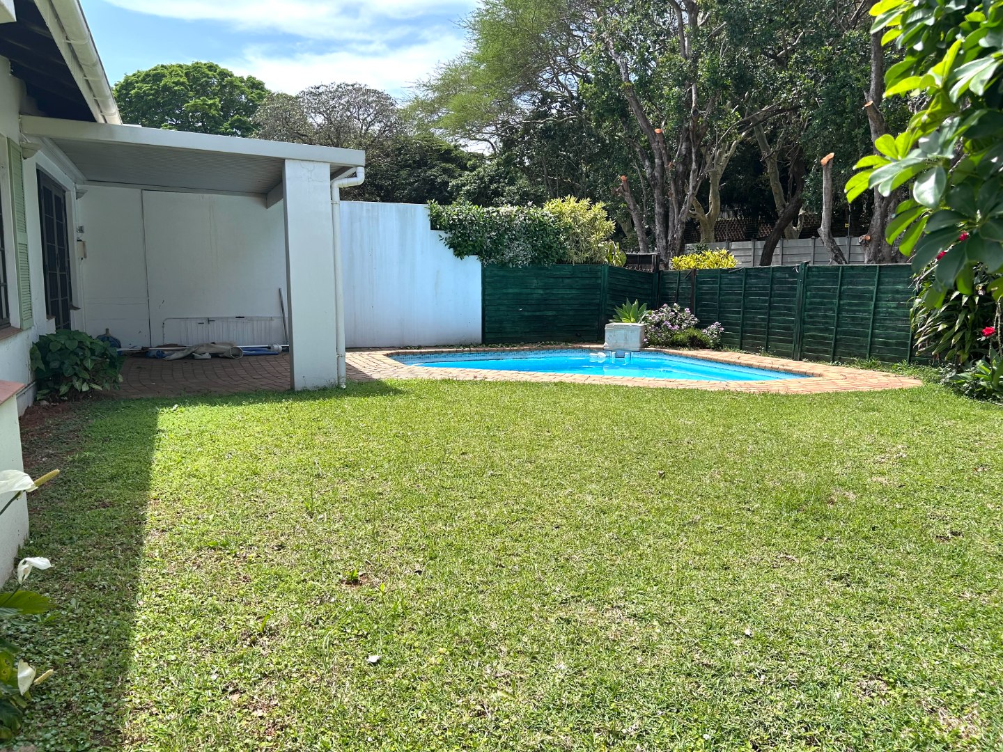 There's a lovely swimming pool, perfect for those sunny Durban days, alongside a small, easy-to-manage garden. The covered patio is just the spot for chilling out or entertaining friends. Plus, you've got a double garage and an extra parking space, and the complex is pet-friendly.