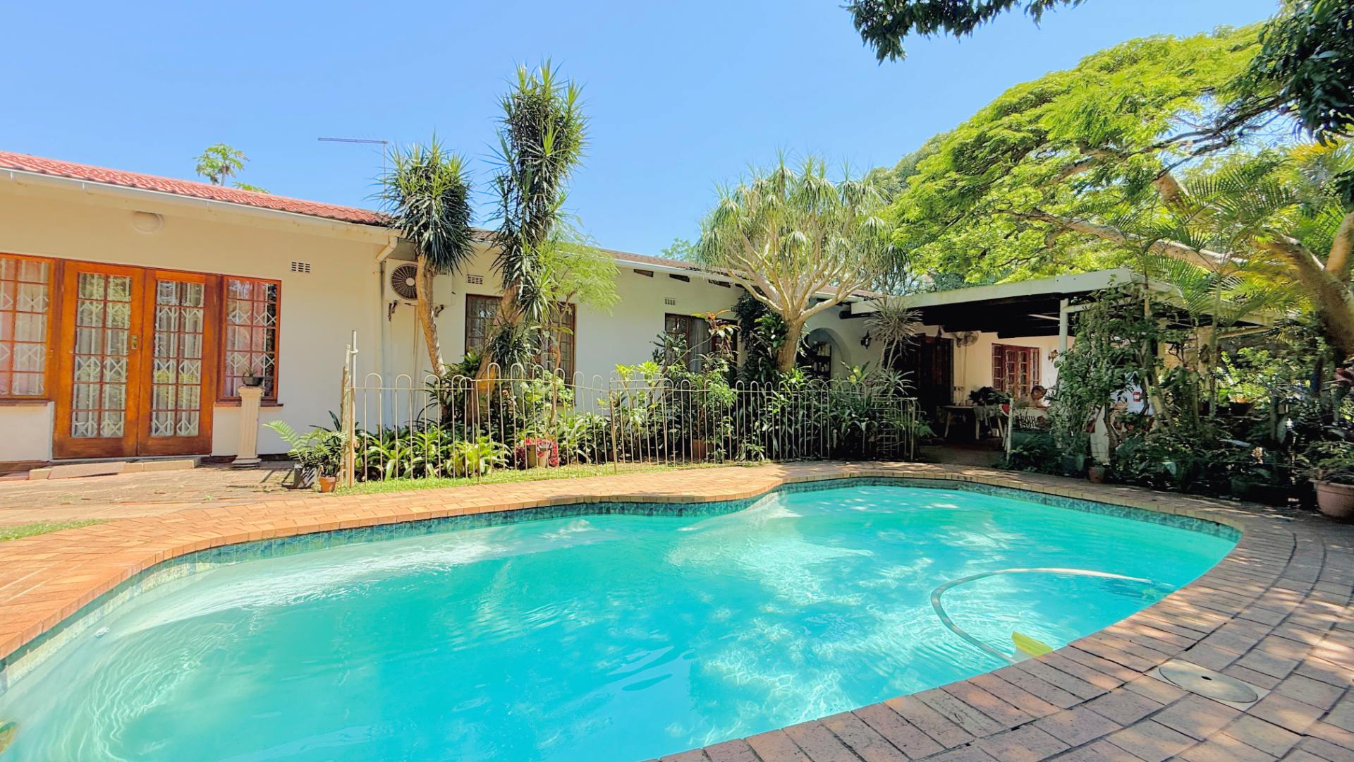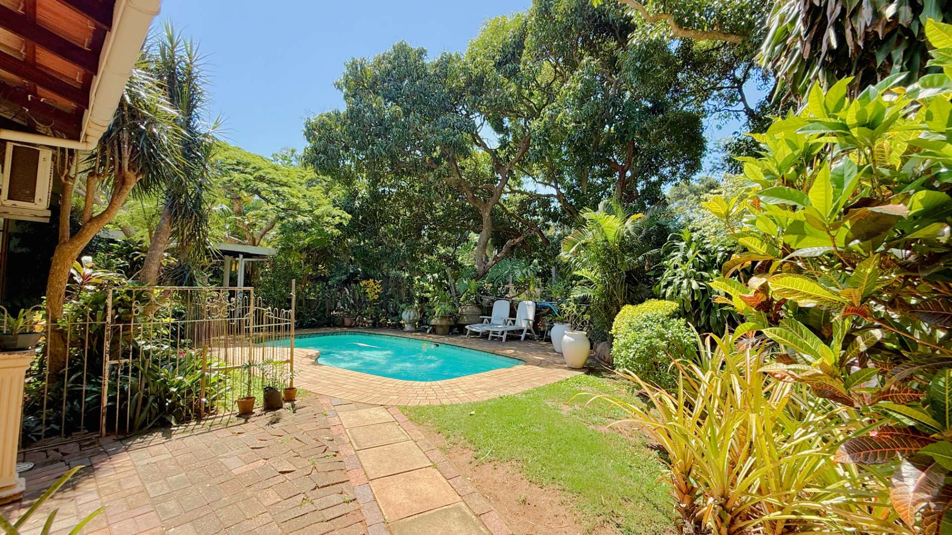 Outdoors, a tropical oasis awaits — enjoy the sparkling pool surrounded by lush greenery, perfect for relaxing