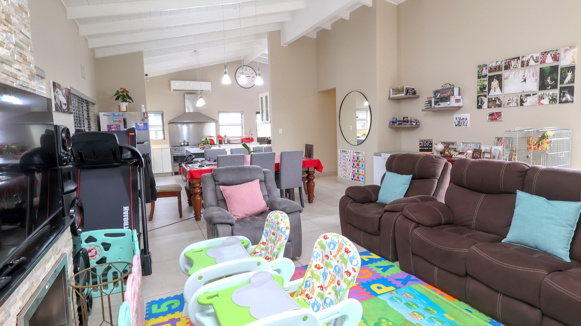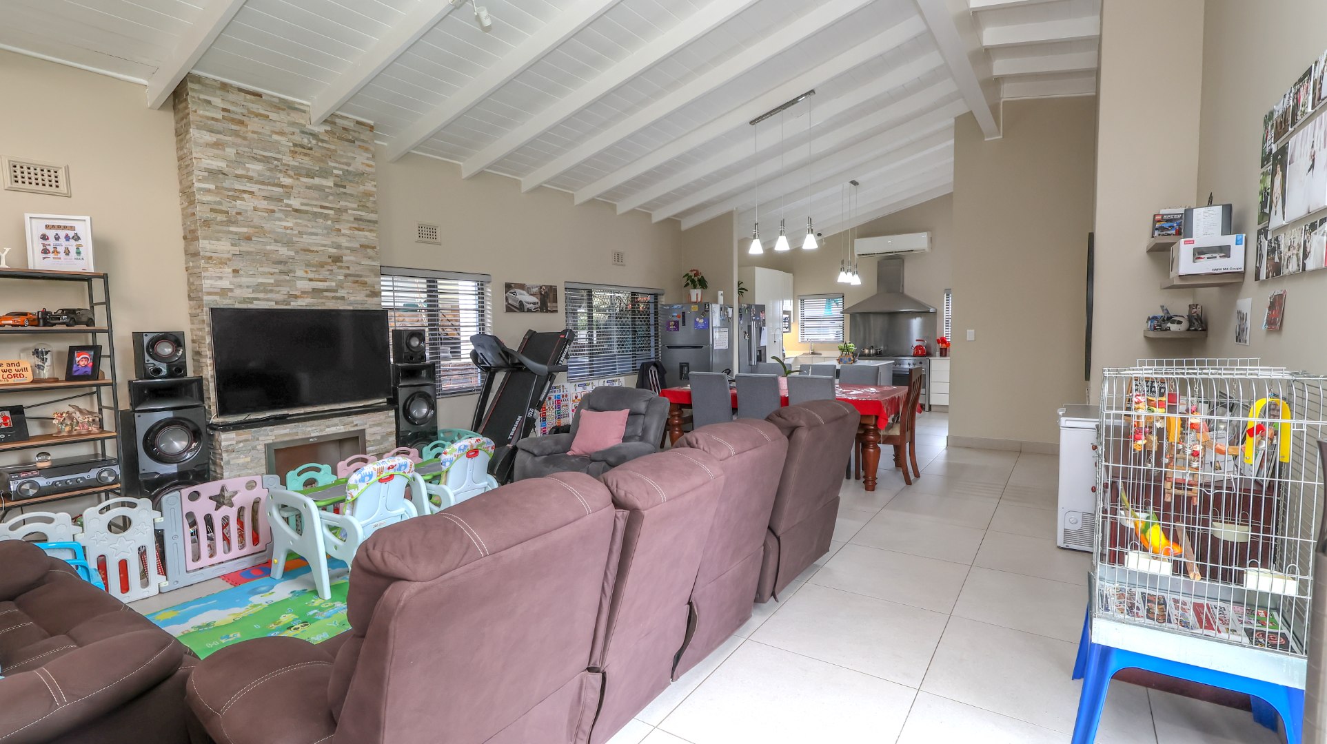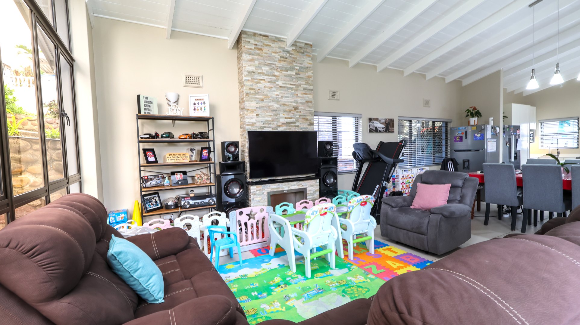 Entertainment Hub: The seamless flow leads to a spacious, undercover entertainment area complete with a built-in braai barbecue. This space is perfectly positioned to overlook the sparkling pool, creating an ideal setting for hosting guests or enjoying family time.