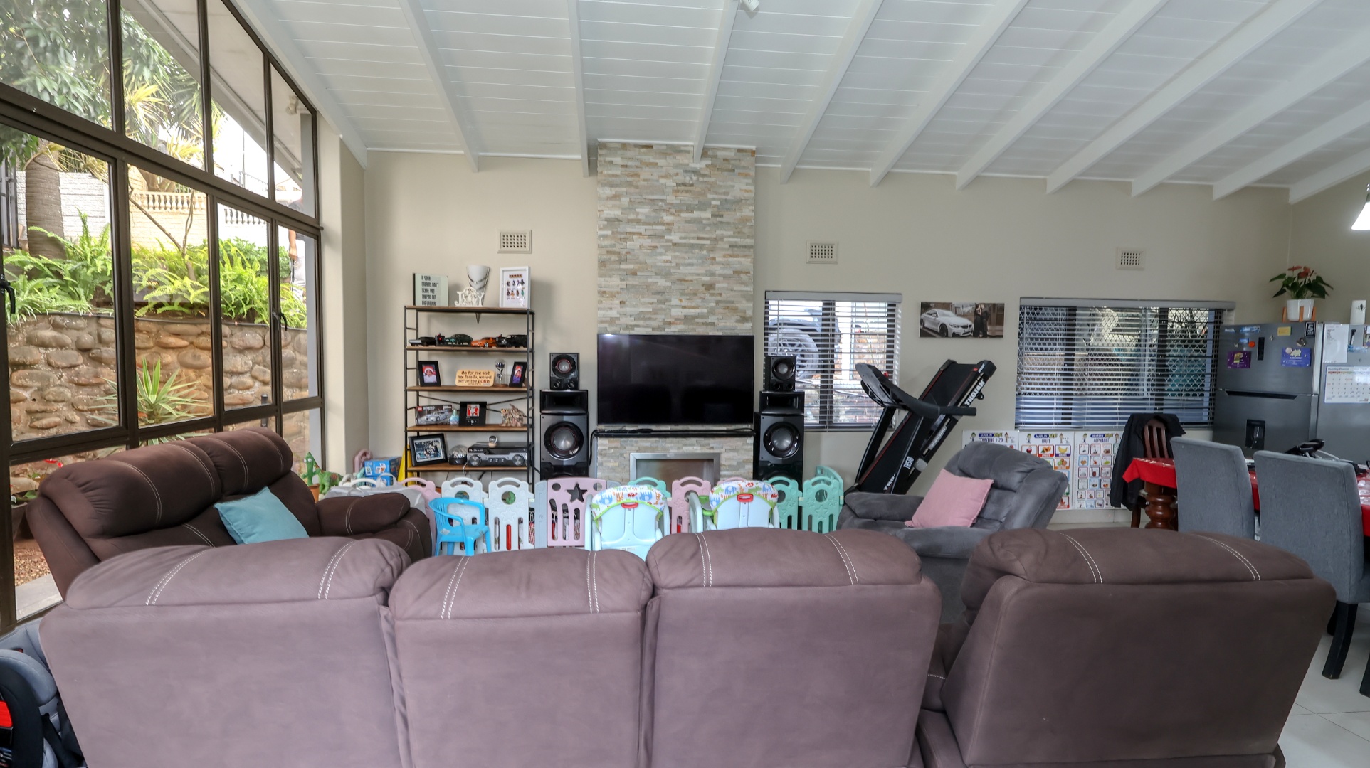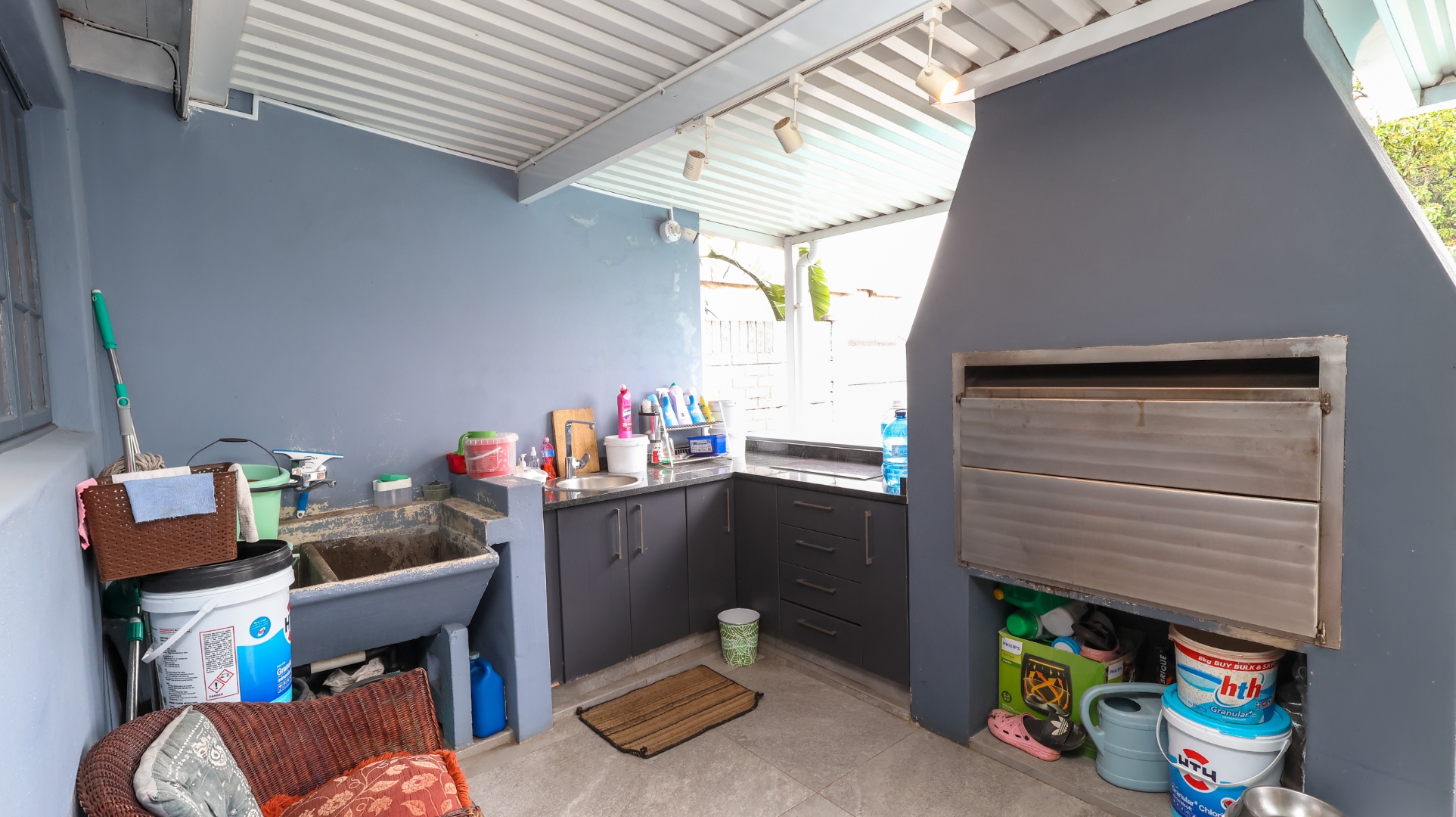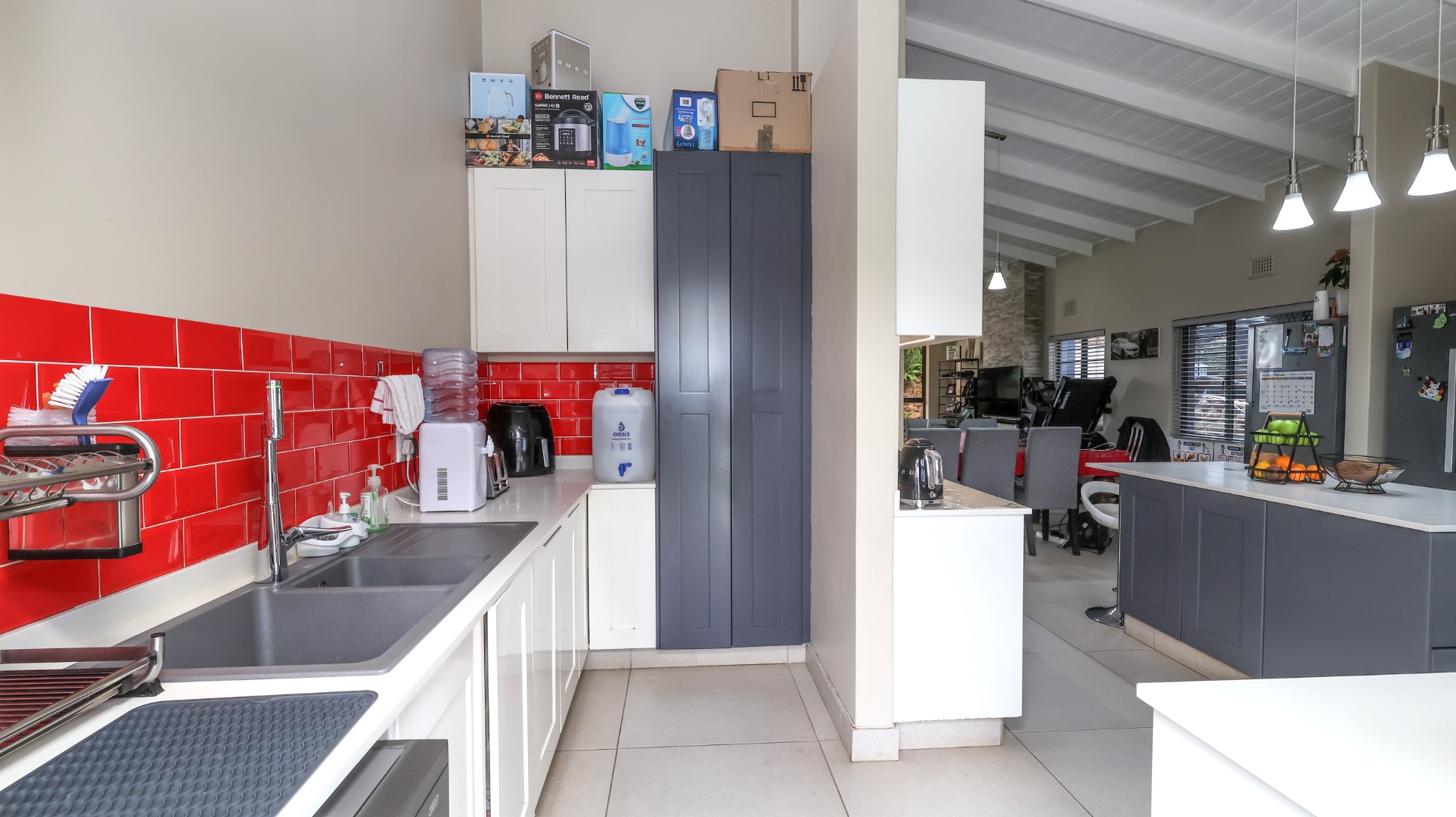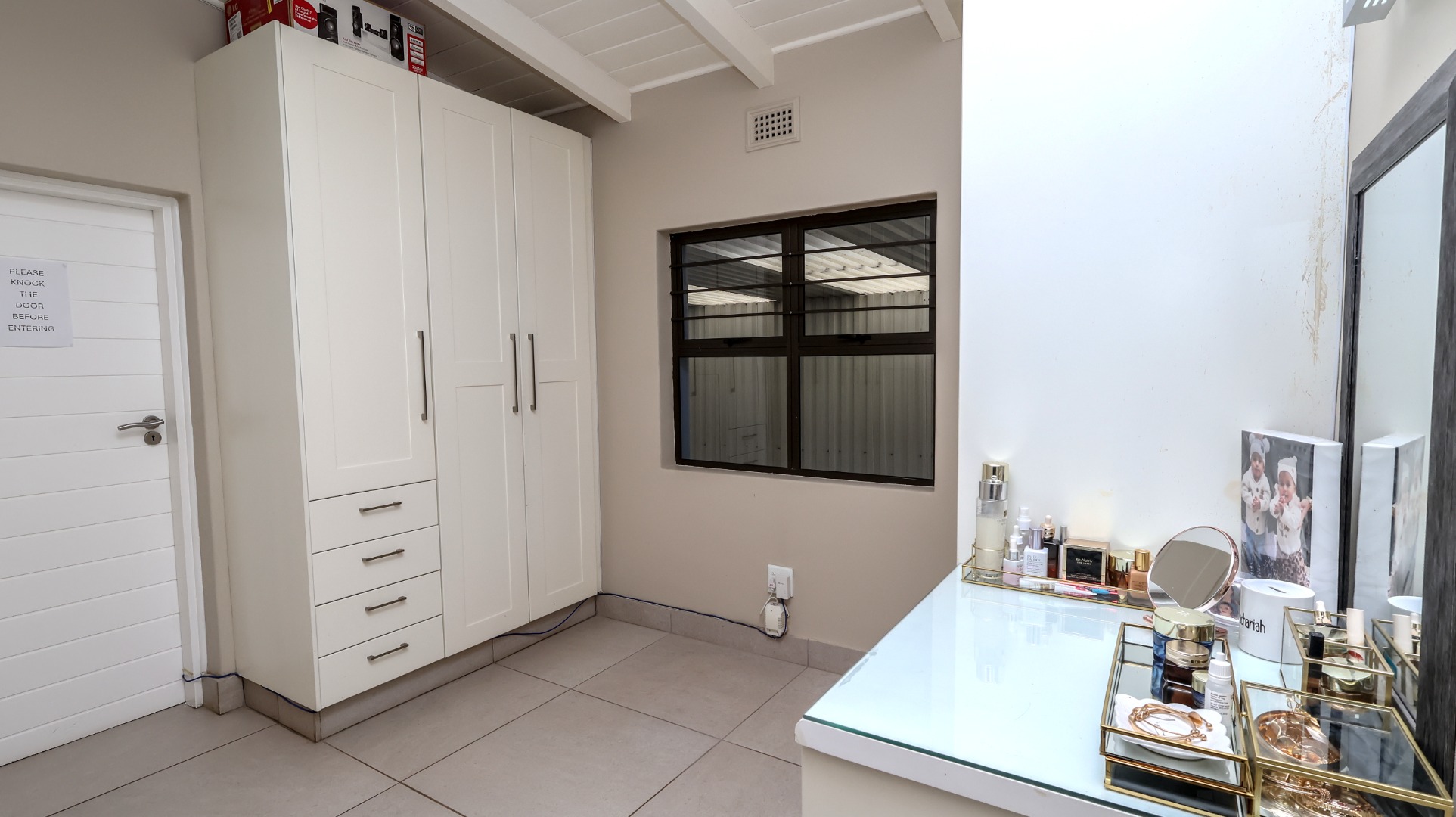 Entertainment Hub: The seamless flow leads to a spacious, undercover entertainment area complete with a built-in braai barbecue. This space is perfectly positioned to overlook the sparkling pool, creating an ideal setting for hosting guests or enjoying family time.