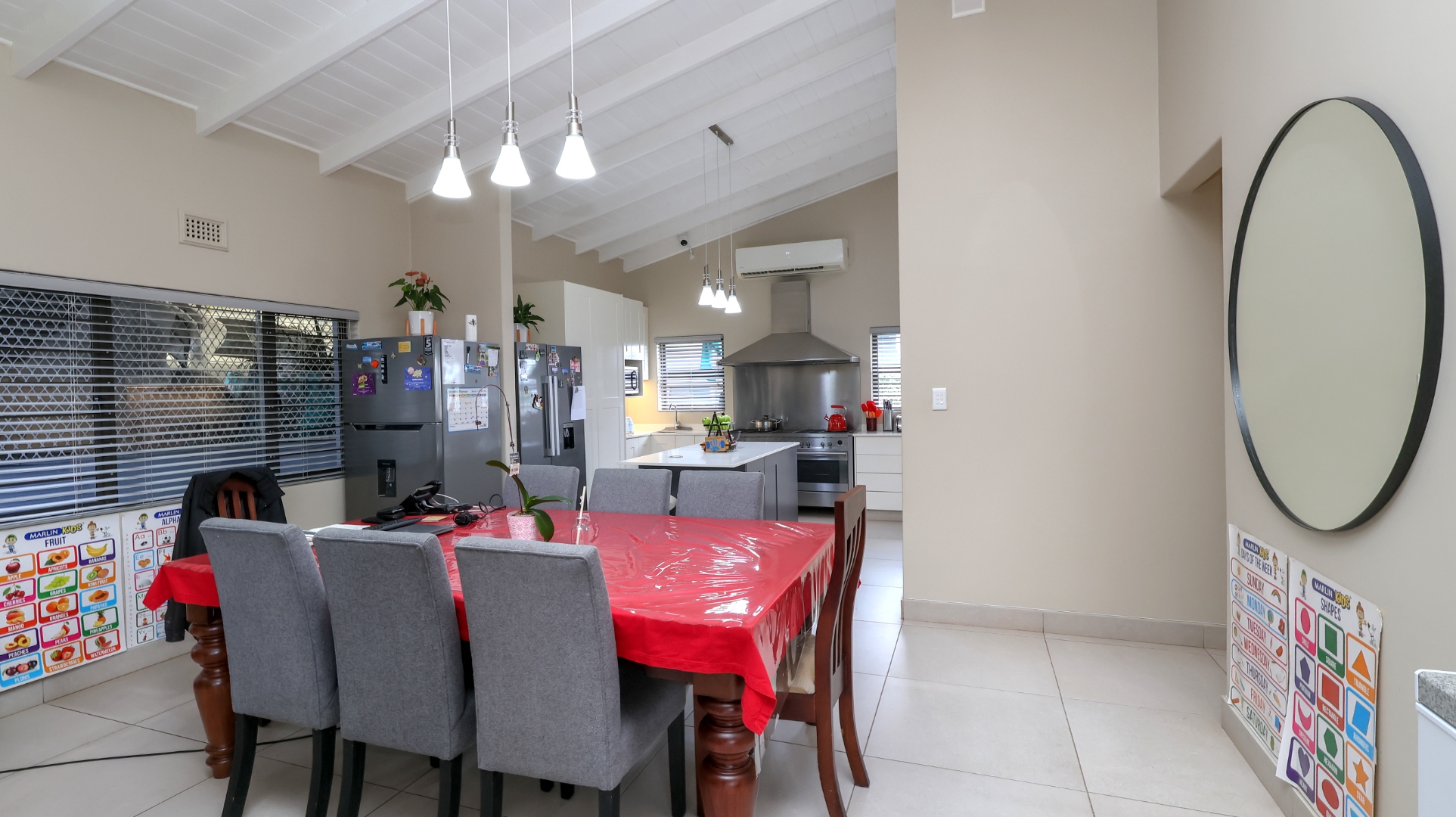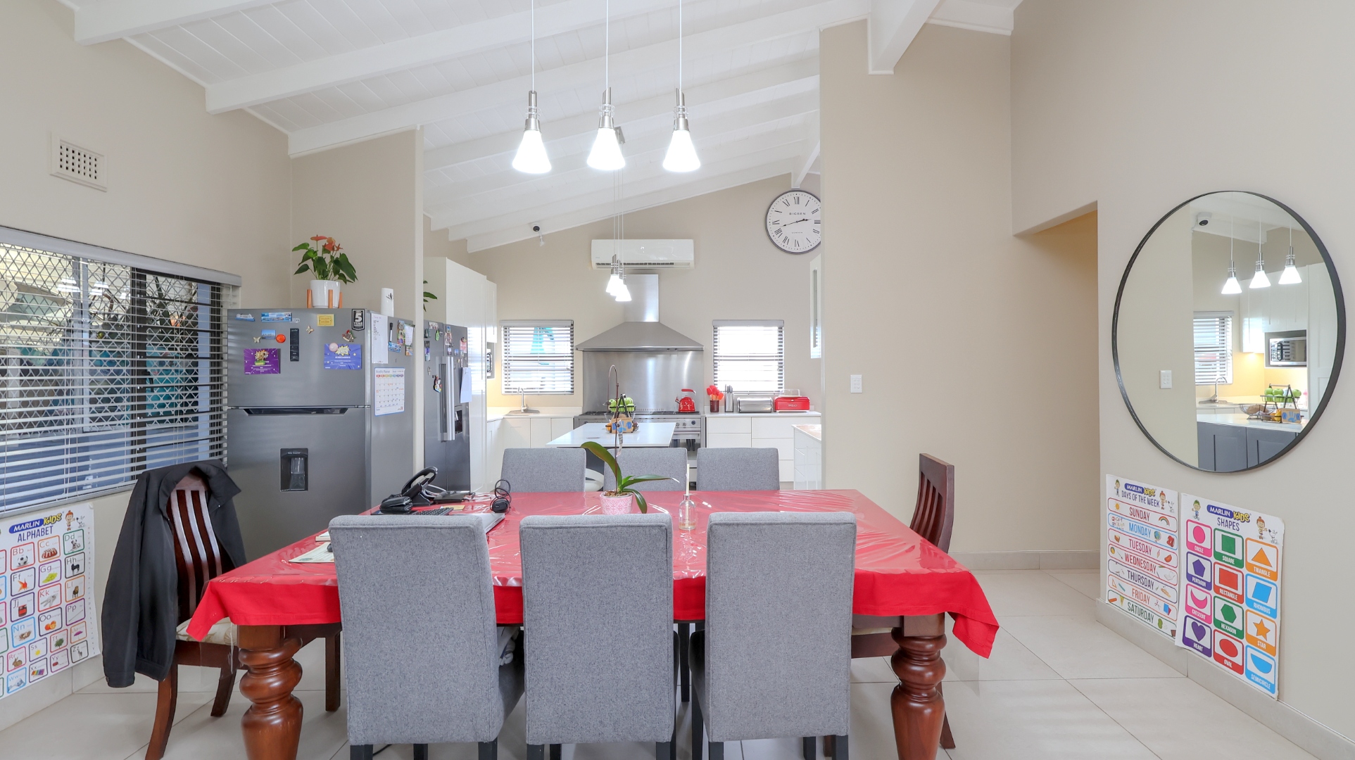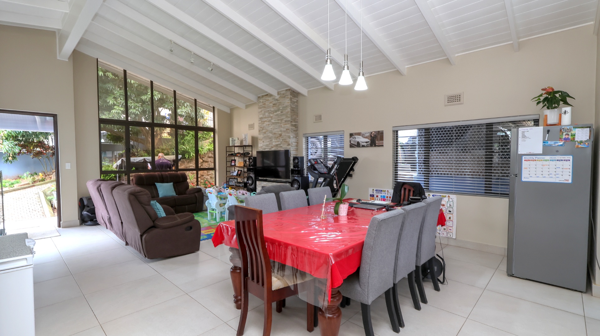 Entertainment Hub: The seamless flow leads to a spacious, undercover entertainment area complete with a built-in braai barbecue. This space is perfectly positioned to overlook the sparkling pool, creating an ideal setting for hosting guests or enjoying family time.
