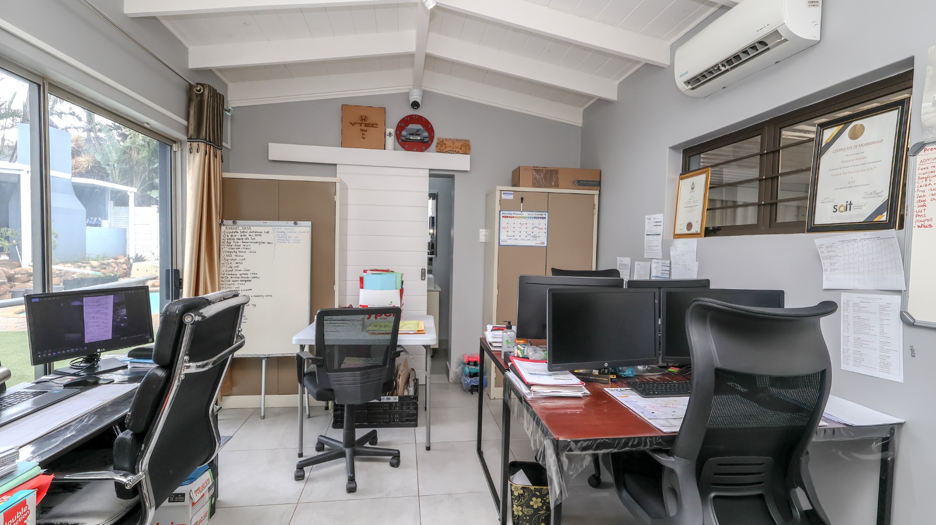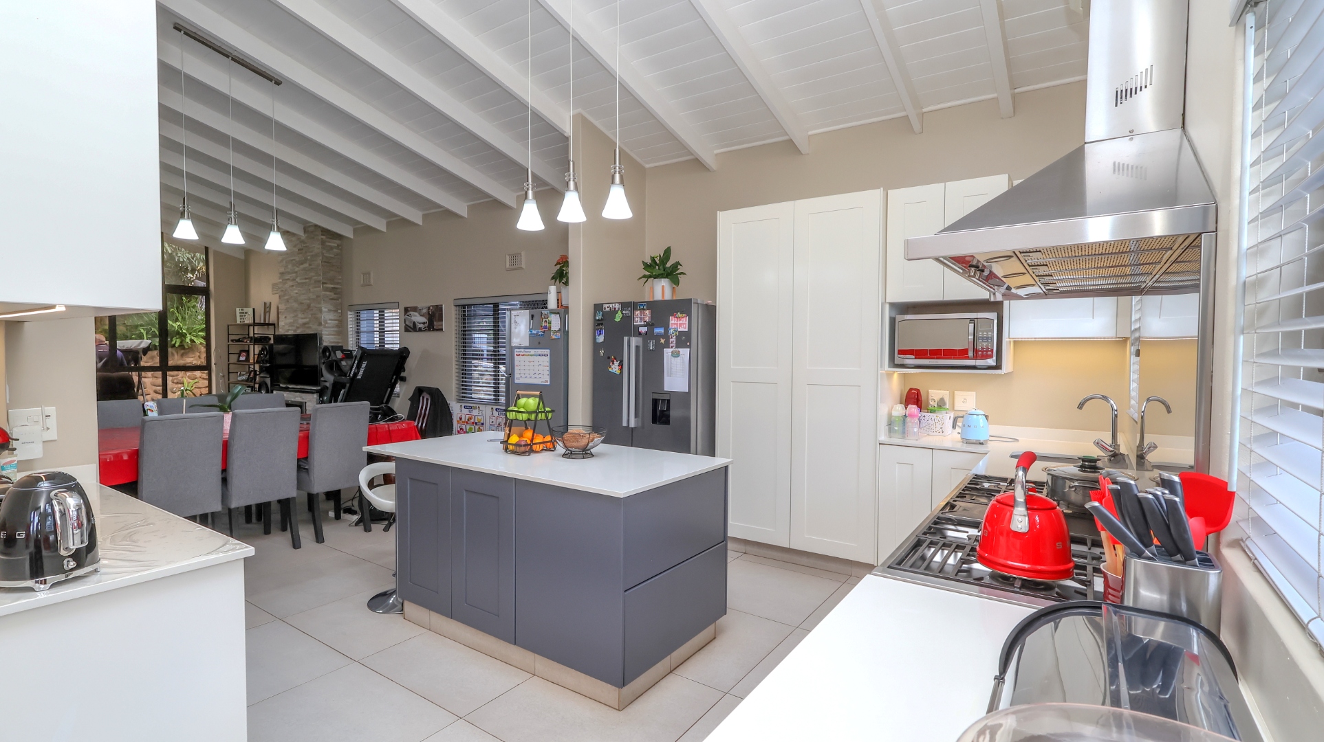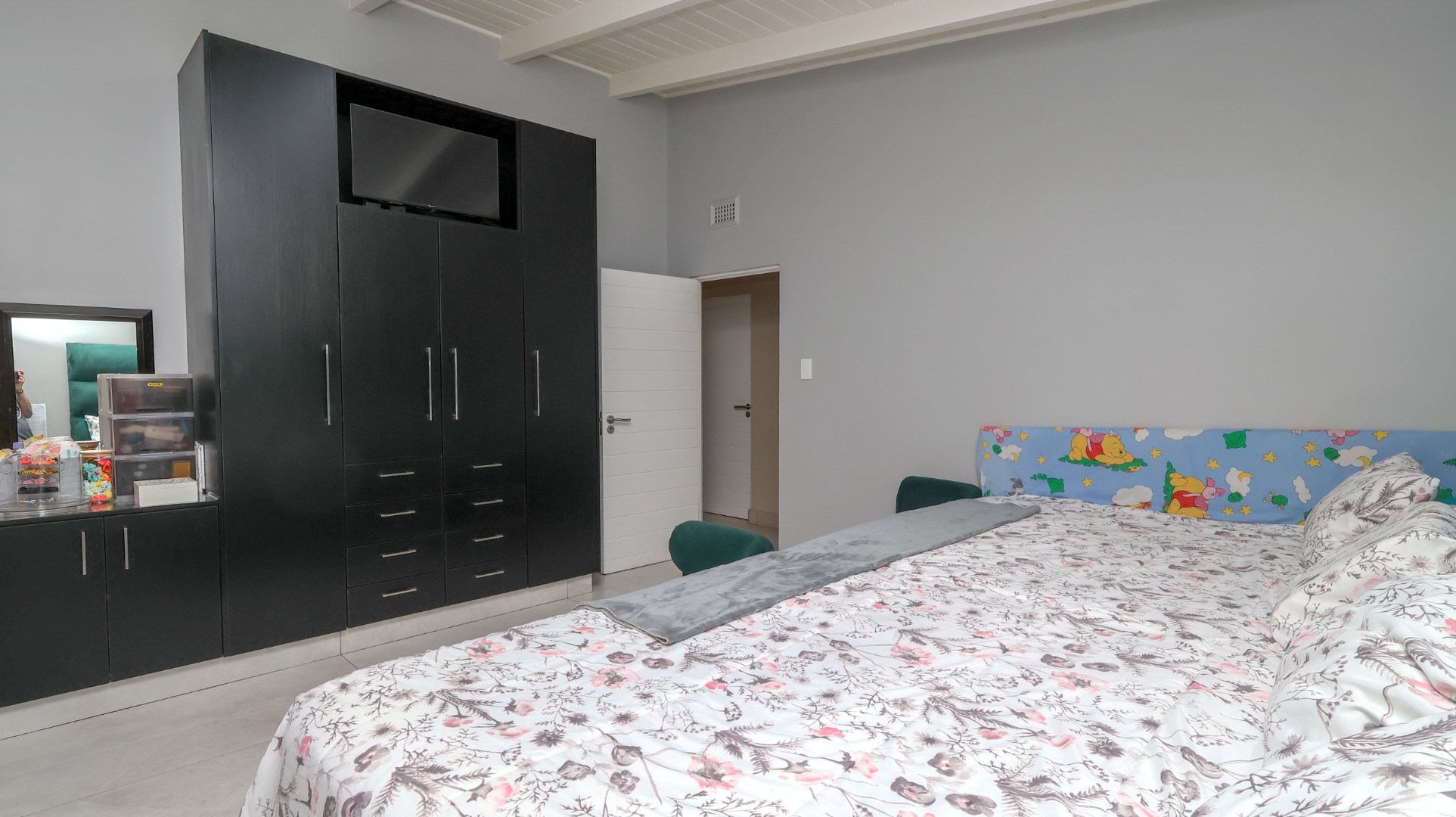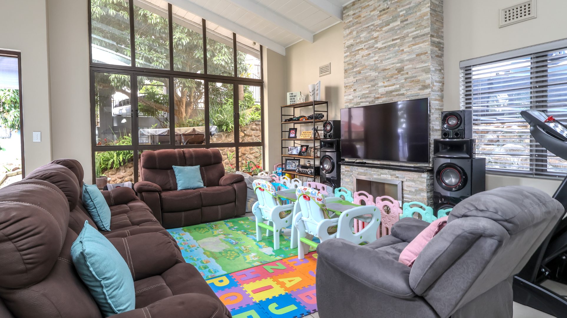 Entertainment Hub: The seamless flow leads to a spacious, undercover entertainment area complete with a built-in braai barbecue. This space is perfectly positioned to overlook the sparkling pool, creating an ideal setting for hosting guests or enjoying family time.