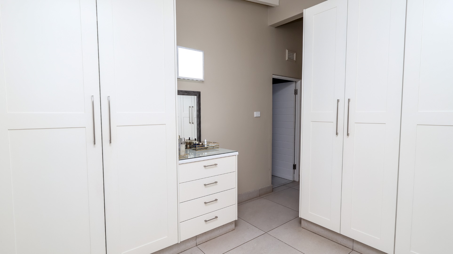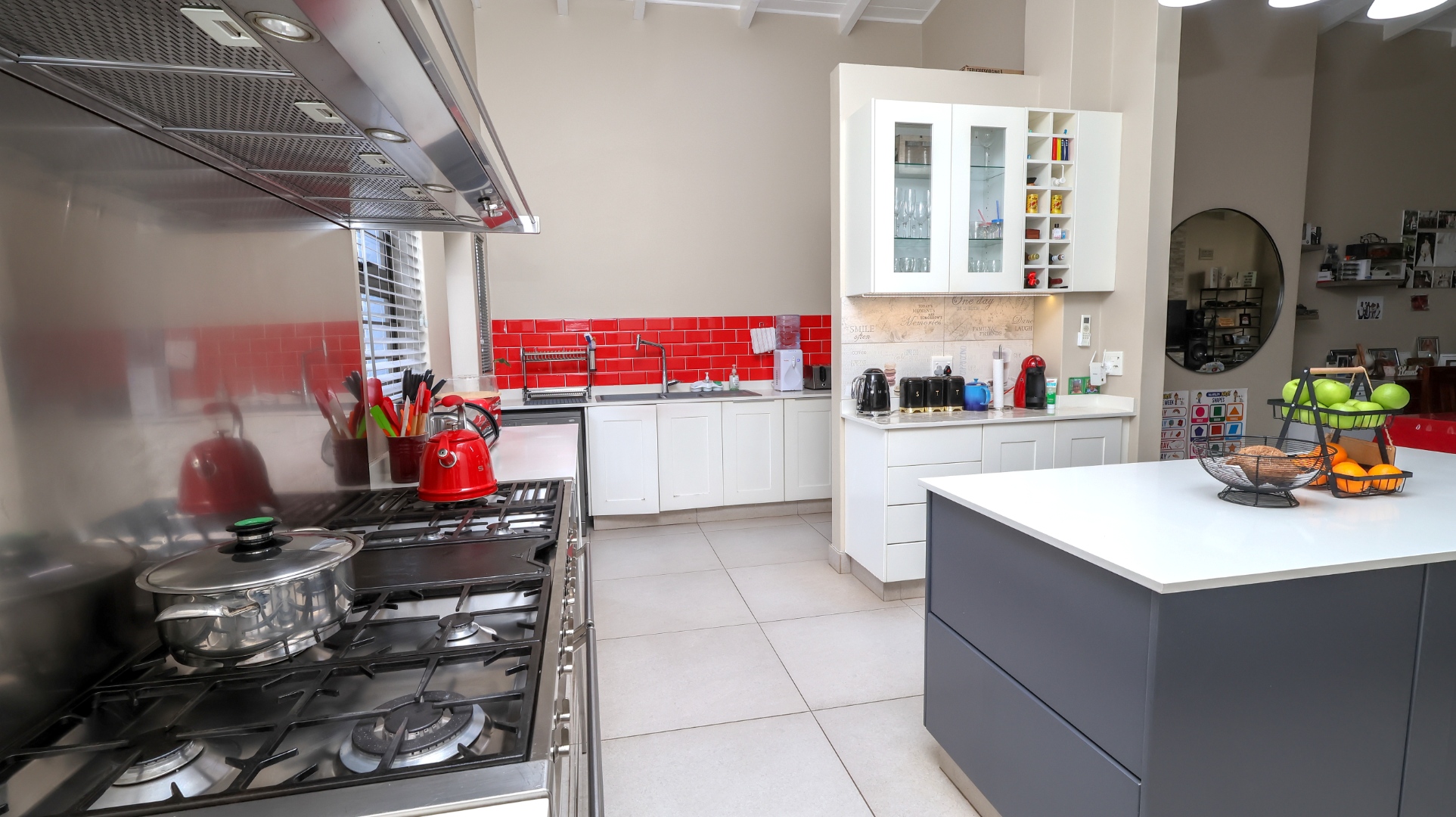 Gourmet Kitchen: A chef's dream, the kitchen is anchored by expansive, pristine Caesarstone countertops and a magnificent double SMEG gas stove. A generous separate scullery ensures the main kitchen area remains clutter-free and pristine, offering additional storage and appliance space.