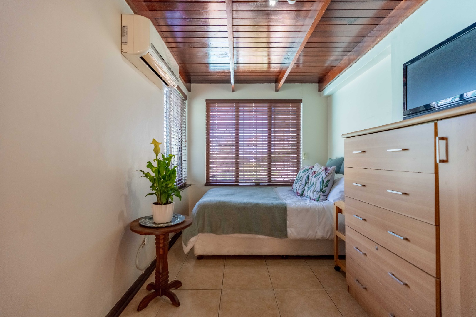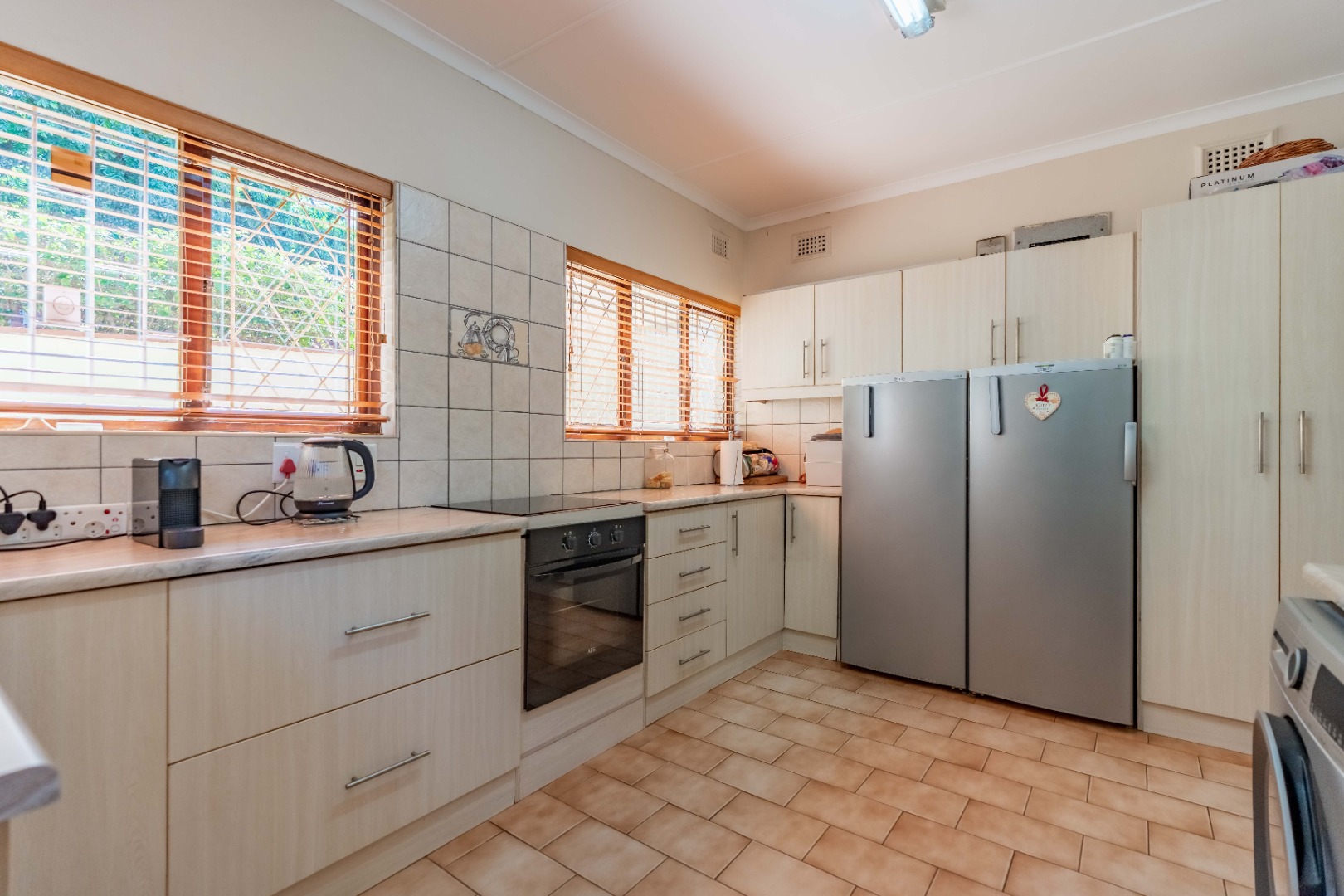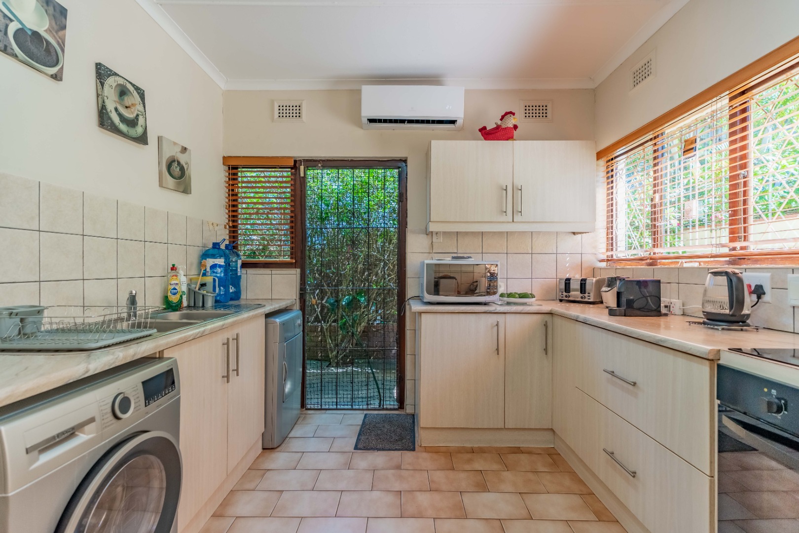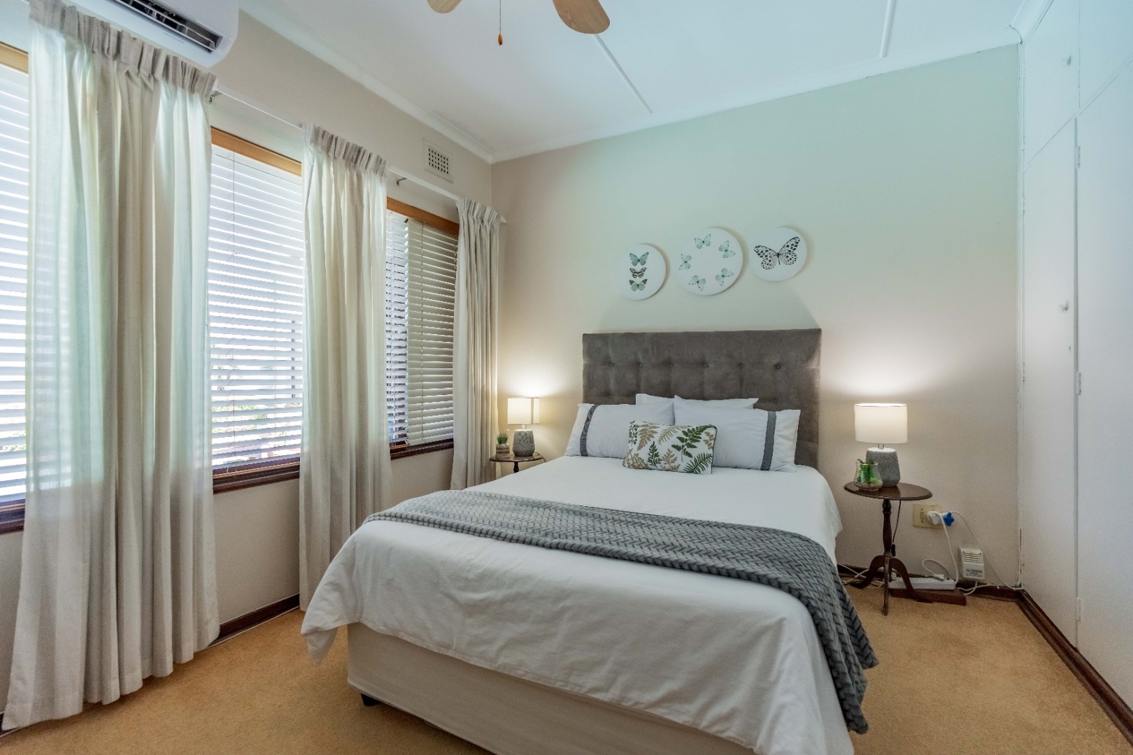 An additional entertainment room offers extra space for family gatherings or relaxed evenings with friends. The home is set in a private garden with a swimming pool, ideal for enjoying Durban’s warm climate.