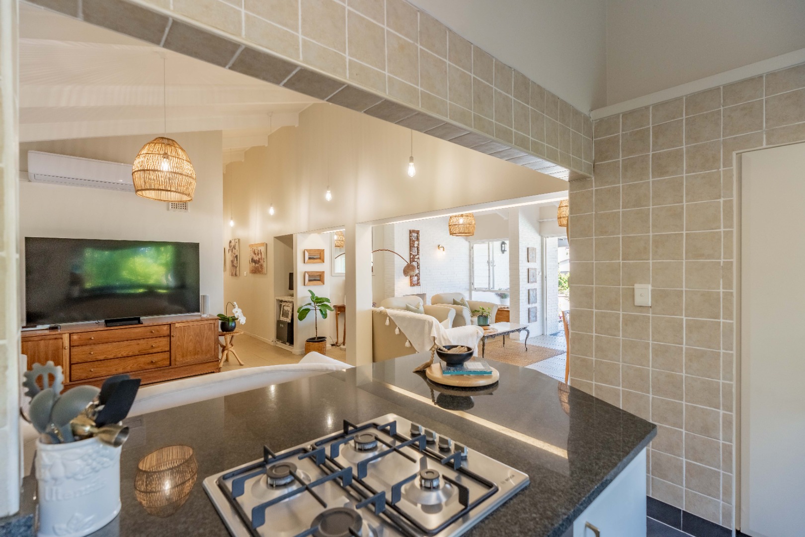The gourmet kitchen is the heart of this home, elegantly fitted with granite countertops, a 4 plate gas stove, and undercover oven. Even here, you’re treated to glimpses of the sea, a gentle reminder of the coastal beauty that surrounds you.
