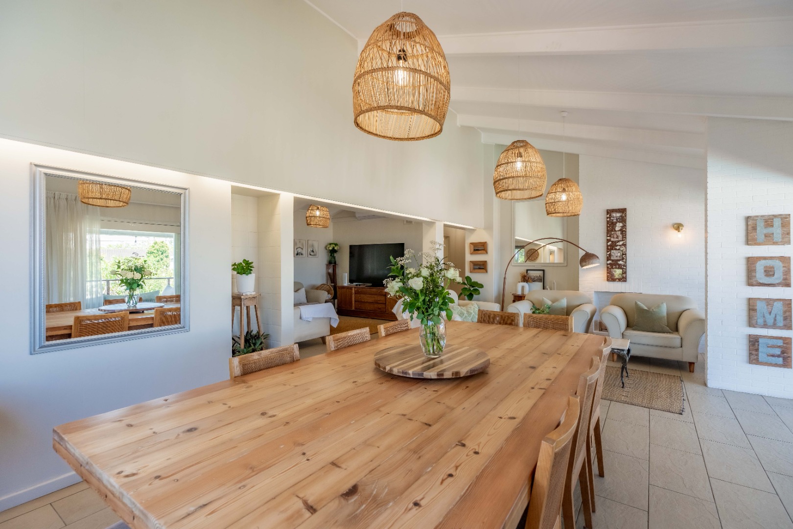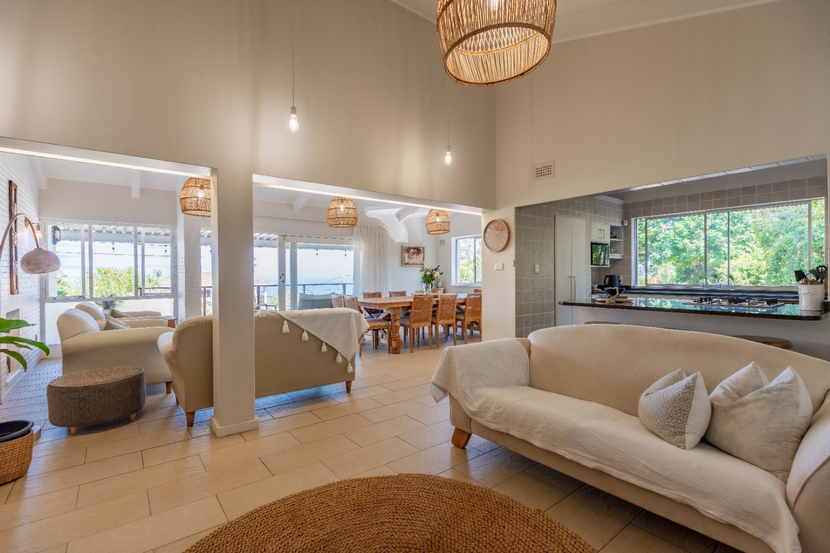An open-plan flow connects the formal lounge, TV lounge, and dining area, large enough to host a 10-seater suite with ease. These expansive living spaces open seamlessly onto a decked verandah, where panoramic sea views provide the perfect backdrop for entertaining or unwinding in peace.