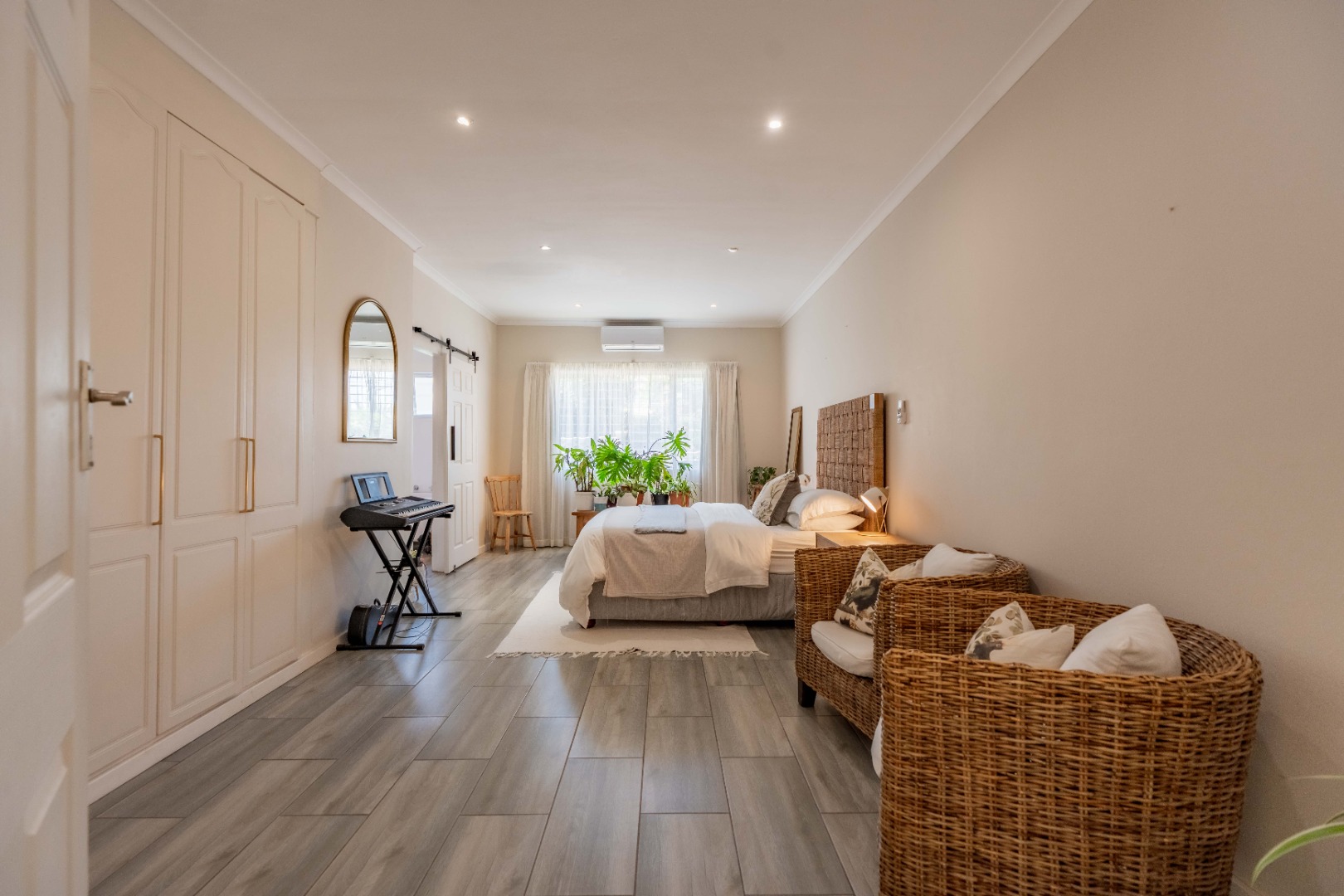 Outside, the manicured garden embraces a pristine pool, creating a serene private retreat. A double automated garage, ample visitor parking, air conditioning throughout, JoJo tank with pump, CCTV security, and mobile inverter complete this picture of effortless luxury and convenience.