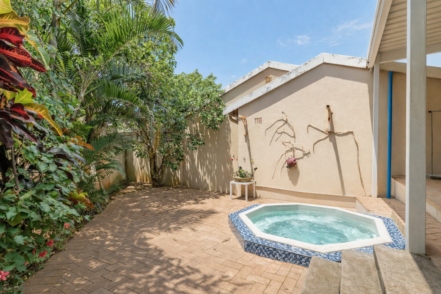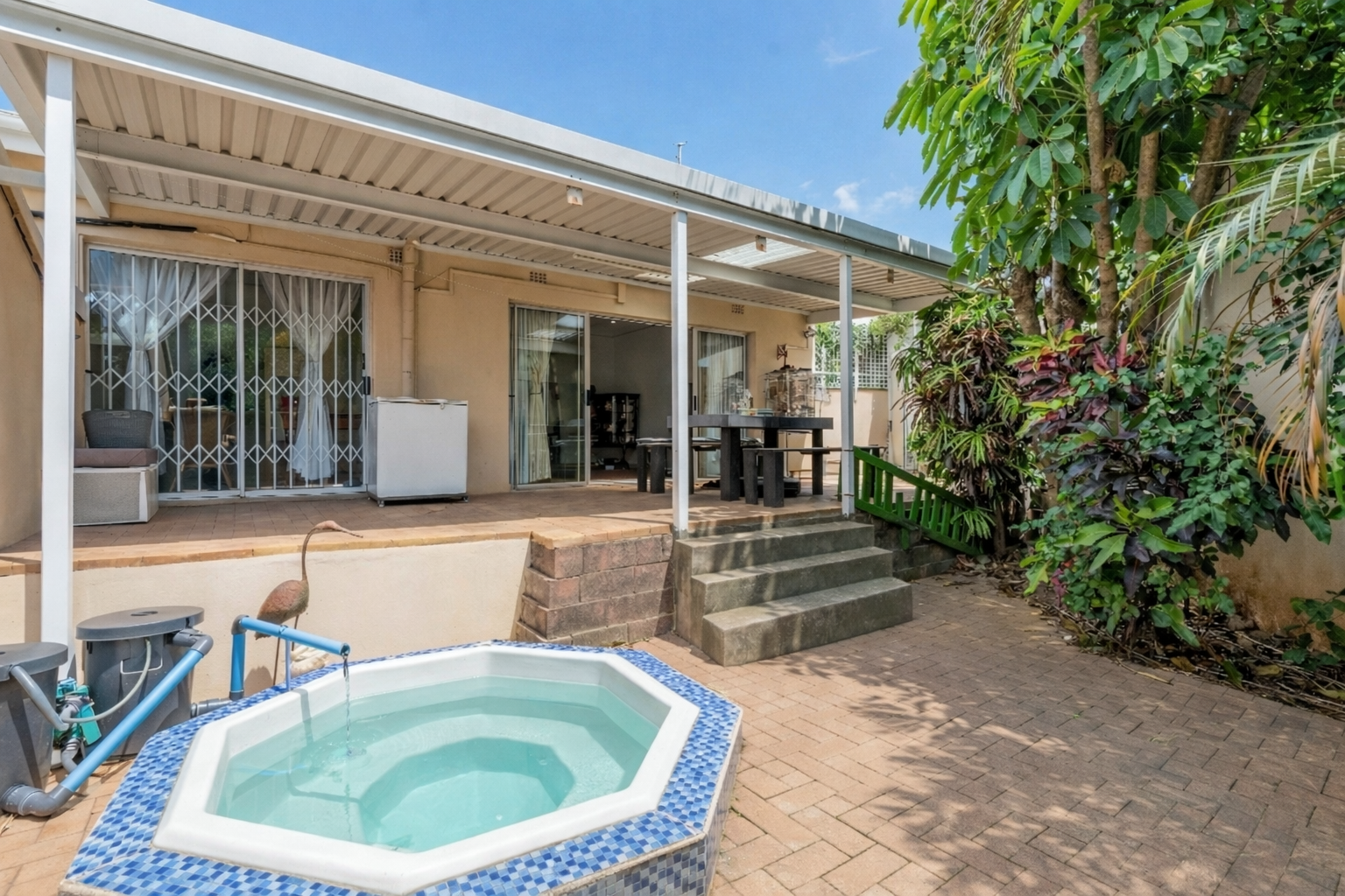 Enjoy seamless indoor-outdoor flow through sliding doors leading to a private, covered patio. The paved backyard offers a low maintenance outdoor oasis, complete with a garden bordered by mature tropical-like foliage for privacy. A single garage and an additional parking space, and pets are allowed with permission from the body corp.