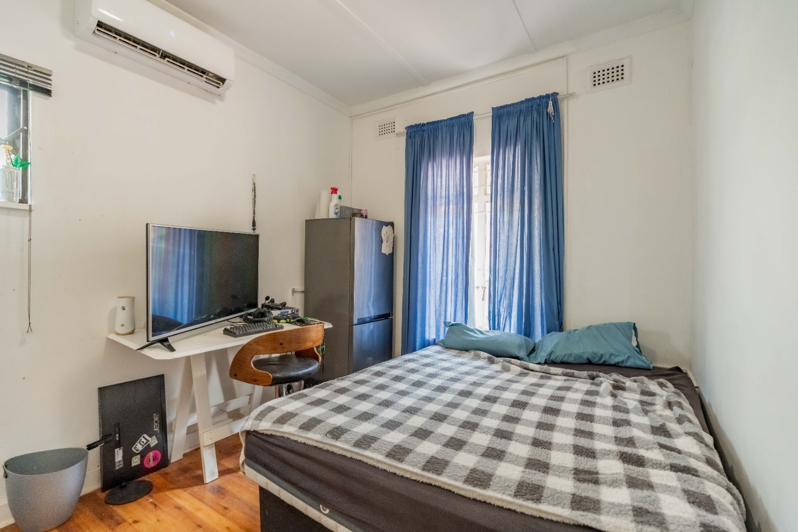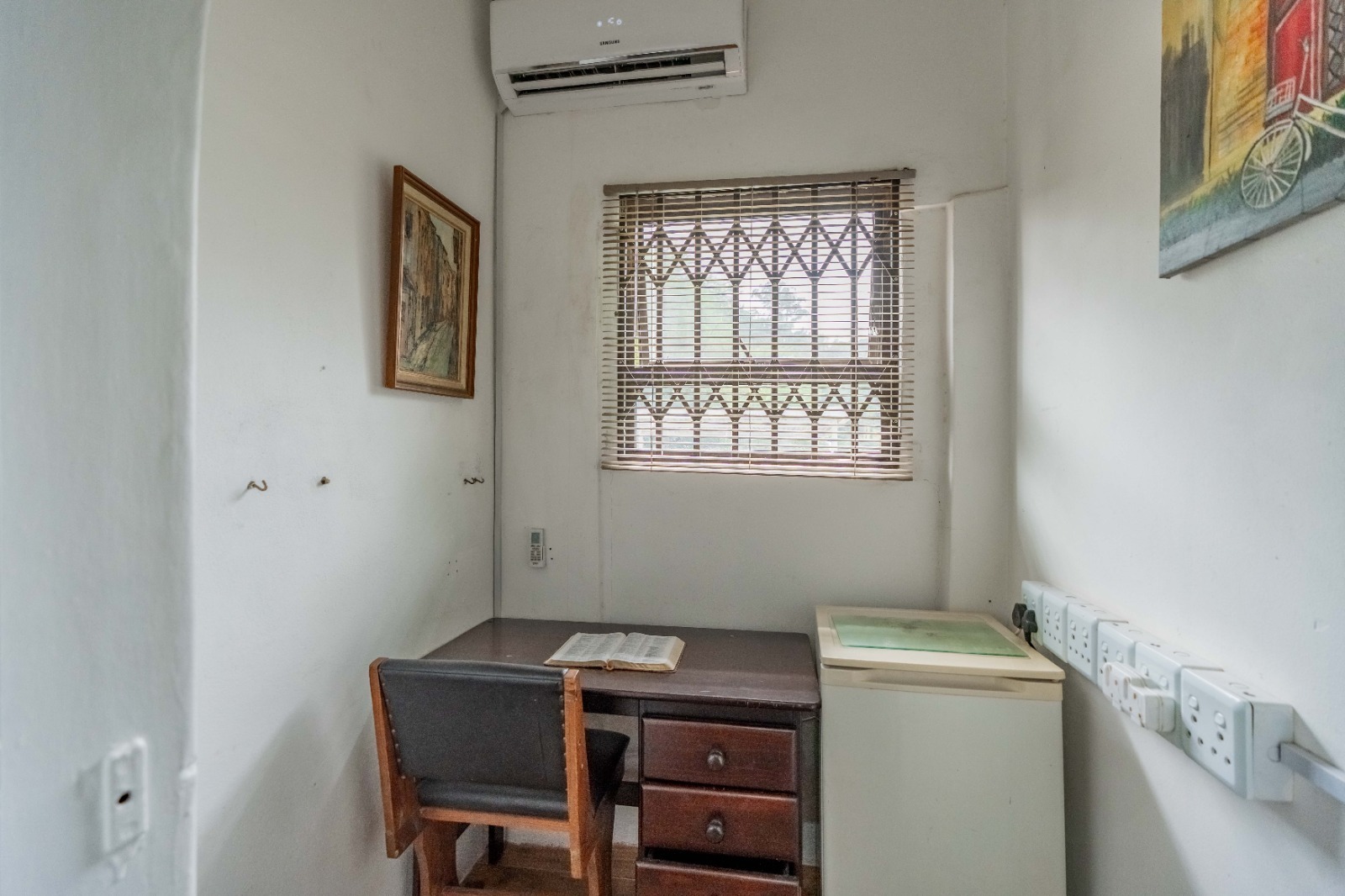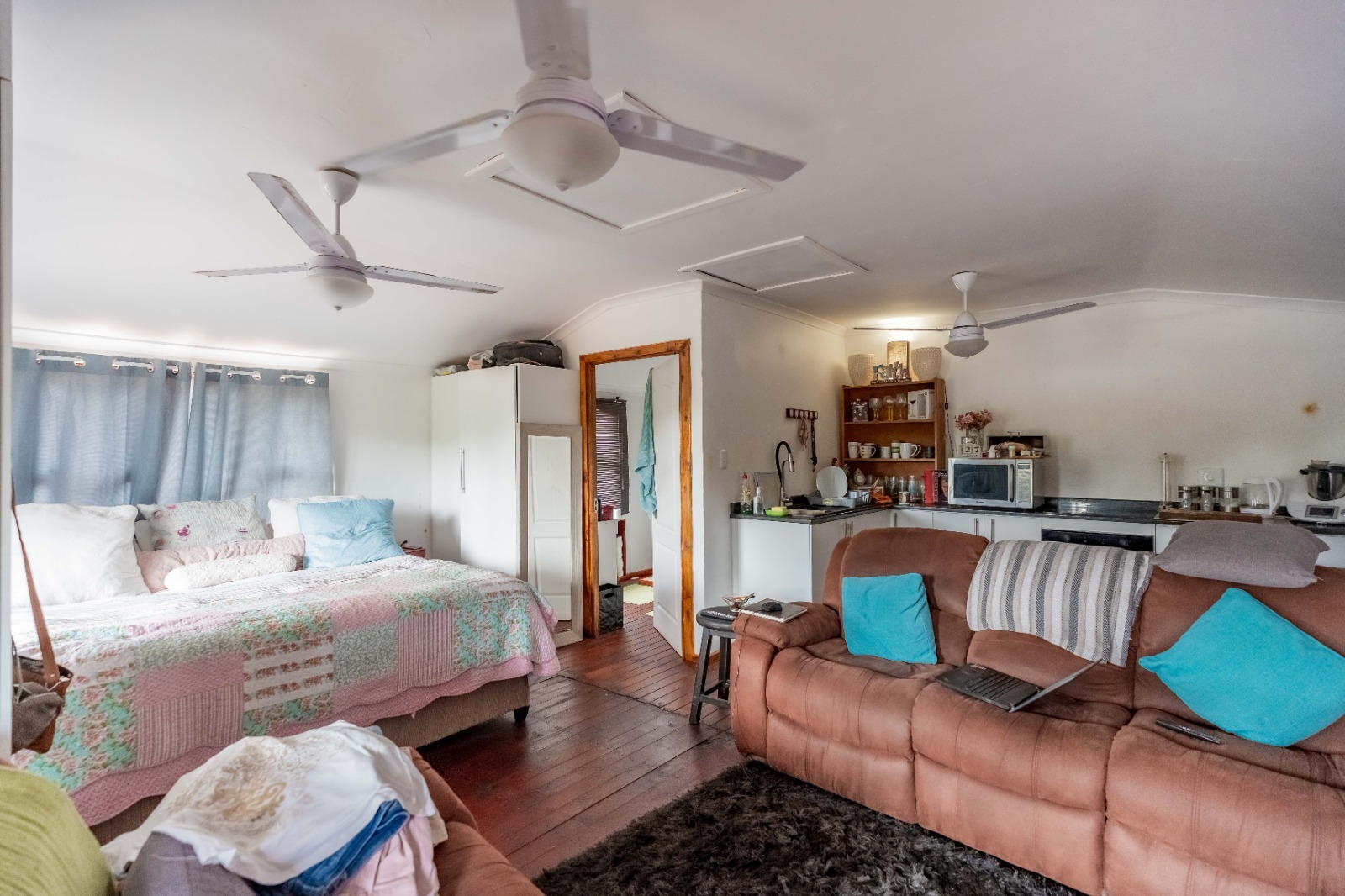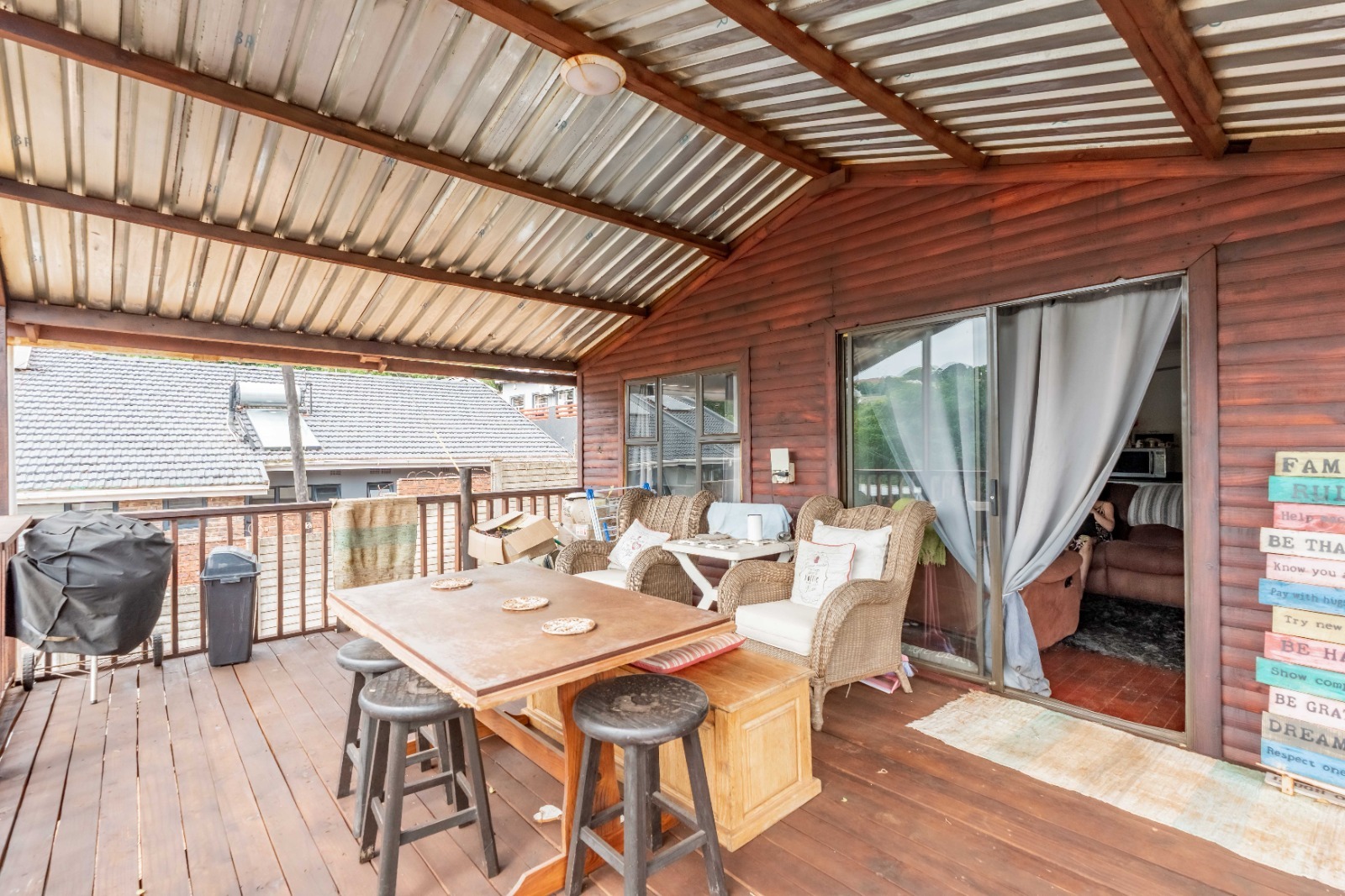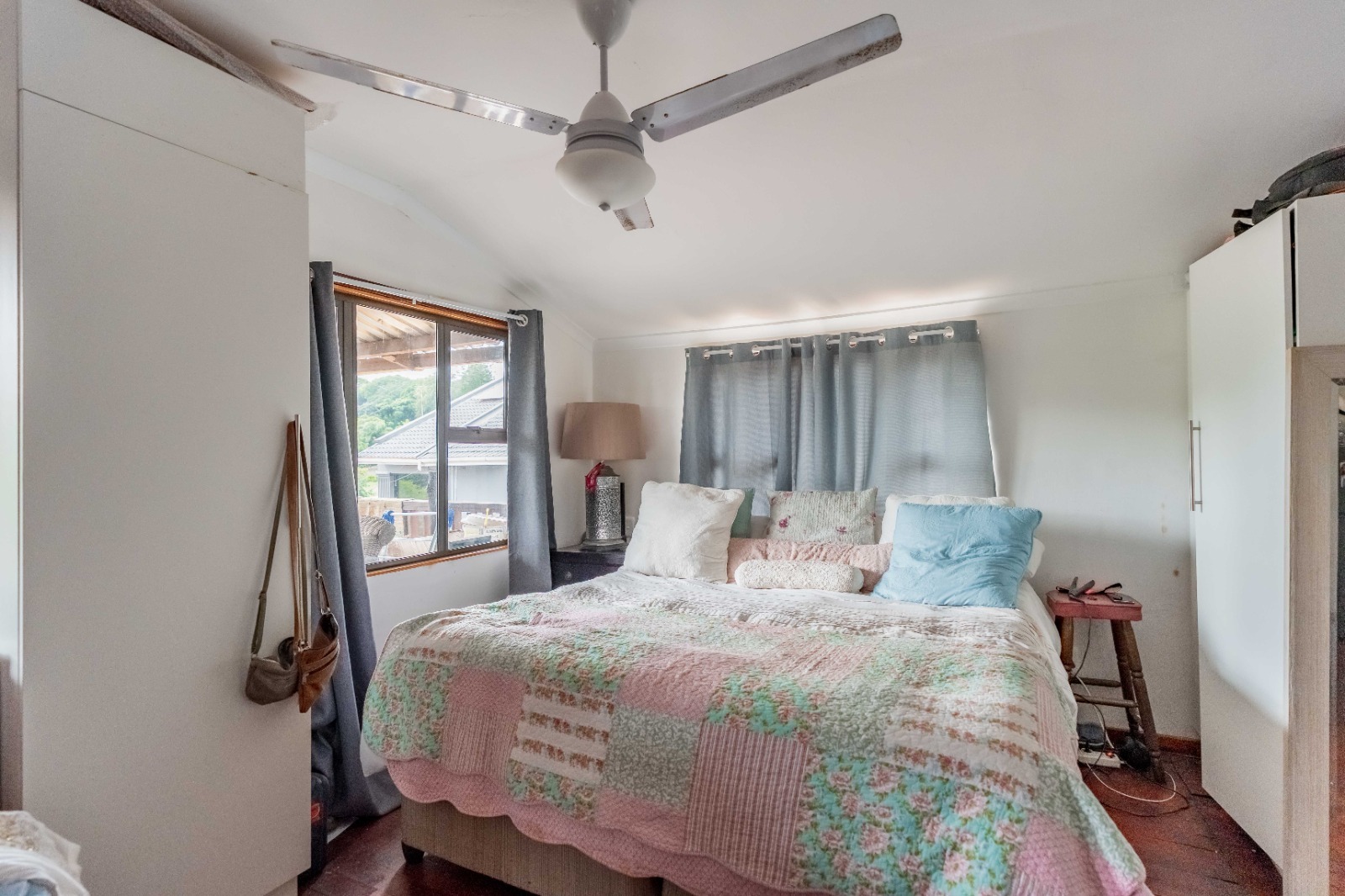 The main house offers 5 bedrooms and a bathroom featuring a shower with a separate toilet. The lounge is currently being utilized as a 5th bedroom, neatly divided with dry walling, offering flexibility depending on your needs.