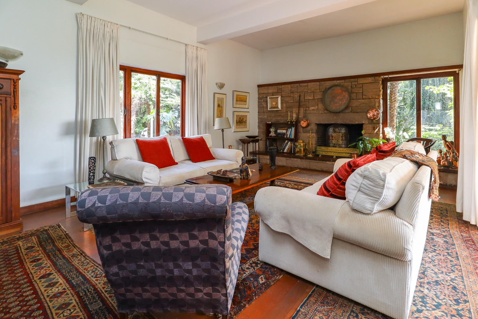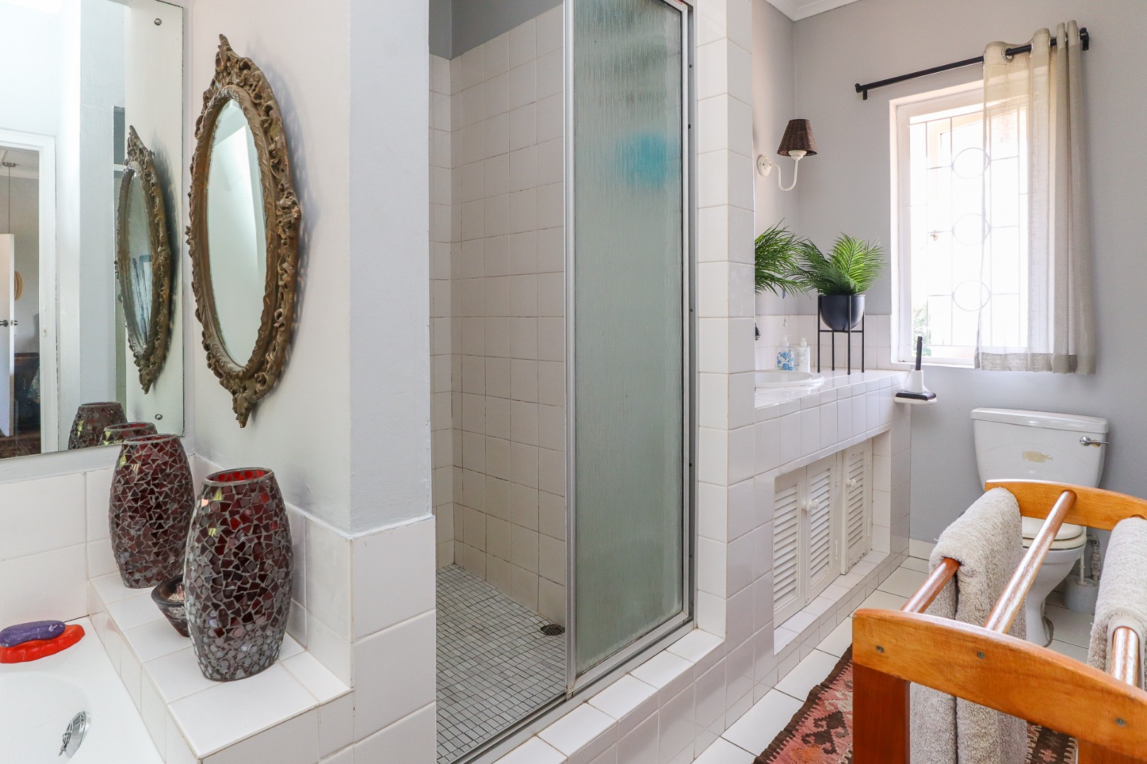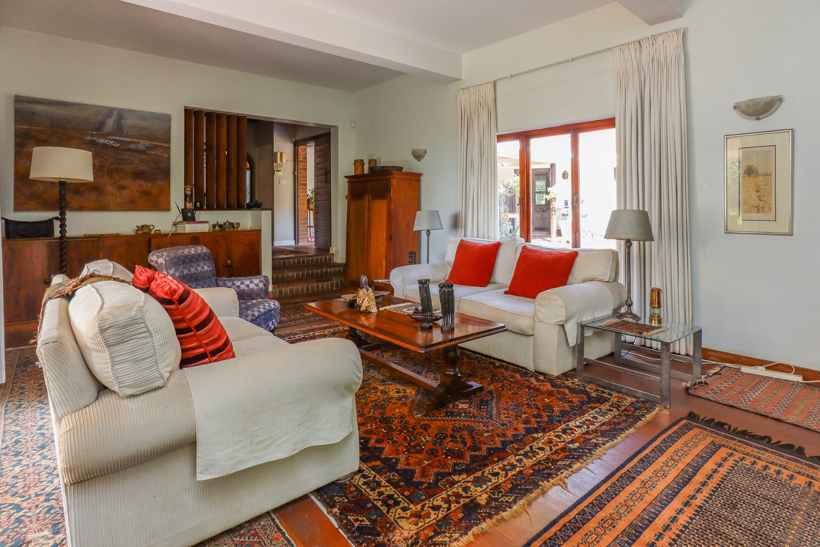 The main home is an elegant masterpiece reminiscent of a bygone era. It compromises of five bedrooms, four bathrooms, a study, lounge, large dining room and two independent, income-generating flats, both with separate living spaces and en-suite bathrooms. Additionally, there are staff quarters, a large swimming pool and entertainment area and a beautiful courtyard to add to the outdoor space.