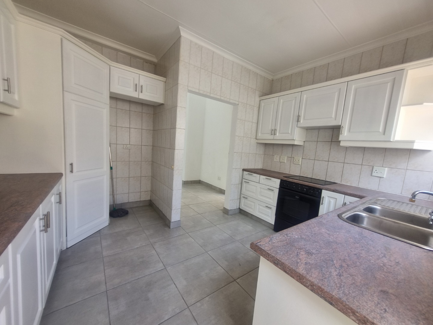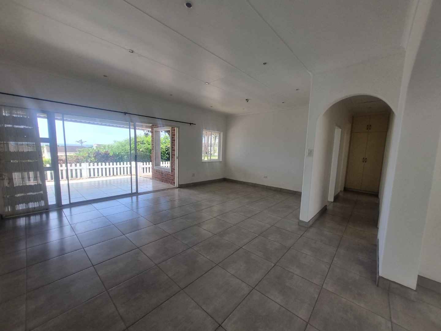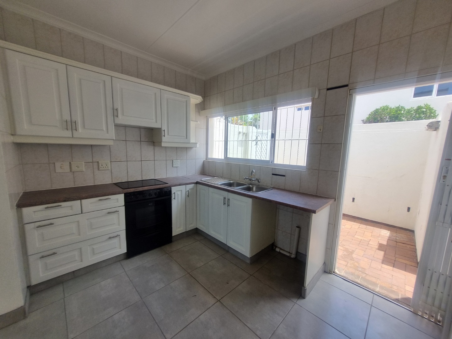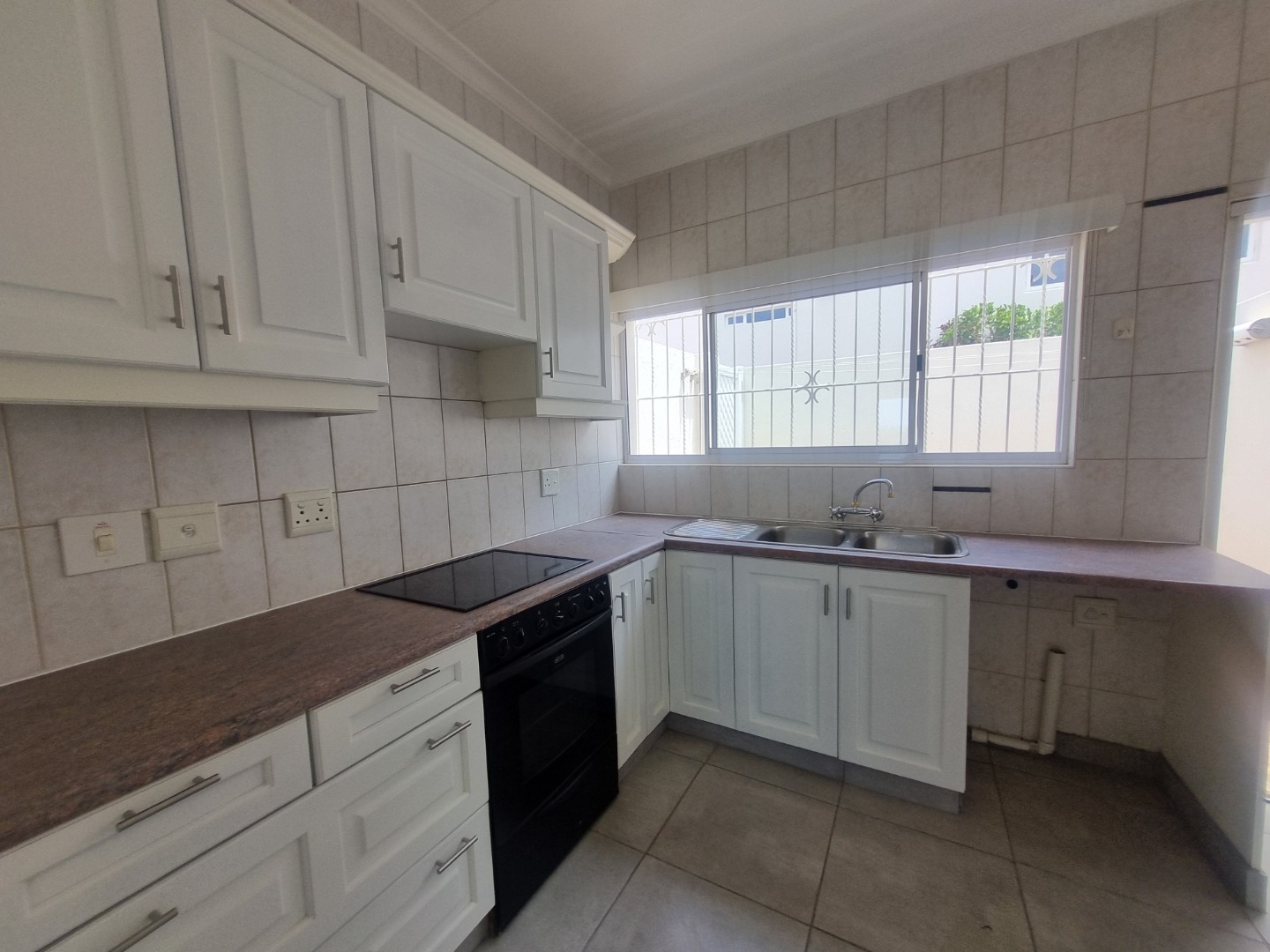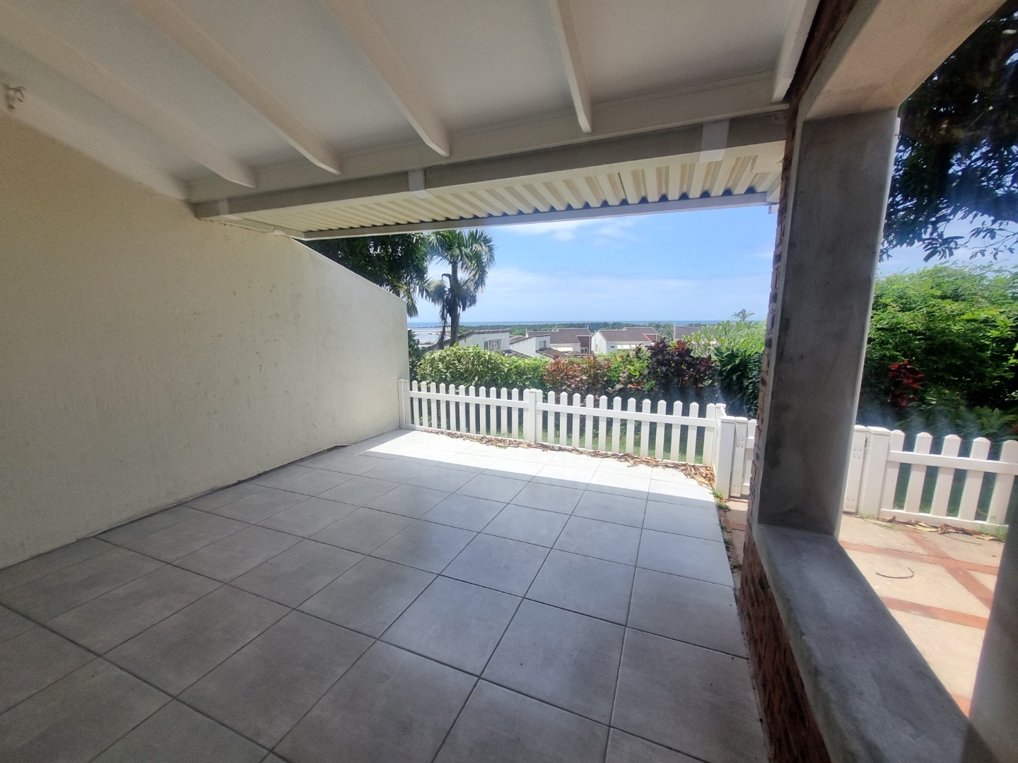 The spacious, well-equipped kitchen which is busy being renovated, offering generous cupboard space, flows effortlessly into the open-plan dining and lounge area that is being re-tiled throughout. Glass sliding doors lead you onto a covered patio, where you can soak up the lush complex gardens and those beautiful sea views that never get old.