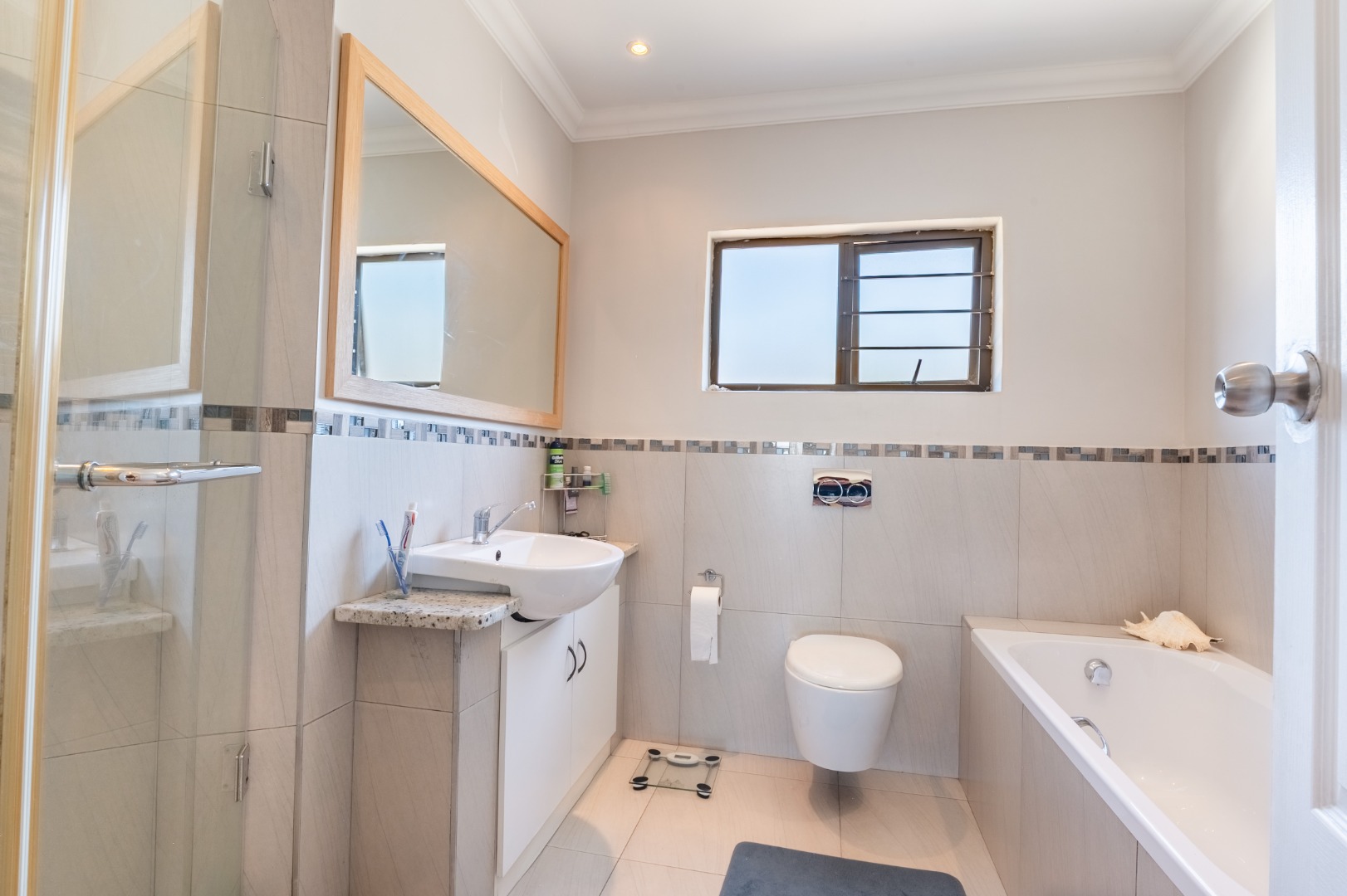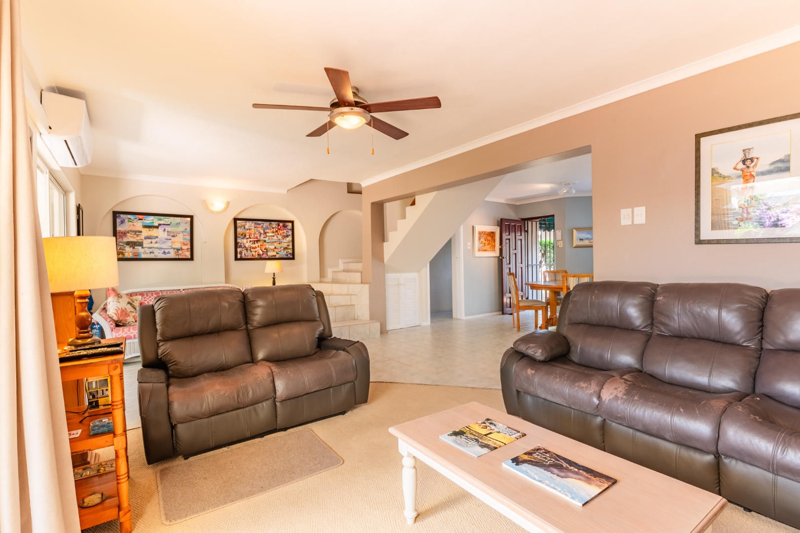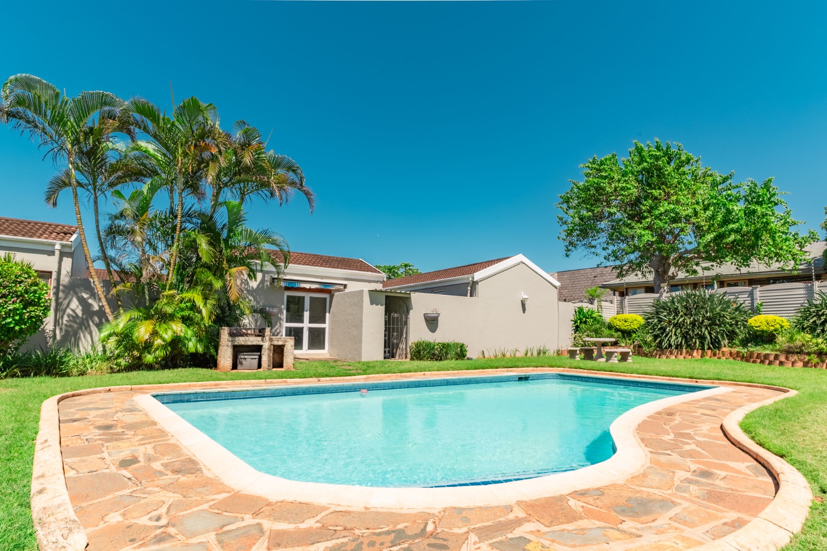 Discover this inviting three-bedroom, two-and-a-half-bathroom residence located in the desirable suburban area of Prospect Hall, Durban North. This modern home, spanning 166 sqm, offers comfortable family living within a secure gated community, providing peace of mind and a tranquil environment.