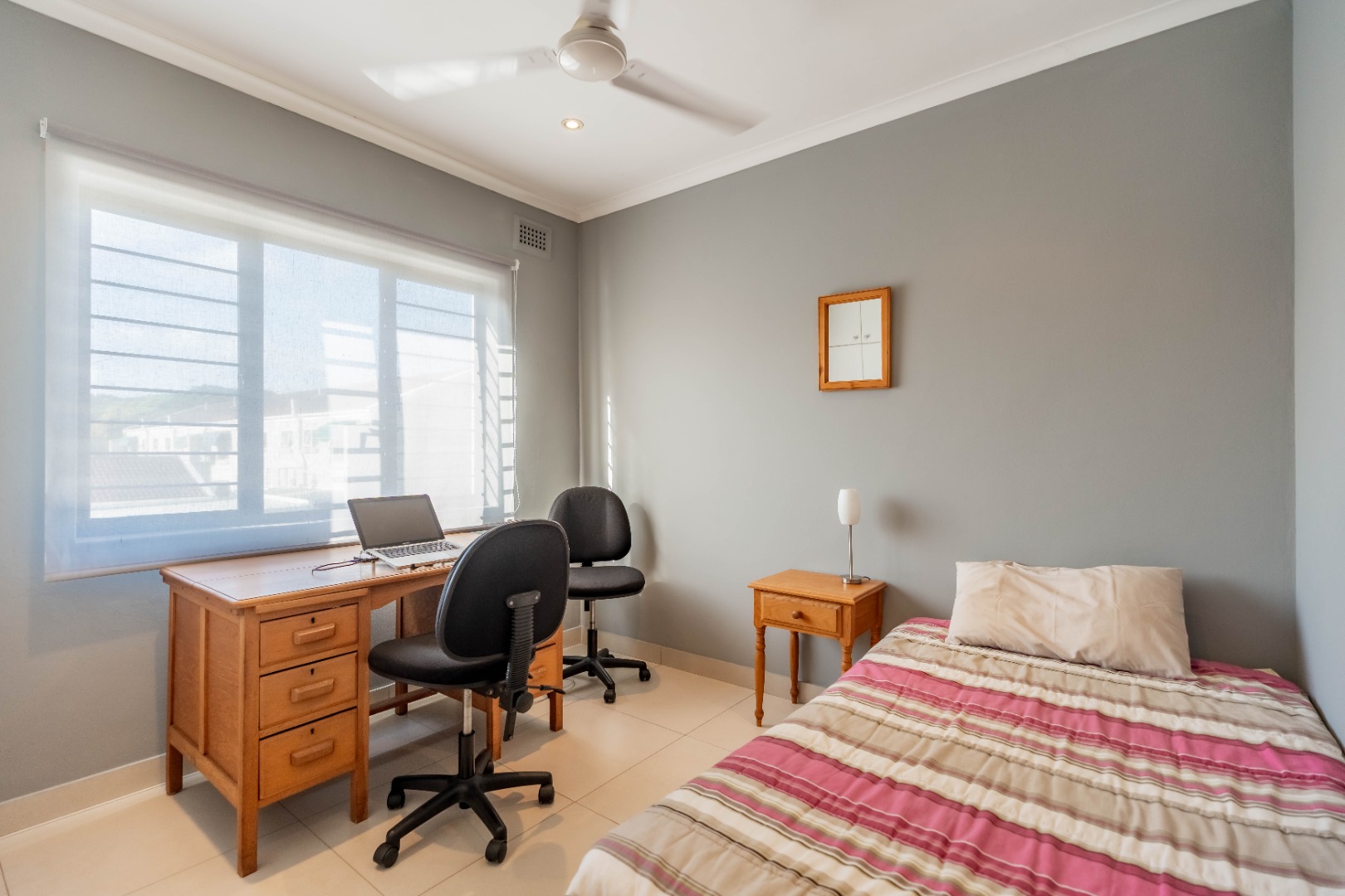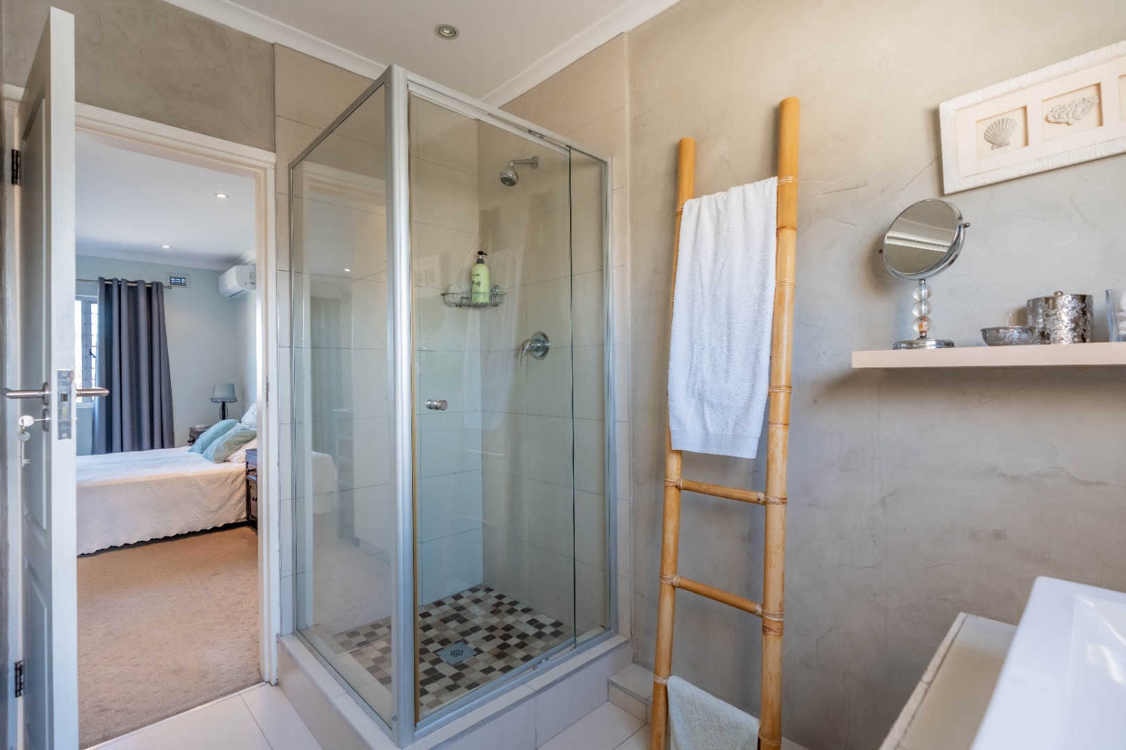 All three bedrooms are well-sized, with ceiling fans throughout and air-conditioning in the main bedroom for year-round comfort. The main bedroom includes built-in cupboards and a private en-suite bathroom with a shower, while a second bathroom services the rest of the home.