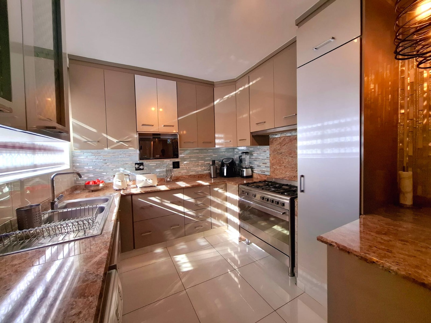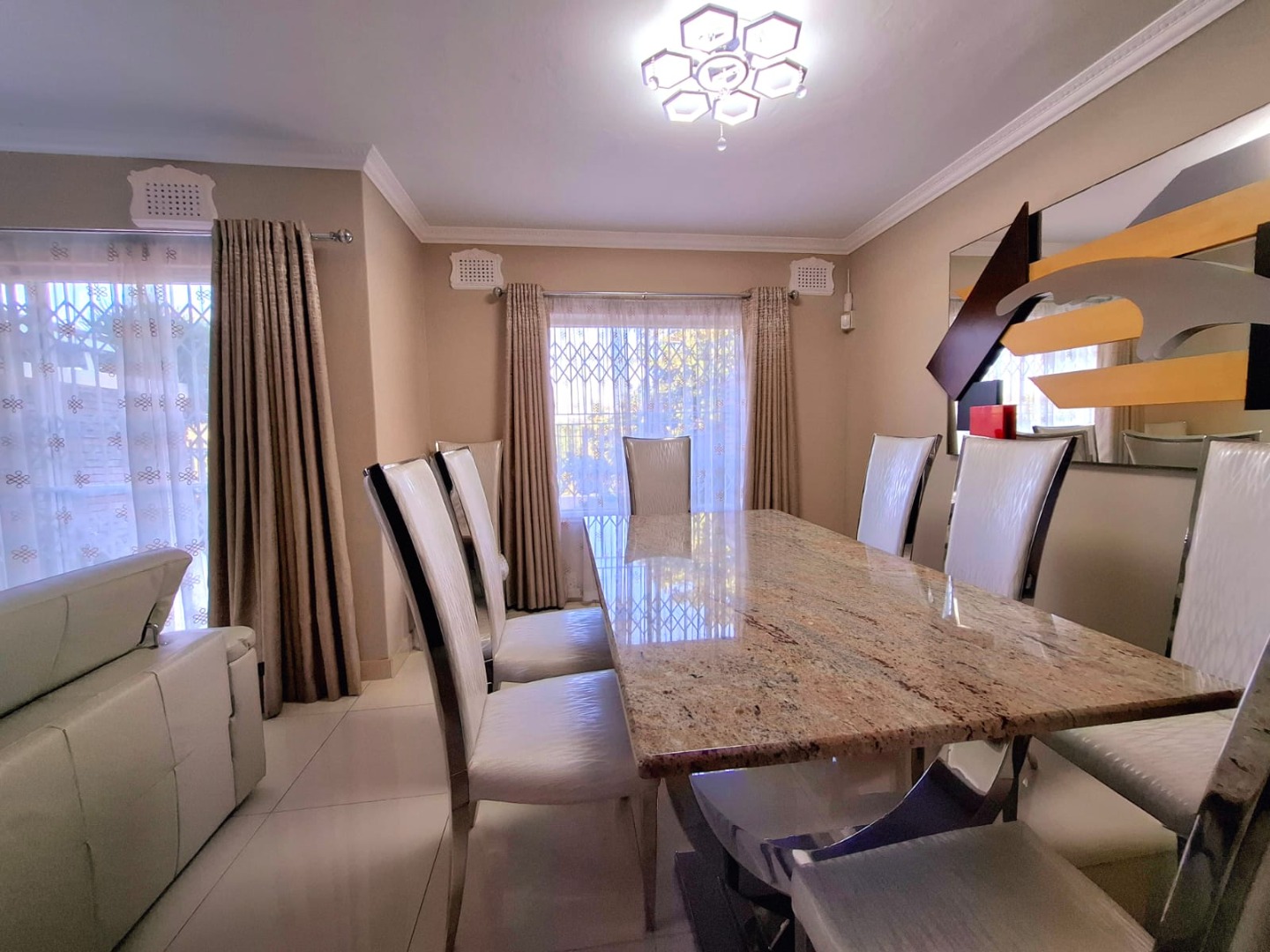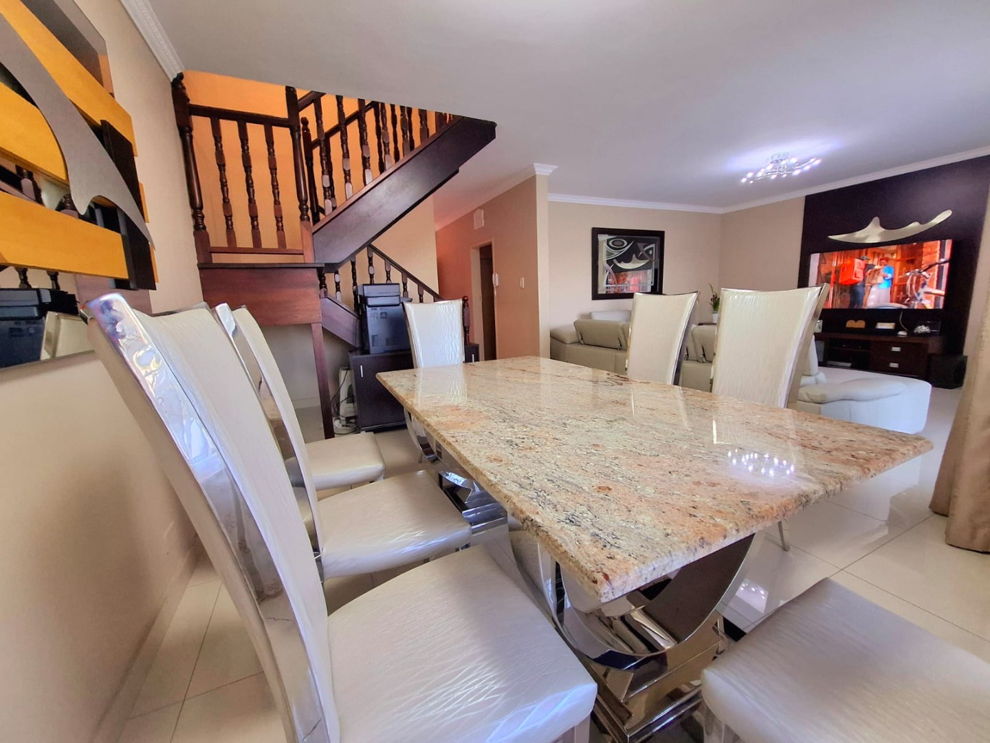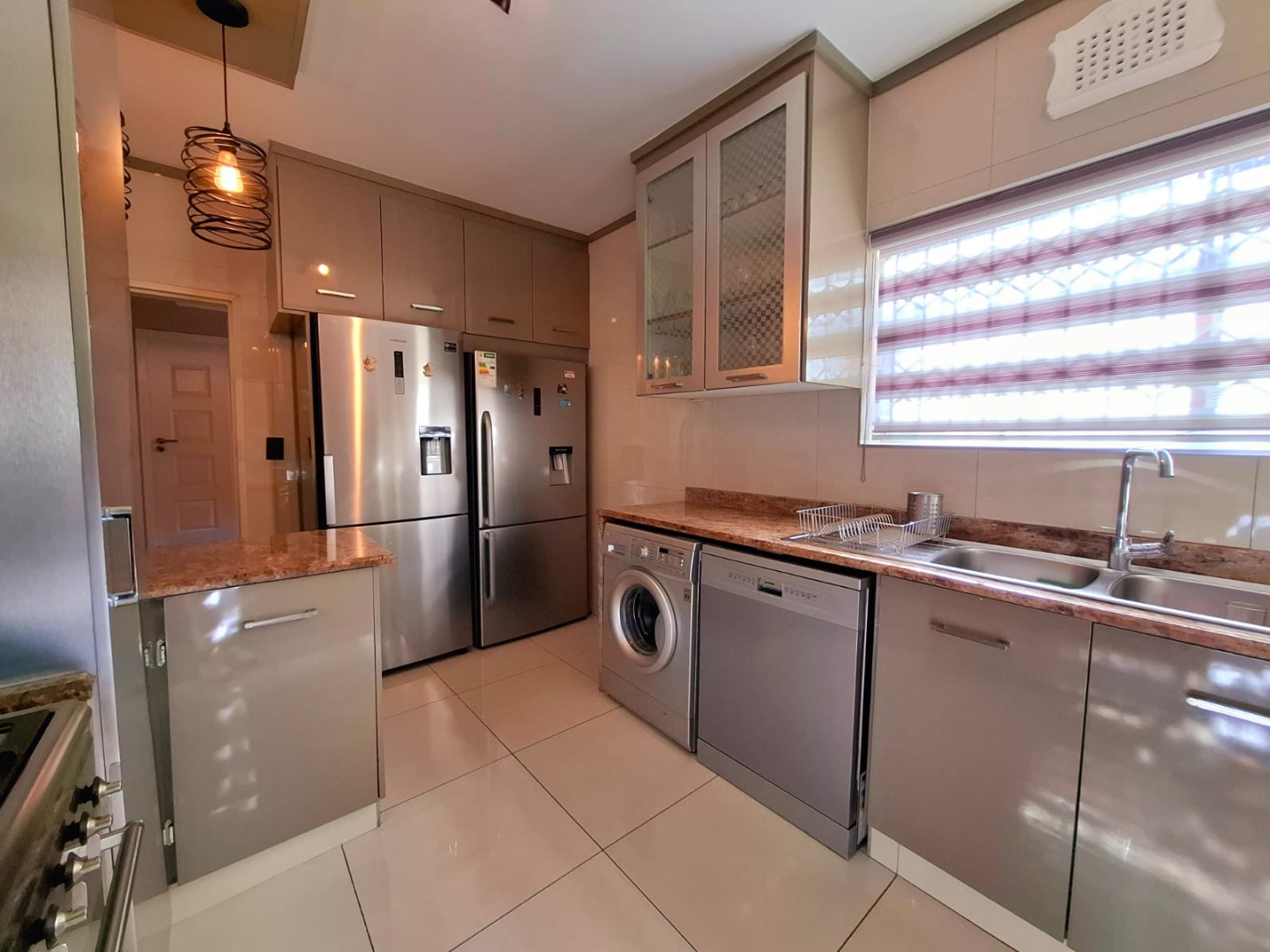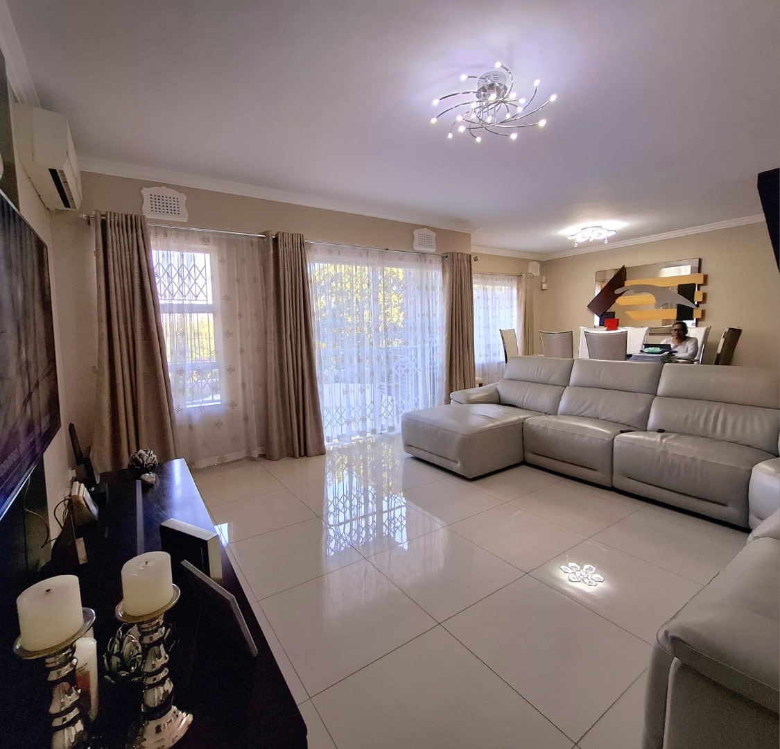 This spacious three-bedroom, two-bathroom townhouse is ideally located in the sought-after suburb of Umgeni Park, offering a blend of modern comfort, style, and stunning sea and river views. Recently renovated, the home features a beautifully designed kitchen fitted with a SMEG gas stove, perfect for both everyday cooking and entertaining. The ground floor offers an open-plan layout where the living and dining areas flow seamlessly into the kitchen, creating a warm and inviting space. A guest toilet adds convenience on this level. Upstairs, you’ll find three generously sized bedrooms, including a master suite that captures elevated views of the ocean and river. The home also includes ample storage, a dedicated laundry area, and a single garage, with extra visitor parking available. The complex is well maintained and home to just 17 units, ensuring a sense of exclusivity and community. Security is excellent, with electric fencing, external beams at the unit, and a night-time patrolling guard on duty from 6pm to 6am. Offering a relaxed coastal lifestyle in a secure and desirable setting, this townhouse is an ideal choice for both families and entertainers alike.