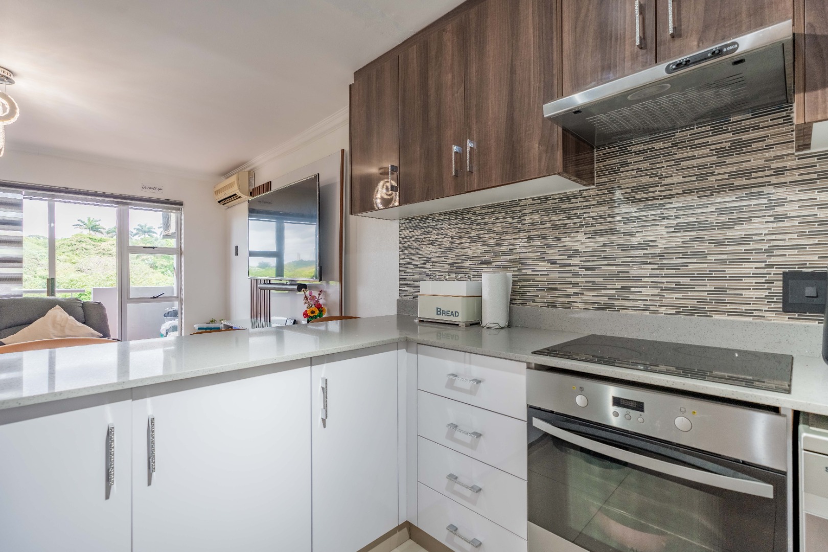 Enjoy three spacious bedrooms with built-in cupboards, three air-conditioners to keep you cool year-round, and a sleek modern kitchen with a glass-top stove. The open-plan living area flows effortlessly onto a balcony with breathtaking views — ideal for relaxing or entertaining.