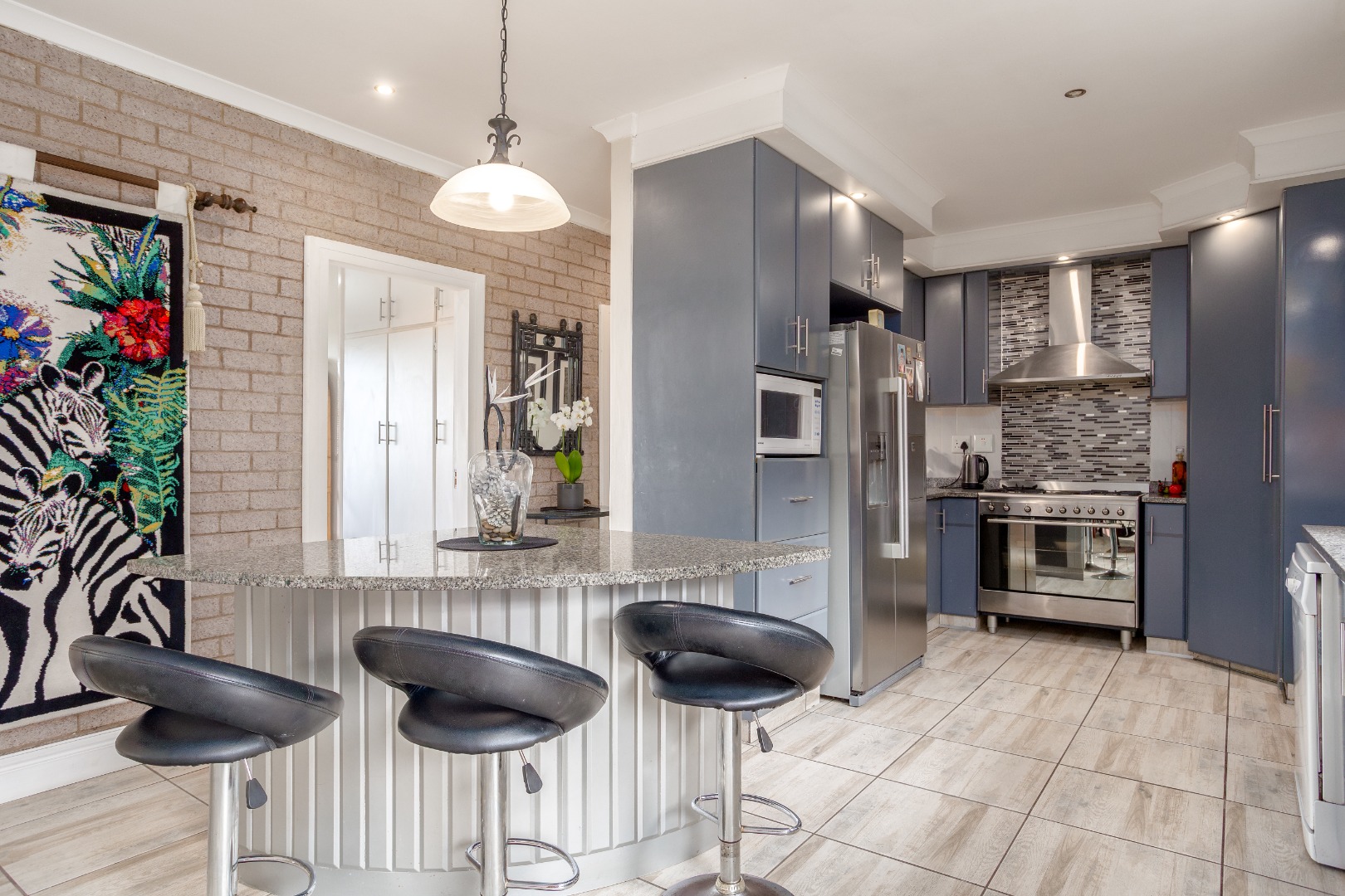 The home is styled with contemporary finishes throughout, including modern flooring, a sleek kitchen complete with a 6-plate gas stove—ideal for entertaining and everyday family meals. There is also a second kitchenette/ scullery should you please, along with a large store room adjacent to the kitchen.