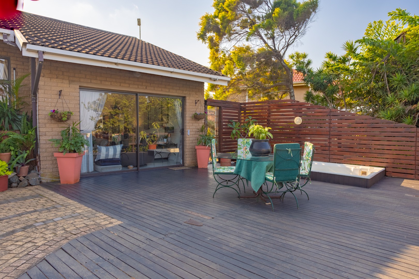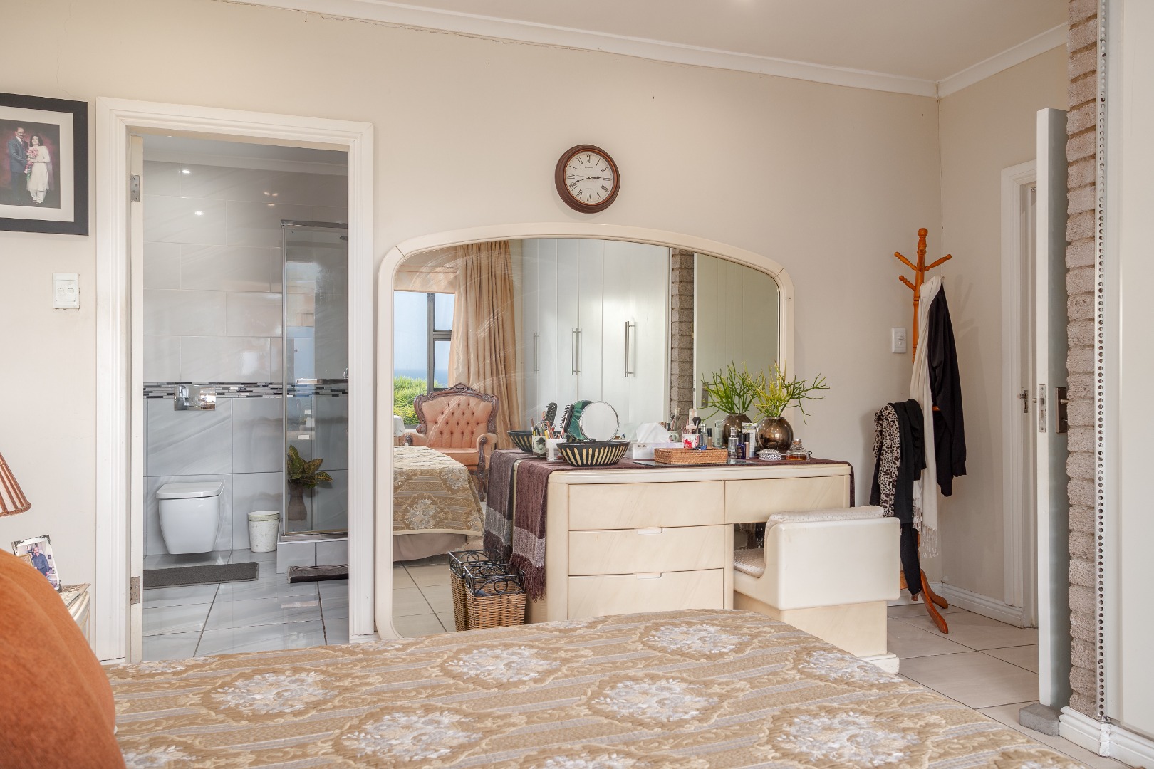 Living spaces are abundant with two lounges, one of which flows seamlessly onto an elevated open deck—perfect for soaking in the views and hosting guests. The large erf allows for potential extensions or outdoor enhancements.