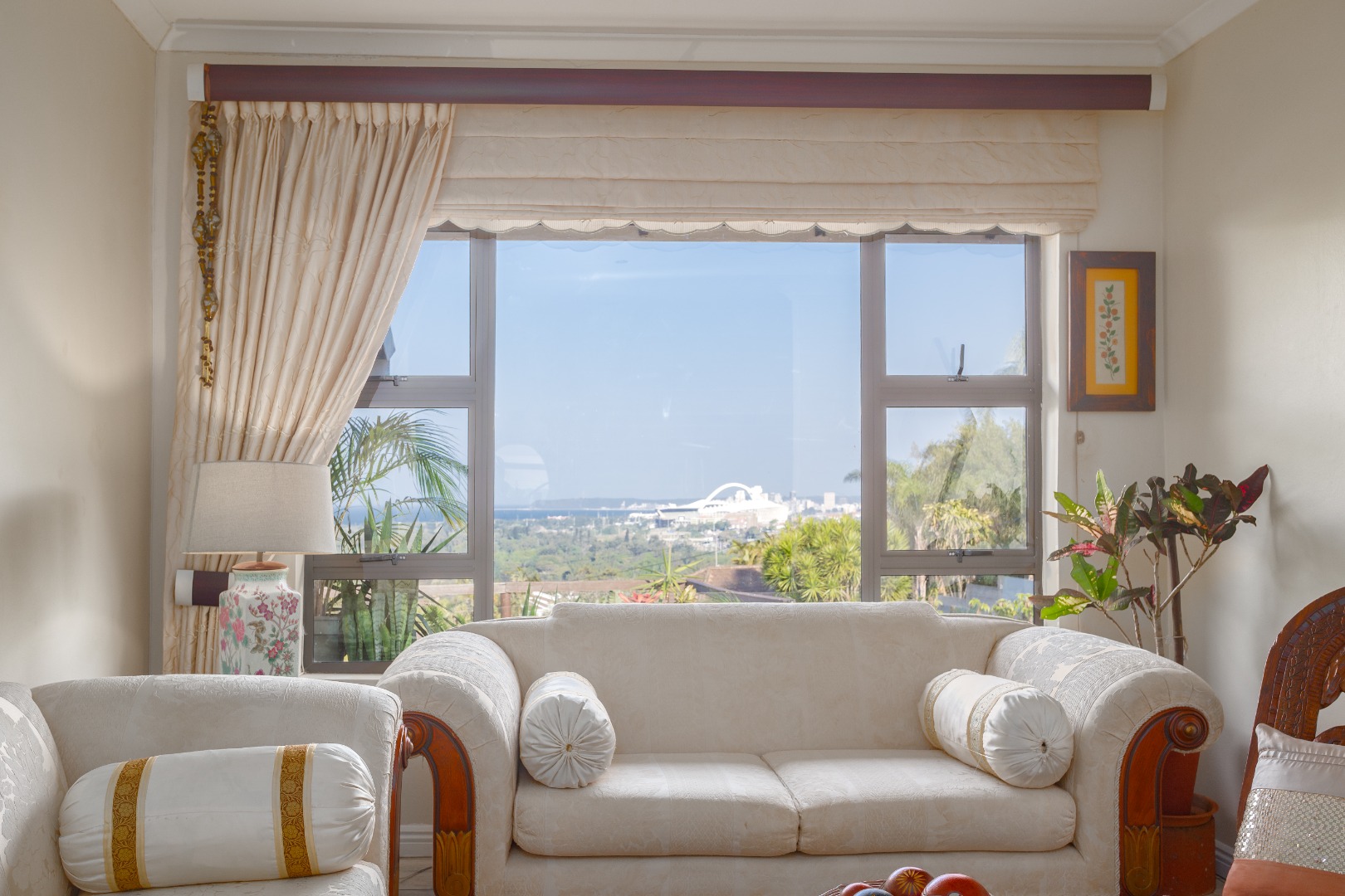Set on a generous plot with lush, tropical, landscaped gardens, the property enjoys panoramic sea and river views right out to the Moses Mabhida Stadium and beyond. The home is alive with the sounds of local birdlife—an everyday treat at your doorstep.