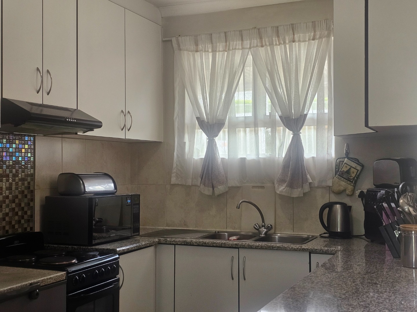 This maintenance free fully tiled home offers, air-conditioned open plan living, lounging and dining amenities with an interleading sun-drenched balcony -ideal for outdoor entertaining and sundowners... overlooking the ETHEKWINI and LIFE HEALTH Hospitals and Riverhorse Valley. Step into a custom renovated kitchen - with extended granite kitchen island offering breakfast and dining nook seating, including the stove.
