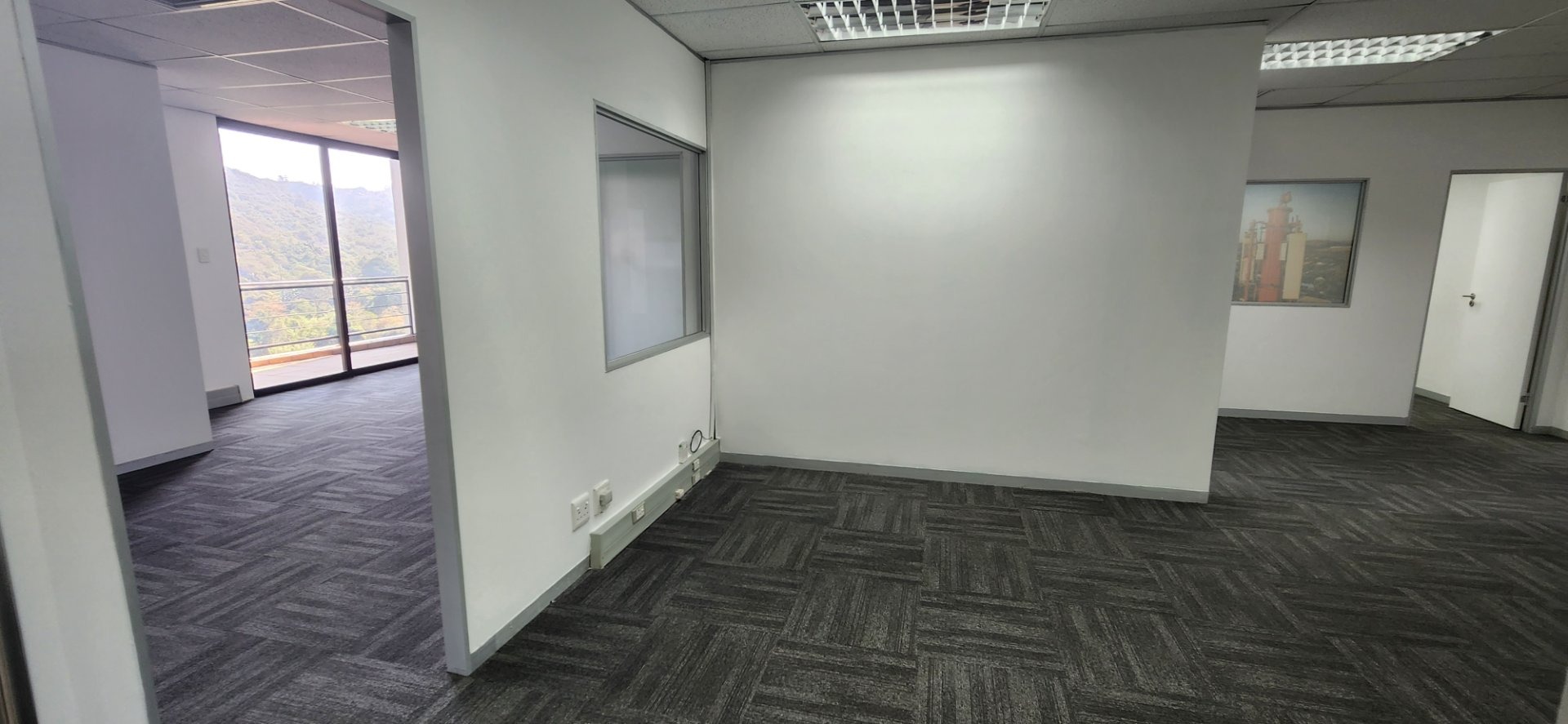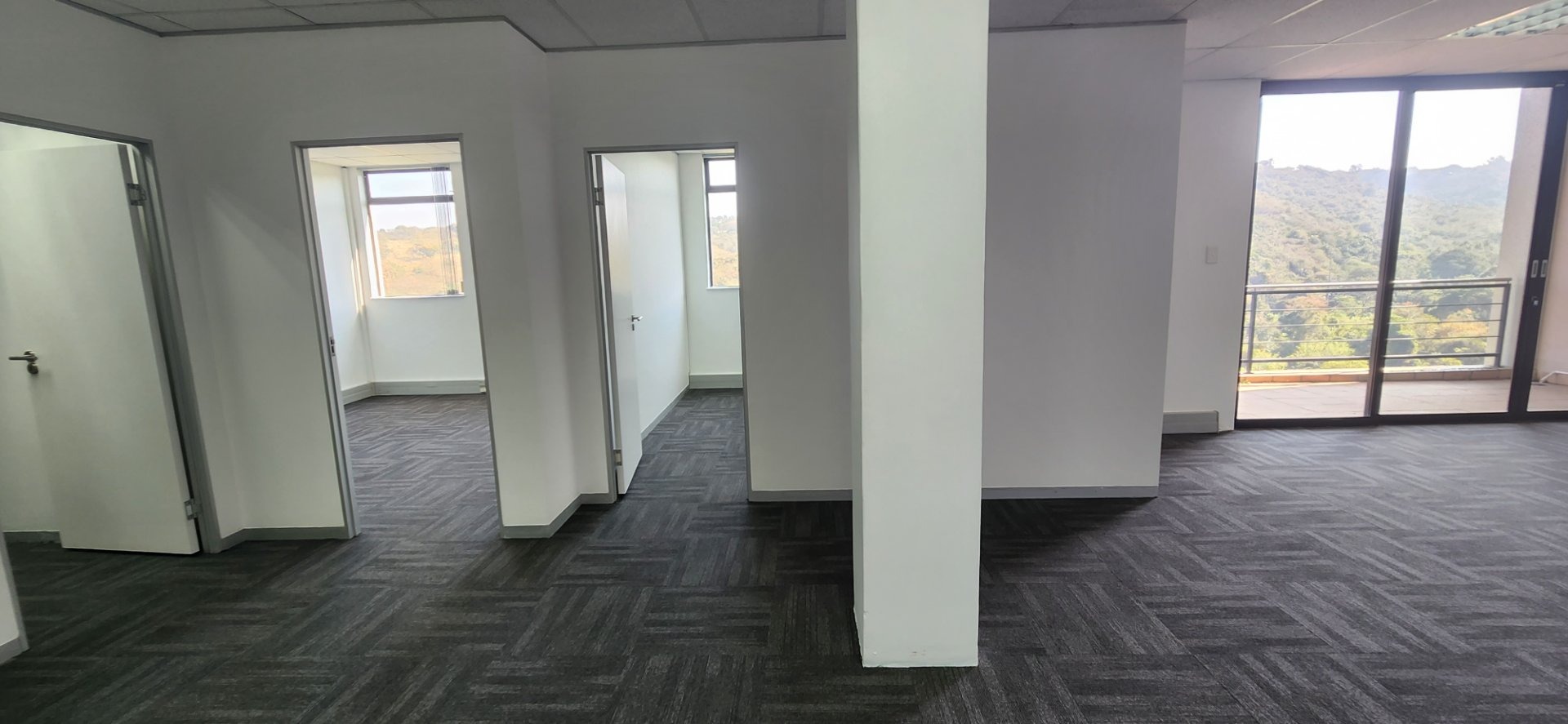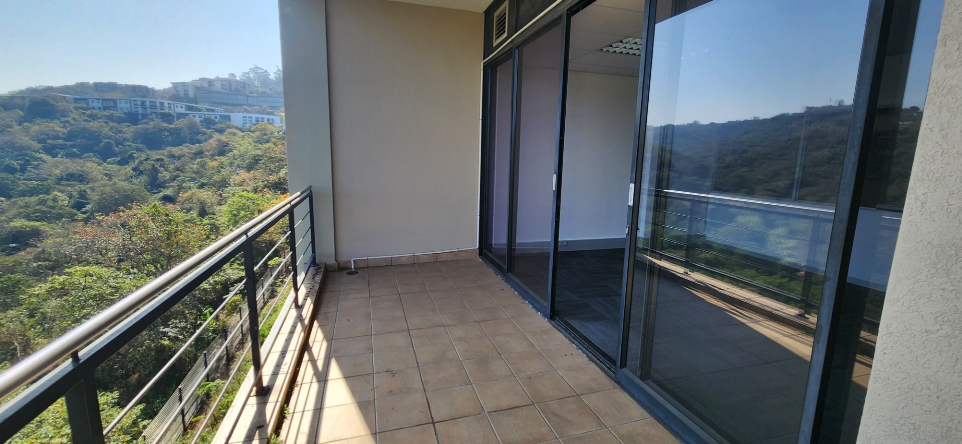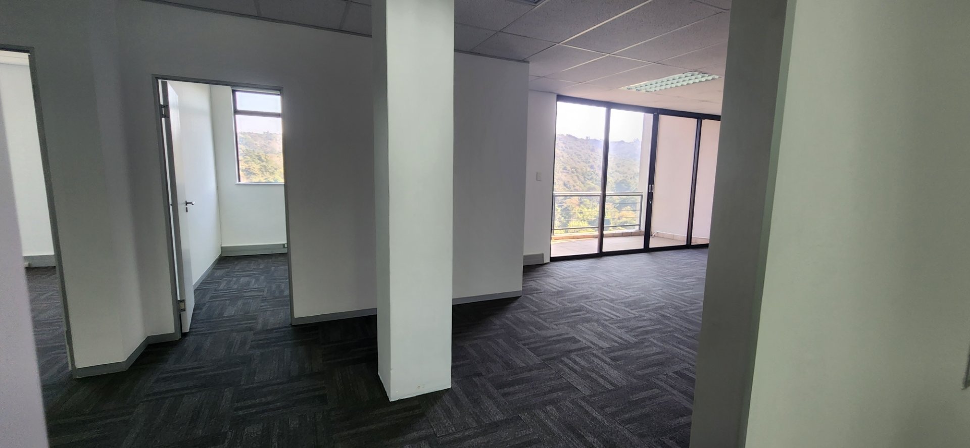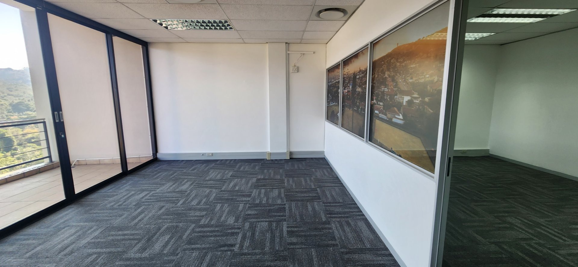 This unit currently has 5 offices, 1 boardroom, storeroom, an open plan area leading onto a patio overlooking the valley, a reception area and a kitchen. The view from the balcony is stunning. The configuration can be changed to suit a tenants needs. It is currently untenanted.