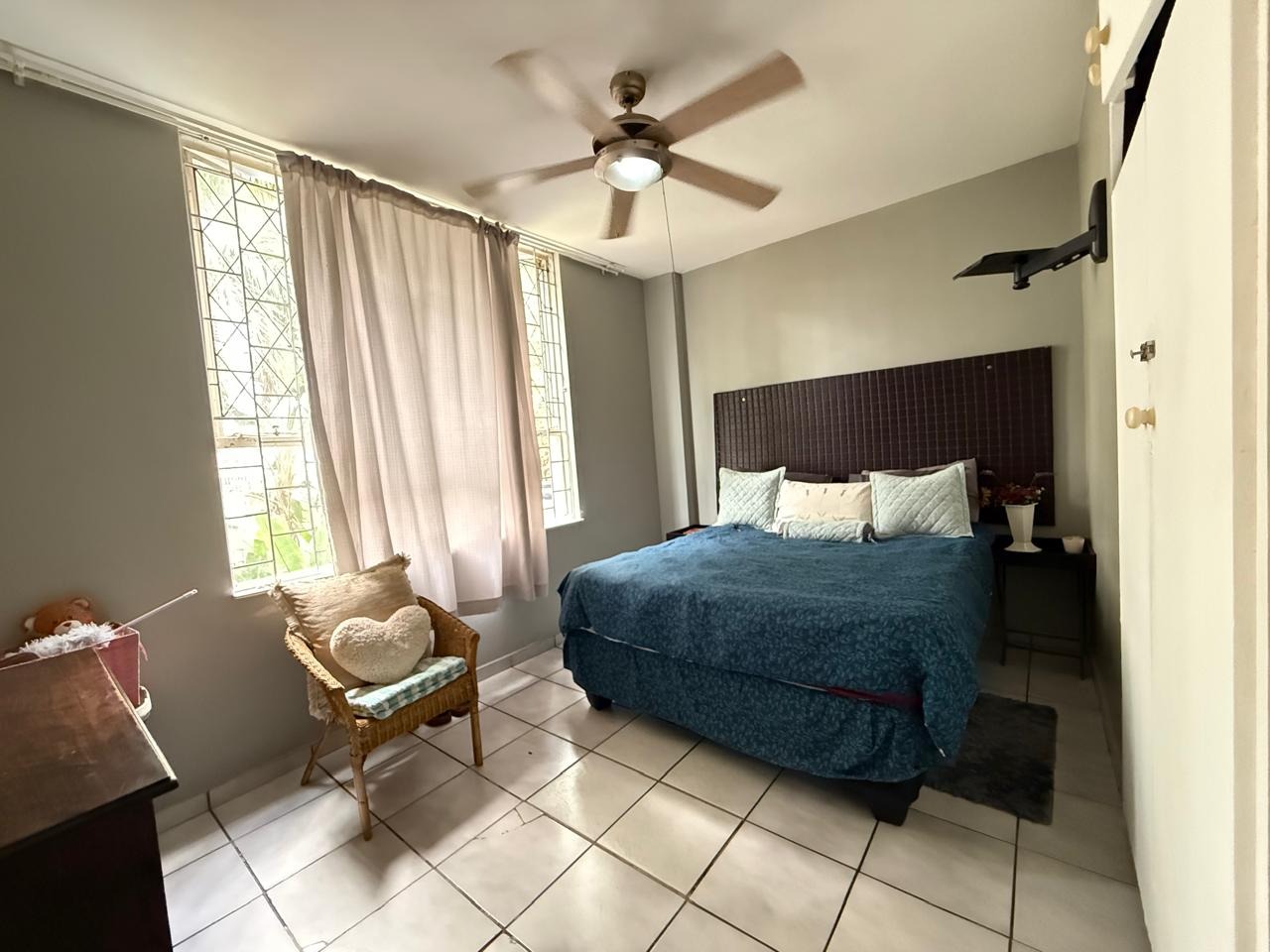 Discover this functional 2-bedroom apartment located in the established Bulwer suburb of Durban, South Africa. This multi-story residential building presents a practical living solution, featuring a grey exterior complemented by mature trees and greenery. Residents benefit from convenient covered parking directly beneath the building, alongside additional paved off-street parking, all secured by an access gate. Spanning 57 square meters, the apartment offers a well-utilised interior layout. The living room is bright and inviting, boasting large windows that allow for ample natural light, durable tiled flooring, and a ceiling fan for comfort. The compact kitchen is equipped with essential appliances, including a stove, oven, and a modern refrigerator. It features both upper and lower cabinets for storage, tiled floors, and a practical tiled backsplash, with a pass-through window enhancing the sense of space. The residence comprises two comfortable bedrooms, each benefiting from natural light and tiled flooring. One bedroom includes a ceiling fan, adding to the comfort. The single bathroom is compact and efficiently designed, featuring tiled floors and walls, with separate areas for the toilet and shower, ensuring practicality for daily routines. Security is addressed with an access gate and visible security bars on the windows, providing peace of mind. The property includes one dedicated parking bay, with the added advantage of covered parking options. This apartment offers a straightforward and accessible entry into the Durban property market, ideal for those seeking a convenient suburban lifestyle. Key Features: * Two Bedrooms * One Bathroom * 57 sqm Floor Size * One Parking Bay * Functional Kitchen with Appliances * Tiled Flooring Throughout * Ample Natural Light * Access Gate Security * Located in Durban