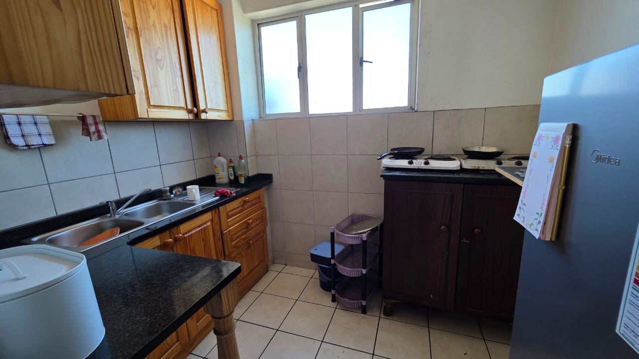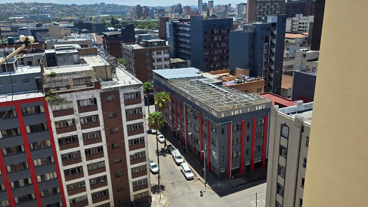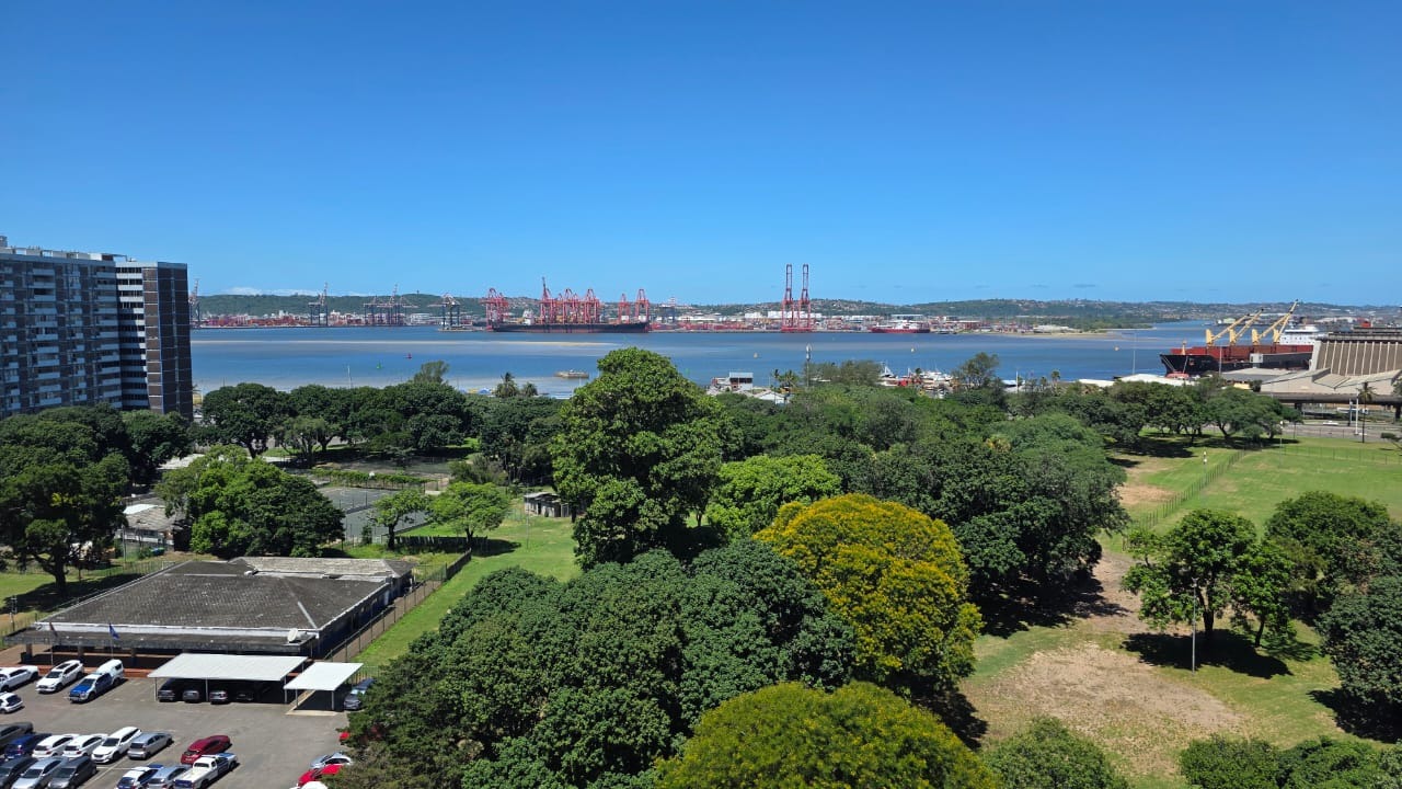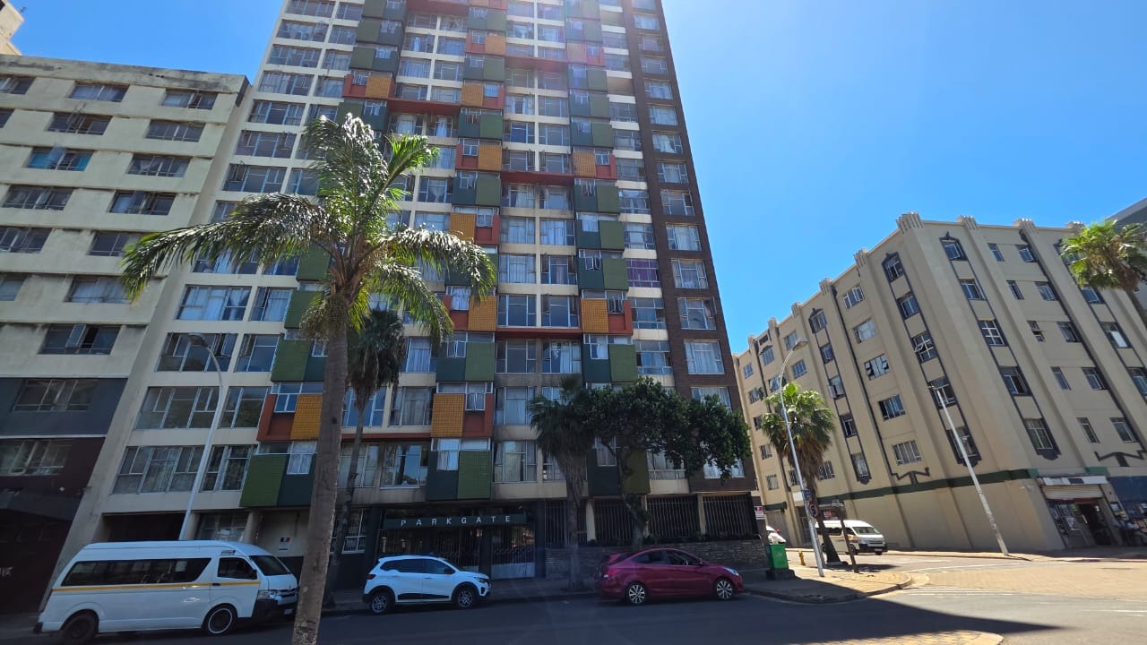 Discover urban living in this 88 sqm apartment located in the vibrant Durban Central. The building, known as PARKGATE, presents a distinctive and colourful facade, adding unique character to the lively urban streetscape. Enjoy the convenience of a central location with easy access to city amenities. Step inside to a spacious open-plan lounge and dining area, featuring classic parquet flooring that offers a warm foundation for your personal touch. Large windows invite natural light, creating a bright and inviting atmosphere for relaxation and entertaining. The layout provides a comfortable flow between living spaces. The functional kitchen is equipped with ample wooden cabinetry, dark countertops, a double stainless steel sink, and tiled walls, offering practical storage and preparation space. This apartment comprises two comfortable bedrooms, complemented by a versatile half-room ideal for a study or additional storage. A well-appointed bathroom and a guest toilet serve the residence. Residents benefit from panoramic views of the bustling harbour, lush parkland, and distant city skyline, providing a dynamic backdrop to everyday life. The building ensures peace of mind with 24-hour security, a security post, and an access gate. Accessibility is enhanced with lifts and wheelchair-friendly features. A dedicated garage provides secure parking. Durban Central is a bustling metropolitan hub, offering a vibrant lifestyle with diverse cultural attractions, business opportunities, and convenient access to public transport and essential services. Key Features: * 88 sqm Apartment * 2.5 Bedrooms, 1 Bathroom * Open-plan Lounge & Dining Room * Functional Kitchen * Panoramic Harbour Views * 1 Garage * 24-Hour Security, Security Post, Access Gate * Wheelchair Friendly with Lifts * Guest Toilet & Entrance Hall * Additional Storage