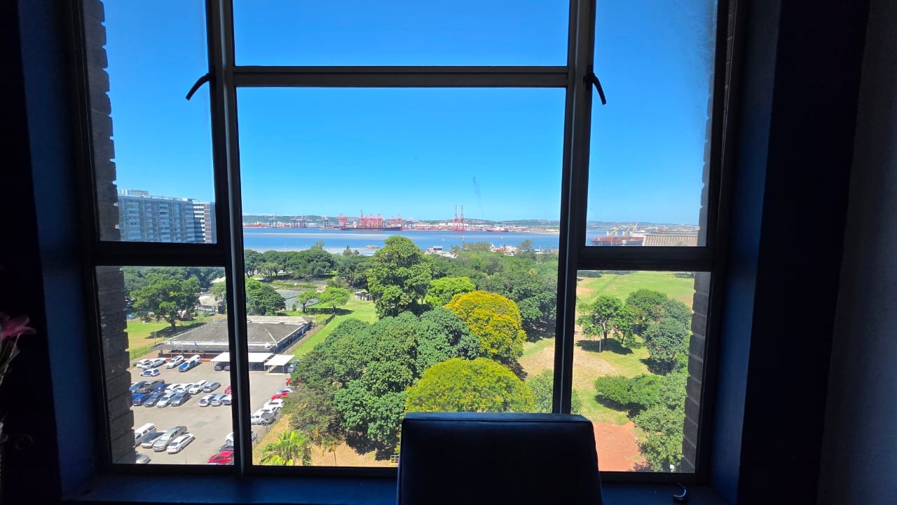 Discover urban living in this 88 sqm apartment located in the vibrant Durban Central. The building, known as PARKGATE, presents a distinctive and colourful facade, adding unique character to the lively urban streetscape. Enjoy the convenience of a central location with easy access to city amenities. Step inside to a spacious open-plan lounge and dining area, featuring classic parquet flooring that offers a warm foundation for your personal touch. Large windows invite natural light, creating a bright and inviting atmosphere for relaxation and entertaining. The layout provides a comfortable flow between living spaces. The functional kitchen is equipped with ample wooden cabinetry, dark countertops, a double stainless steel sink, and tiled walls, offering practical storage and preparation space. This apartment comprises two comfortable bedrooms, complemented by a versatile half-room ideal for a study or additional storage. A well-appointed bathroom and a guest toilet serve the residence. Residents benefit from panoramic views of the bustling harbour, lush parkland, and distant city skyline, providing a dynamic backdrop to everyday life. The building ensures peace of mind with 24-hour security, a security post, and an access gate. Accessibility is enhanced with lifts and wheelchair-friendly features. A dedicated garage provides secure parking. Durban Central is a bustling metropolitan hub, offering a vibrant lifestyle with diverse cultural attractions, business opportunities, and convenient access to public transport and essential services. Key Features: * 88 sqm Apartment * 2.5 Bedrooms, 1 Bathroom * Open-plan Lounge & Dining Room * Functional Kitchen * Panoramic Harbour Views * 1 Garage * 24-Hour Security, Security Post, Access Gate * Wheelchair Friendly with Lifts * Guest Toilet & Entrance Hall * Additional Storage